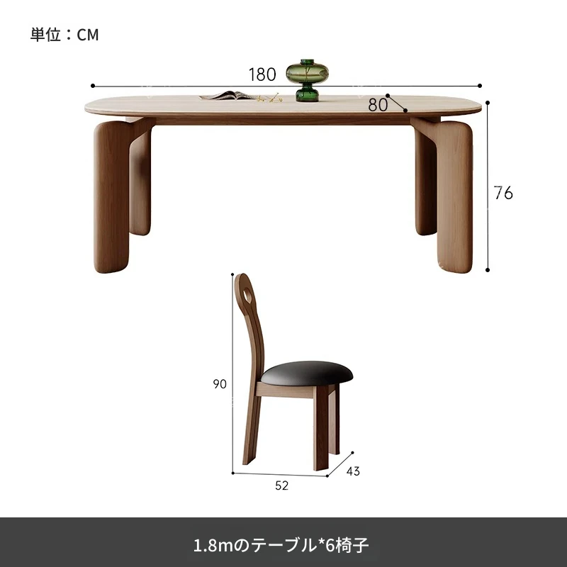 1.8メートル ダイニングテーブル + キーチェア *6 全実木 ホワイトアッシュ + 12mm 洞石岩板
