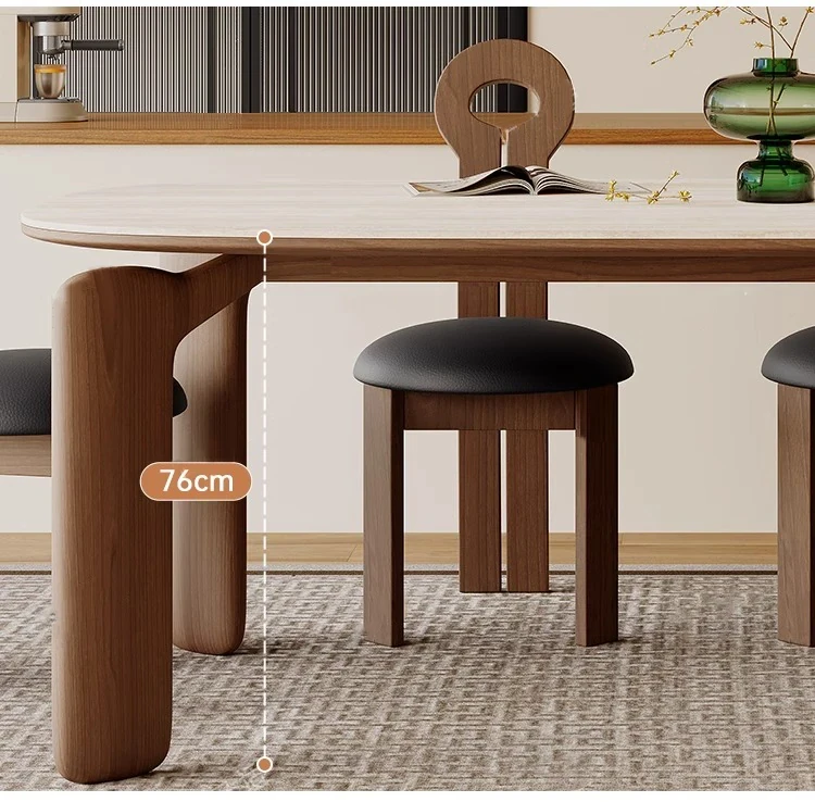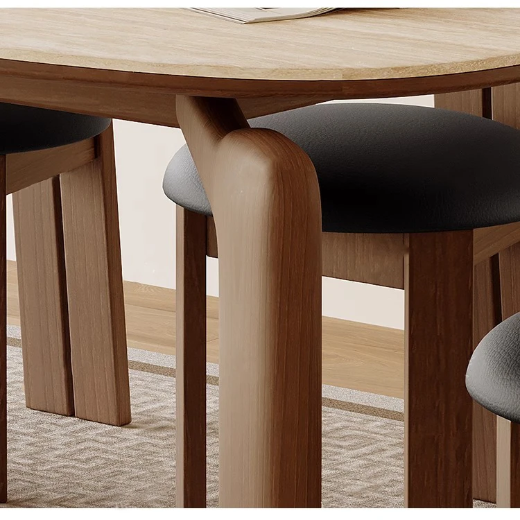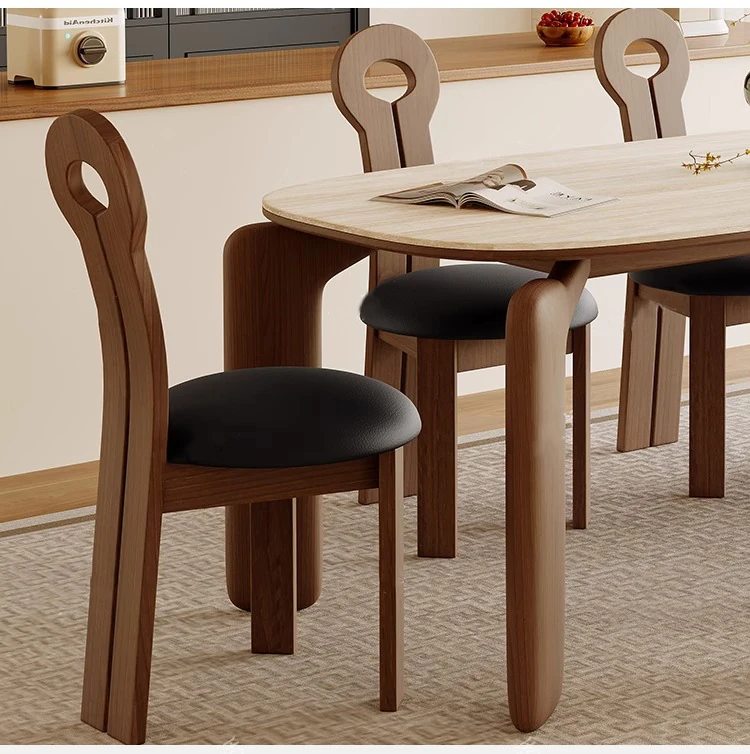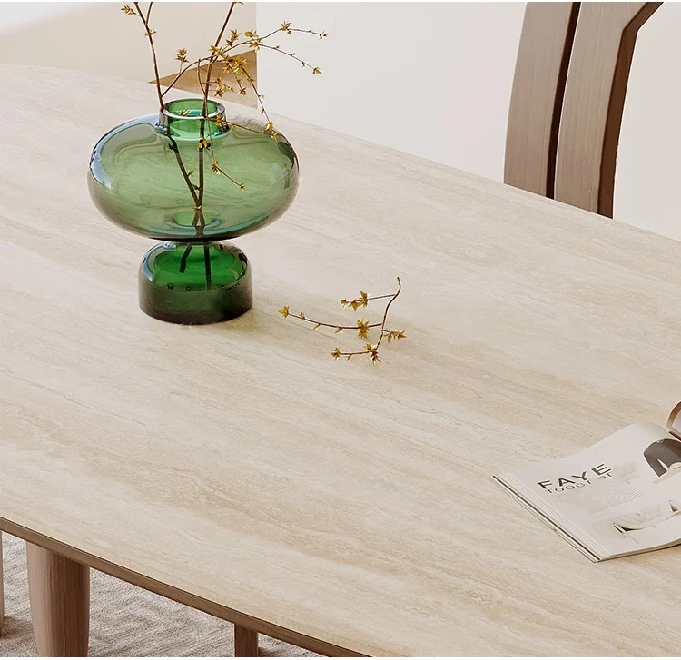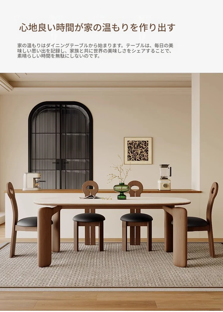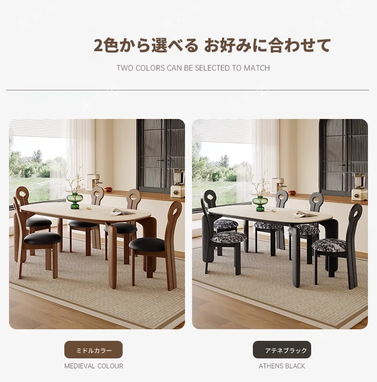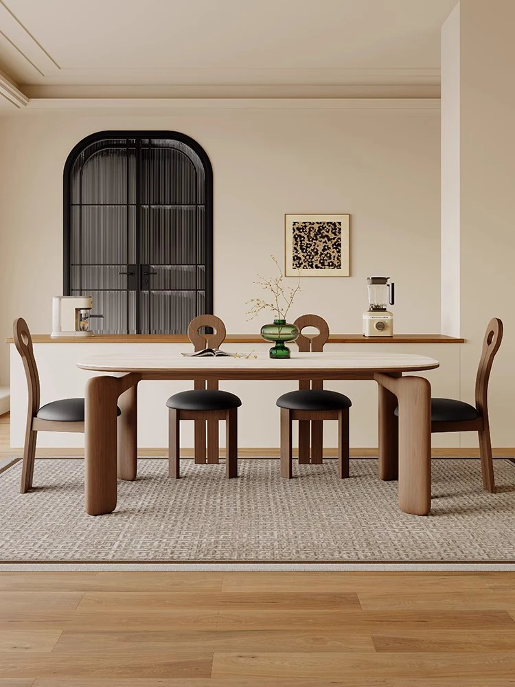安居坊の侘寂スタイルのアンティーク風洞石岩板実木ダイニングテーブル&チェアセット - 高級フレンチデザイン、小型住宅にぴったりのエレガントな食卓!
