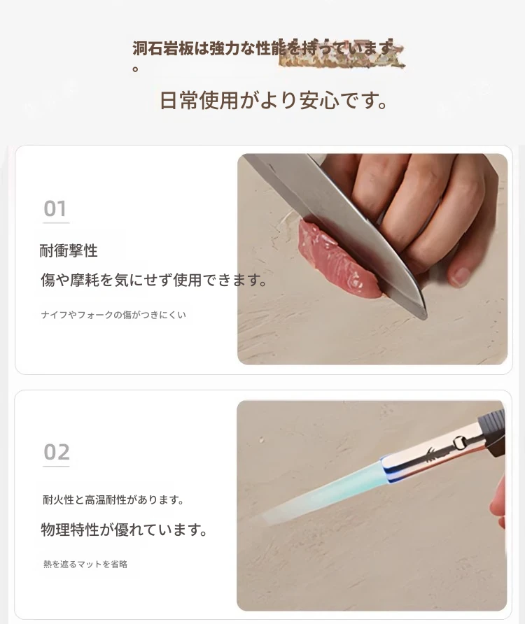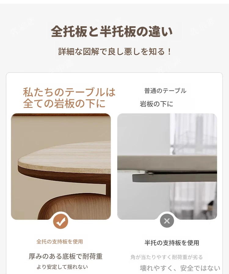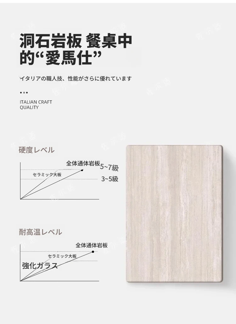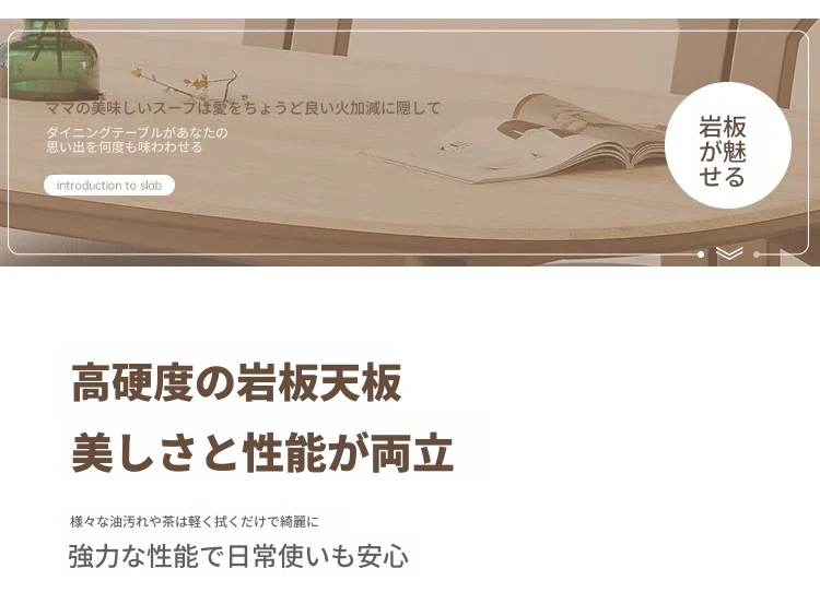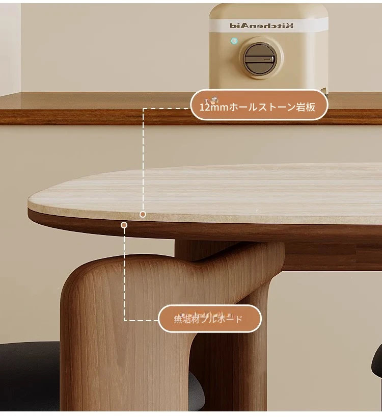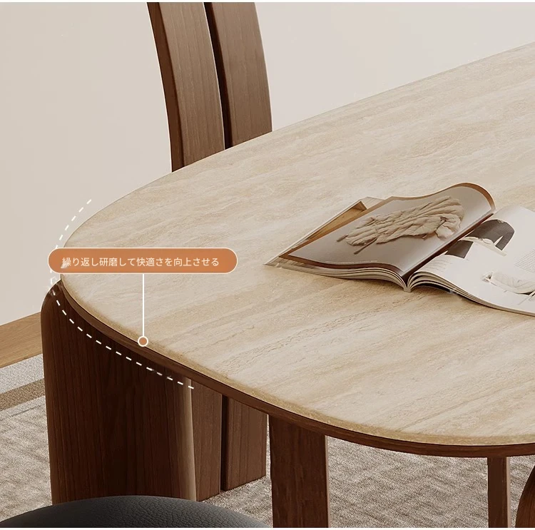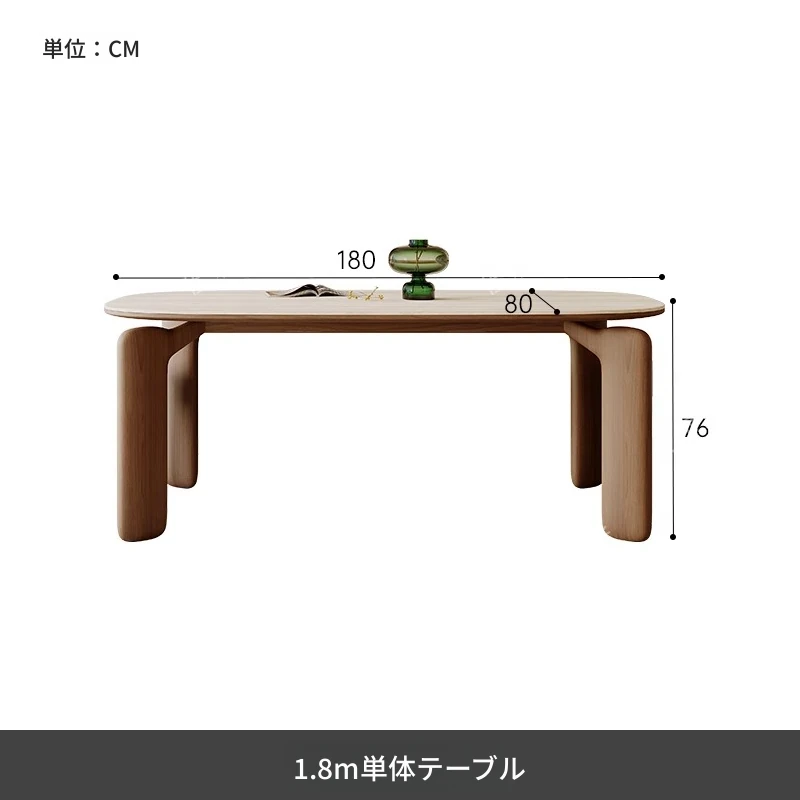 1.8メートル ダイニングテーブル 全実木 ホワイトアッシュ + 12mm 洞石岩板