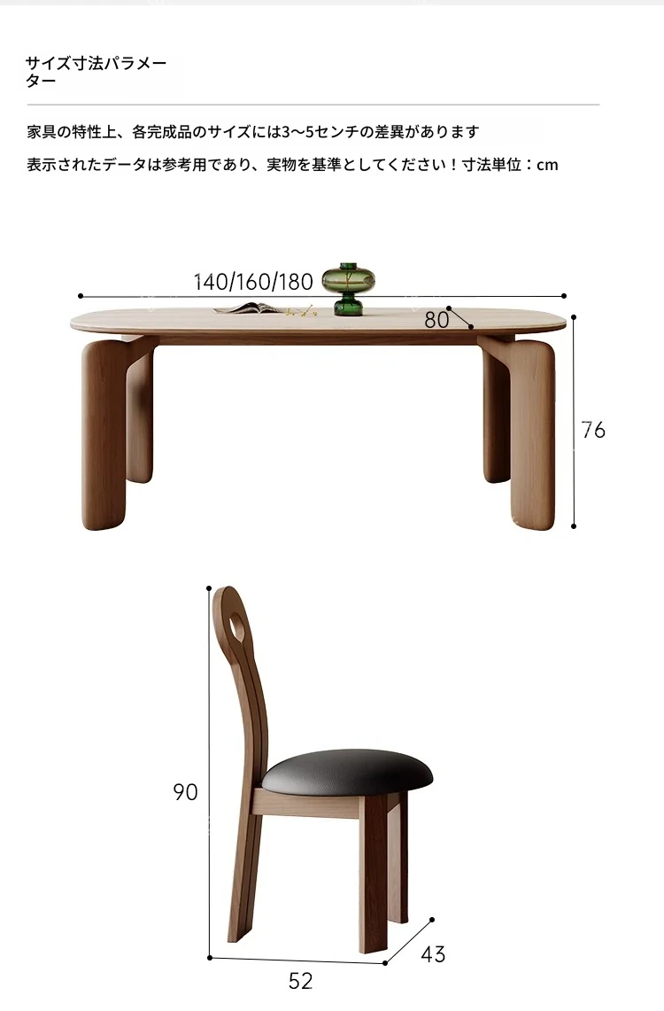 1.4メートル ダイニングテーブル 全実木 ホワイトアッシュ + 12mm 洞石岩板