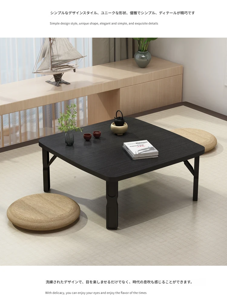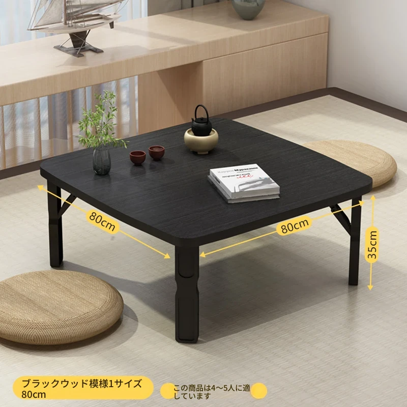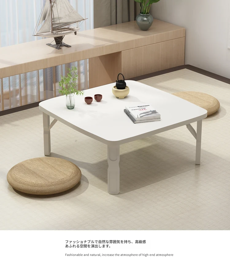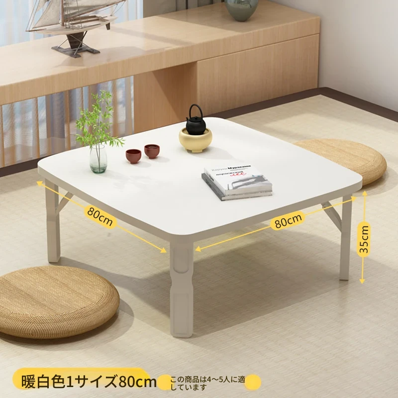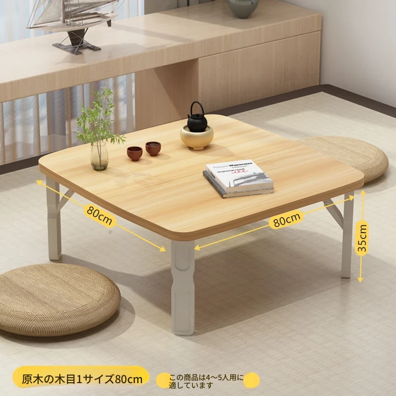 折りたたみ式の四角テーブル|家庭用・便利なローテーブル|食事や作業に最適|低めのデザインで、畳や窓辺でも使いやすい|寮やベッドサイドにもピッタリ!