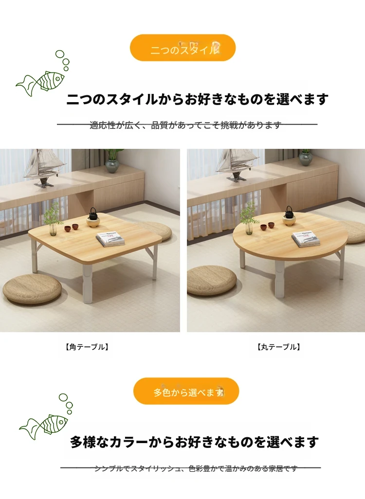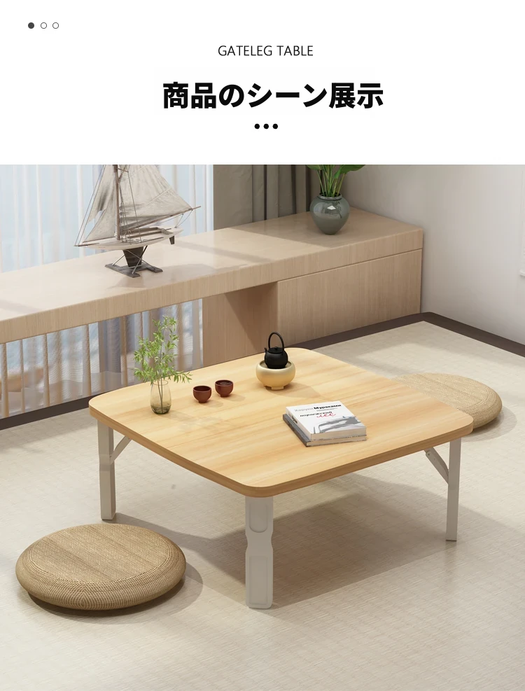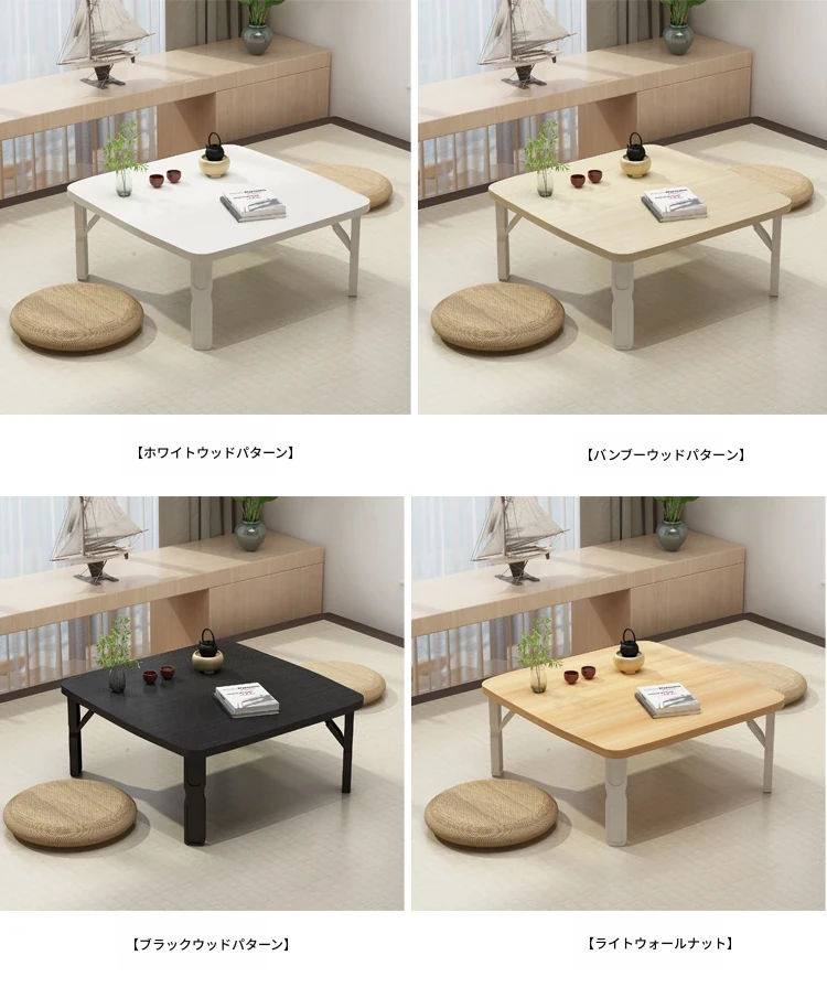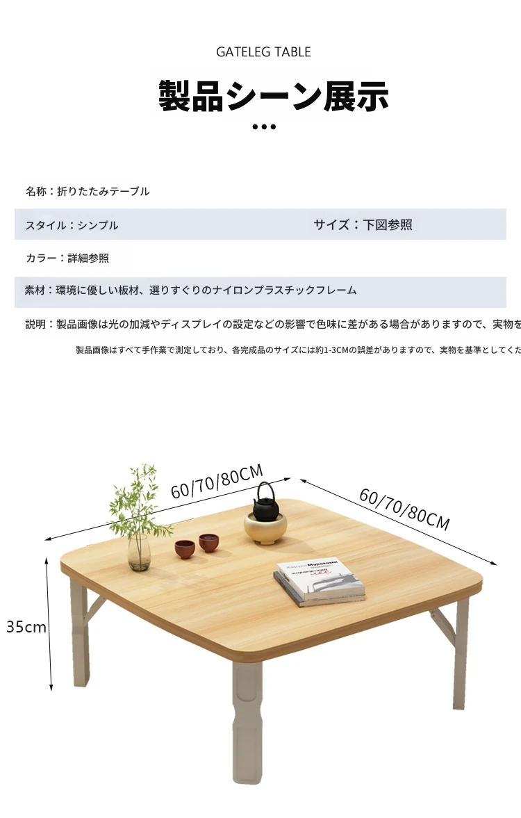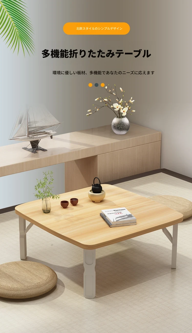 折りたたみ式の四角テーブル|家庭用・便利なローテーブル|食事や作業に最適|低めのデザインで、畳や窓辺でも使いやすい|寮やベッドサイドにもピッタリ!