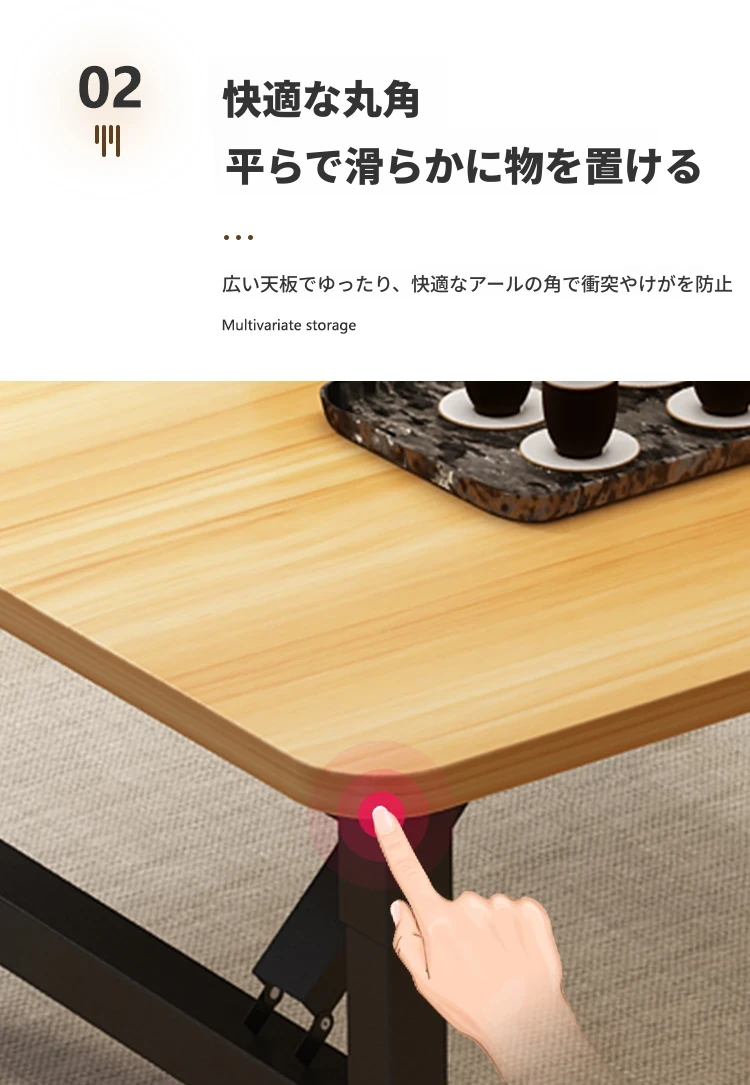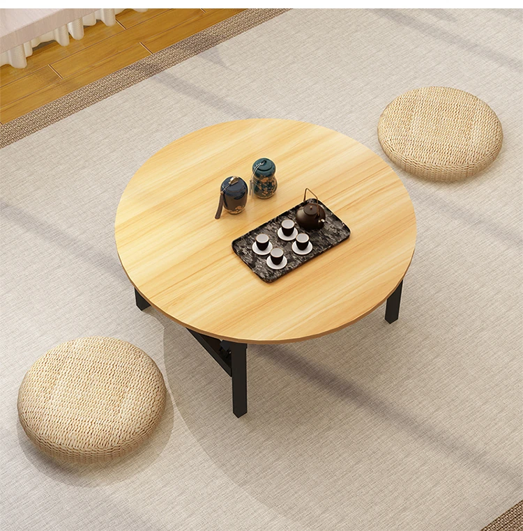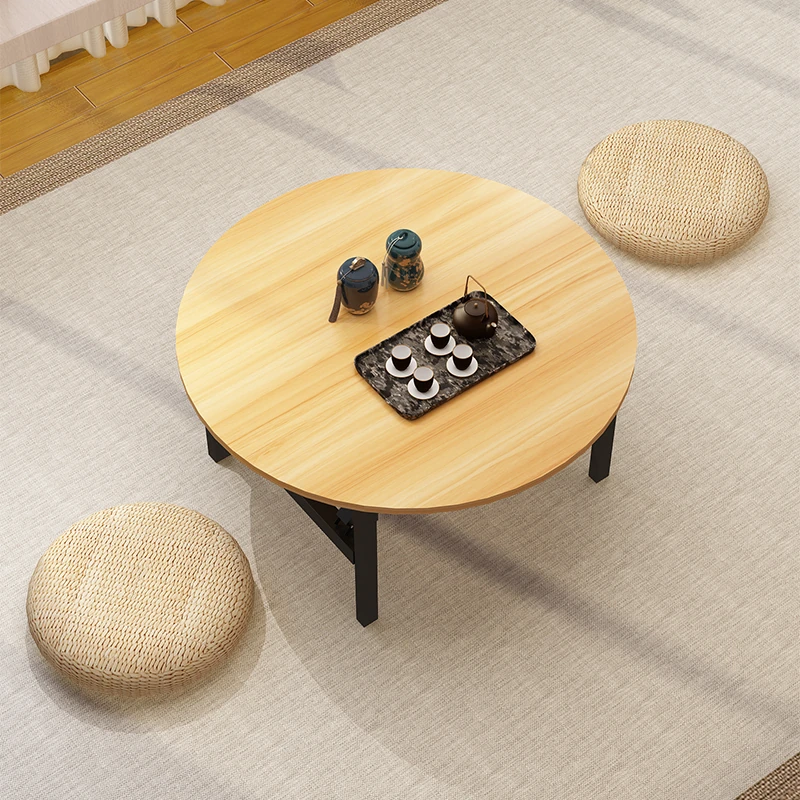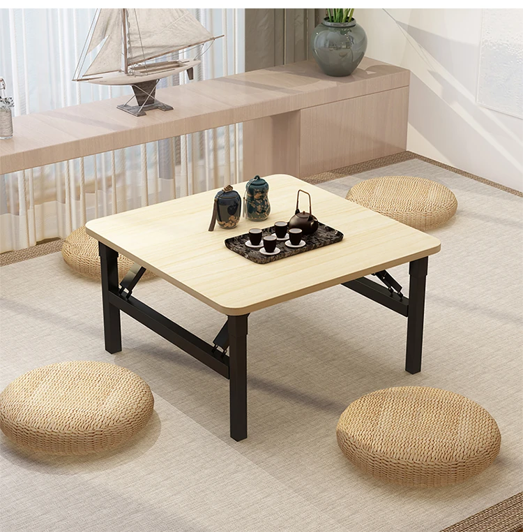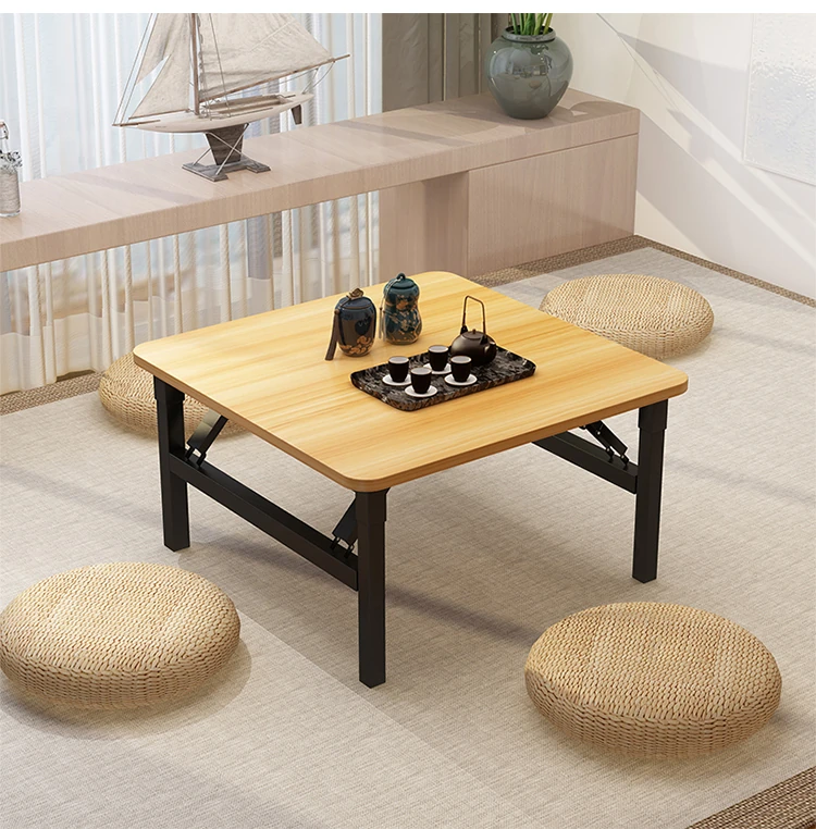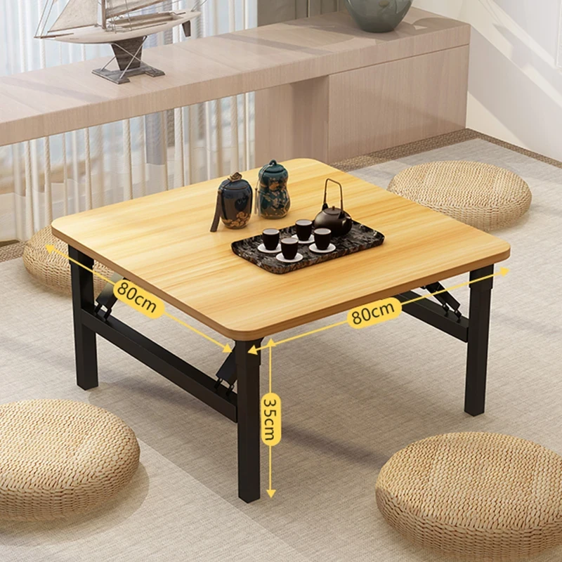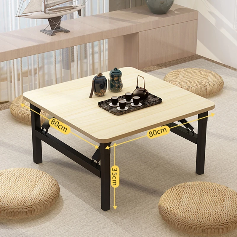 スチールフレーム炕テーブル-メープルカラー【80x80x35】
