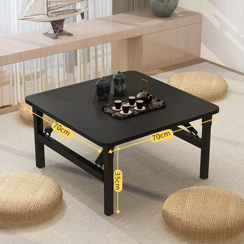 スチールフレーム炕テーブル-ブラックウッド【70x70x35】