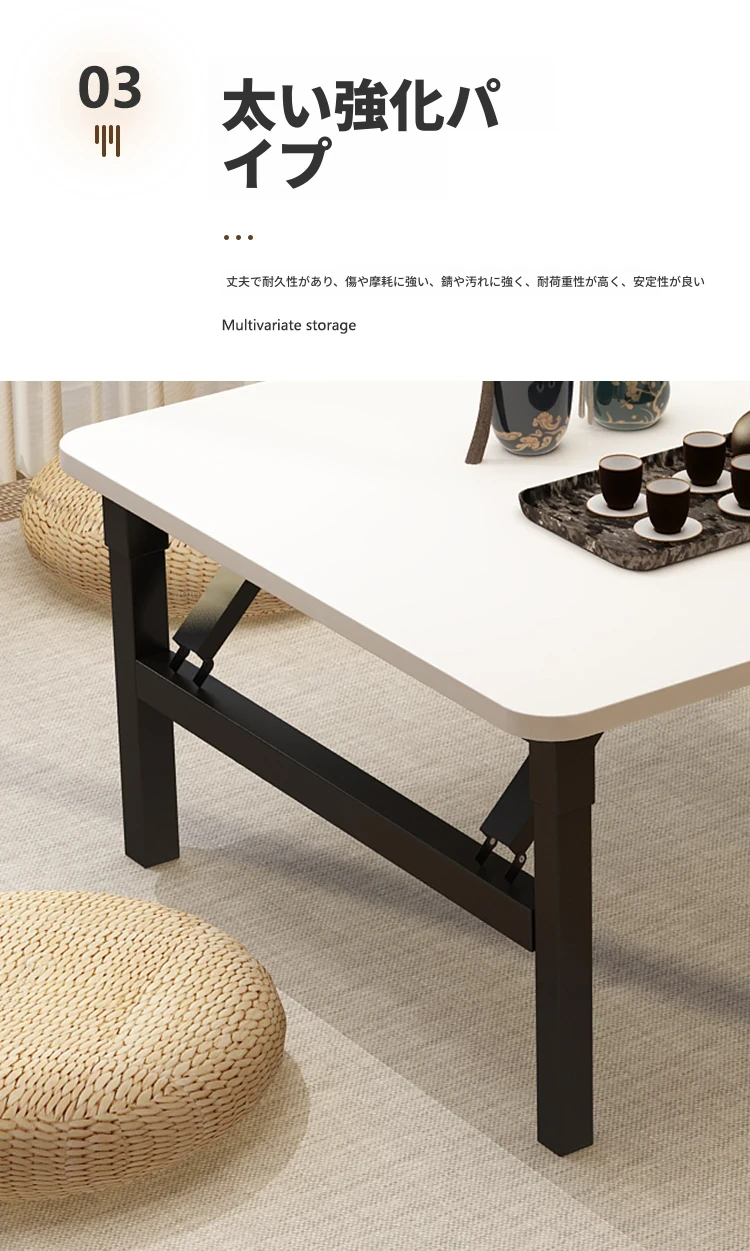 スチールフレーム炕テーブル-ウォームホワイト【80x80x35】