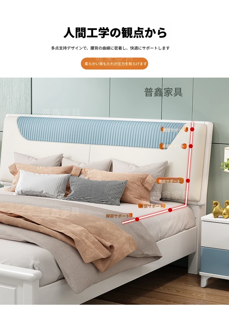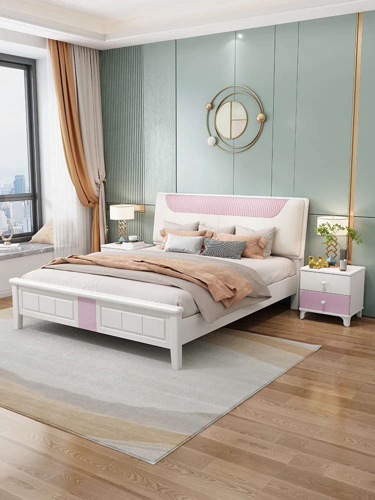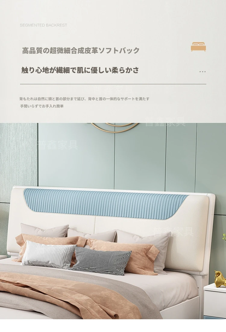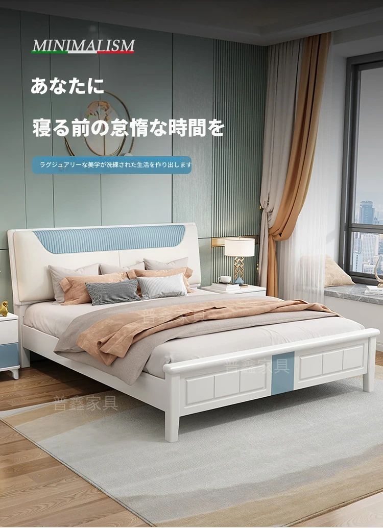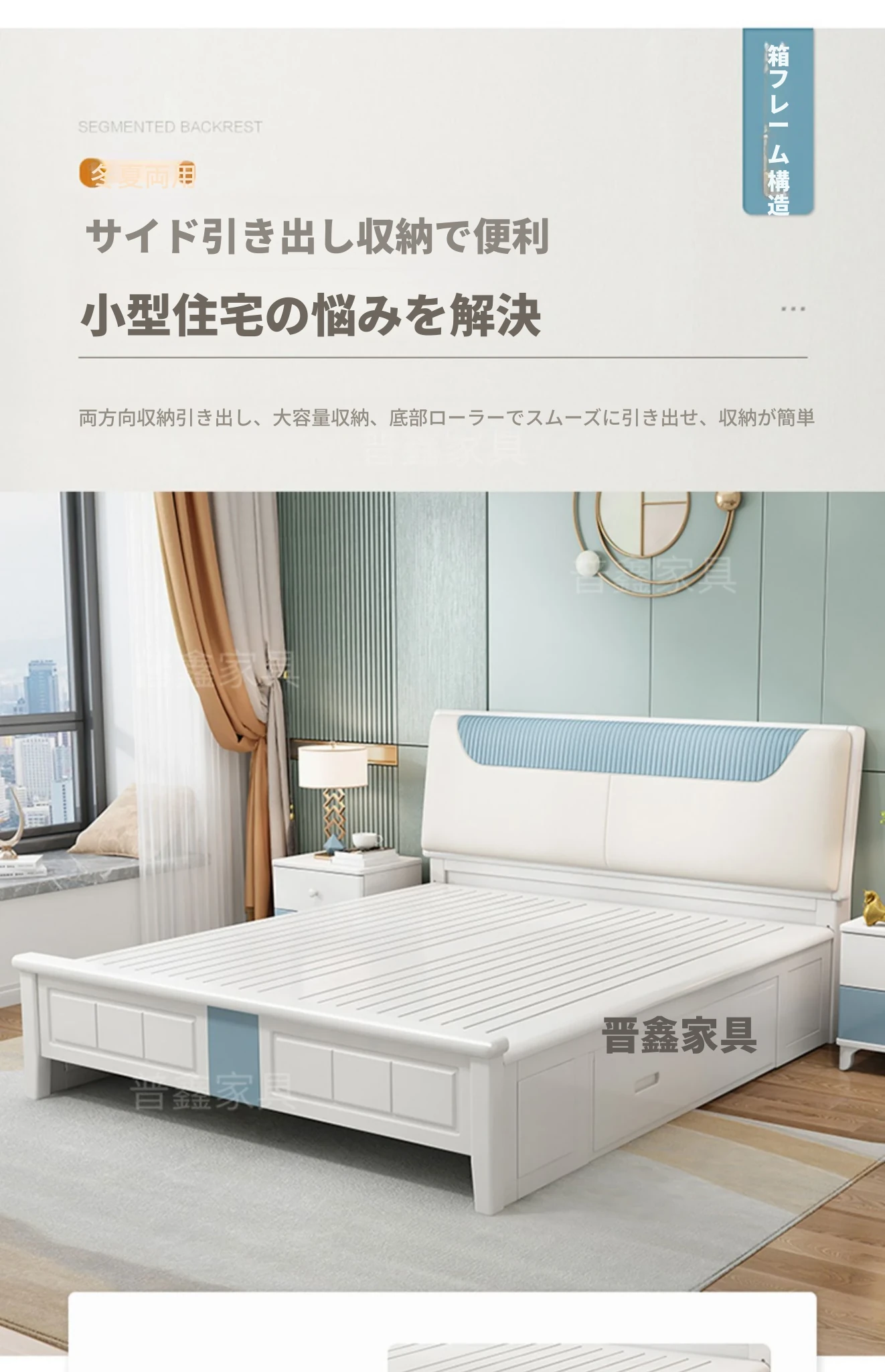 モダンでシンプルな高級感漂う1.8m実木ベッド - ダブルルーム用、1.5m北欧スタイル収納付き、ホワイトソフトパッケージ。快適な眠りと洗練されたデザインで、理想の主寝室を実現!
