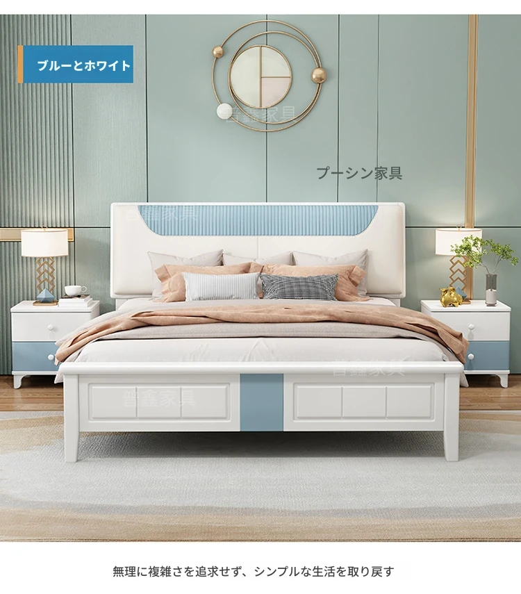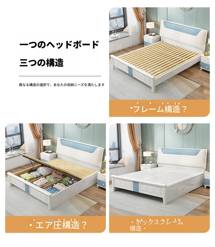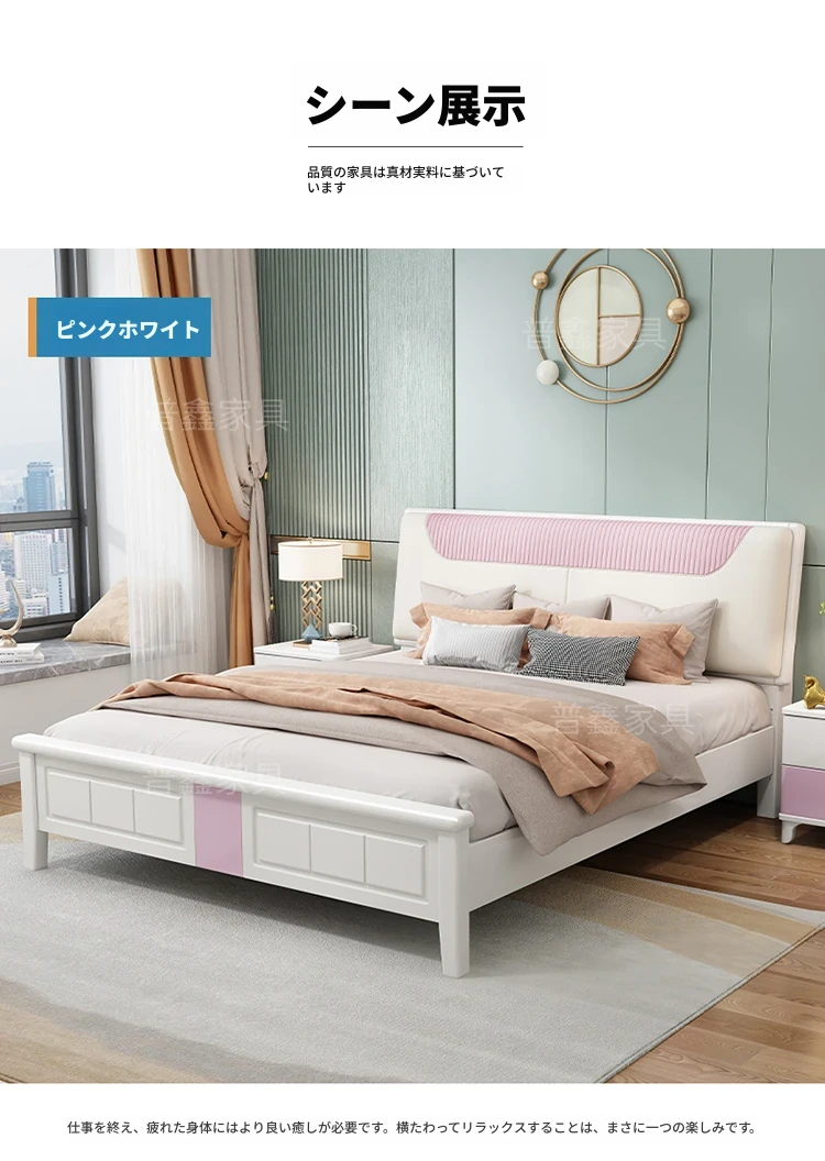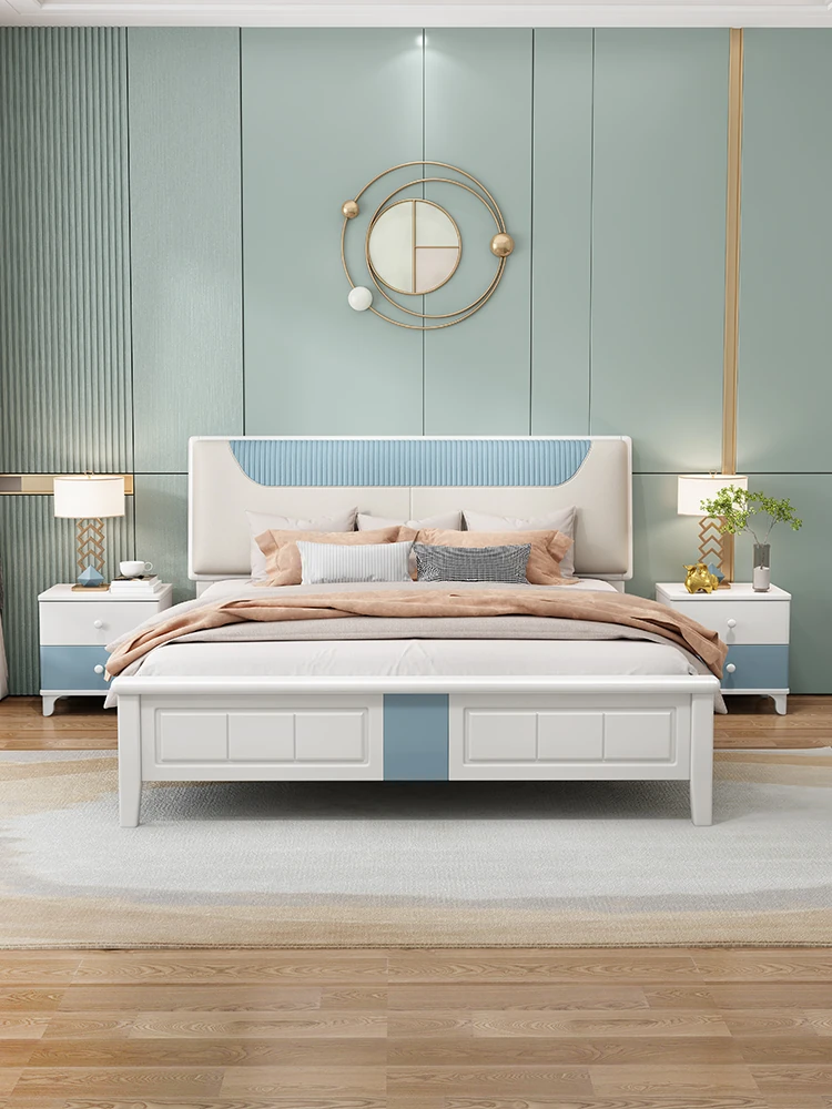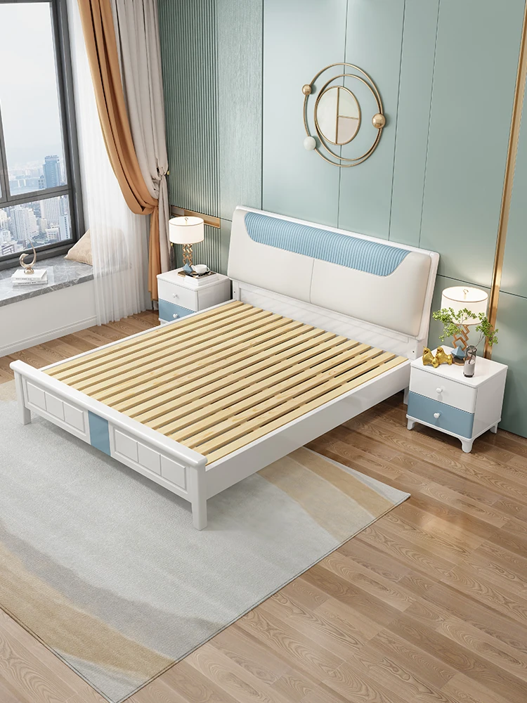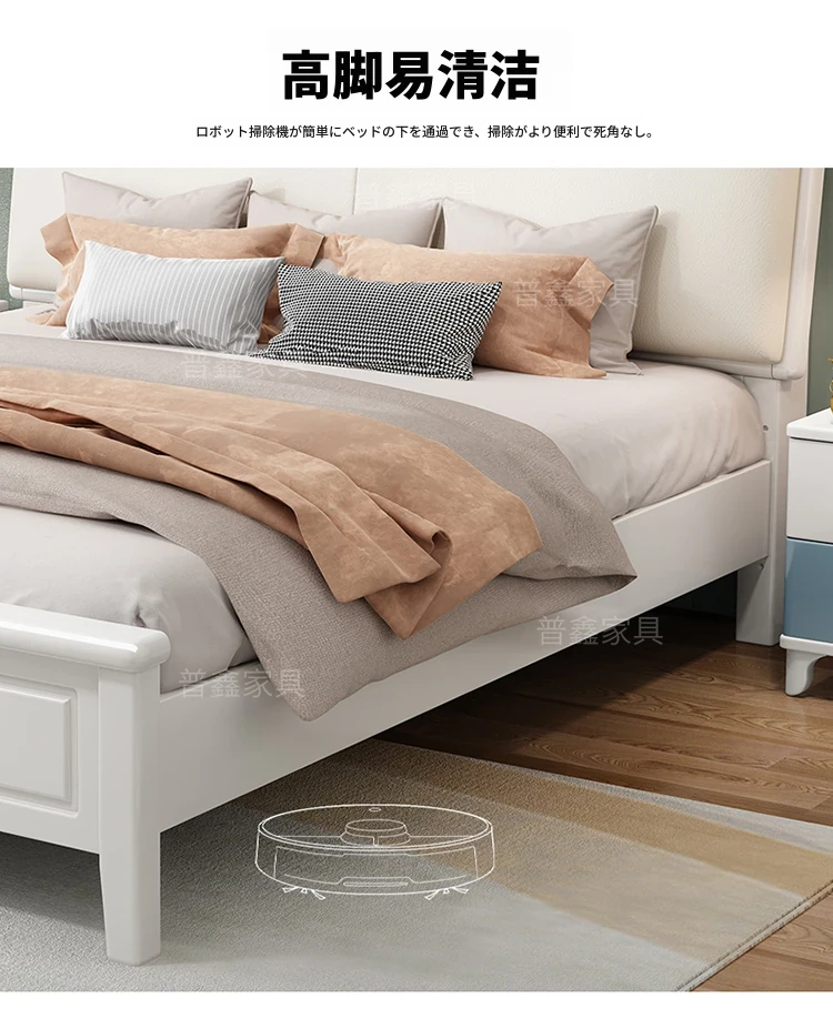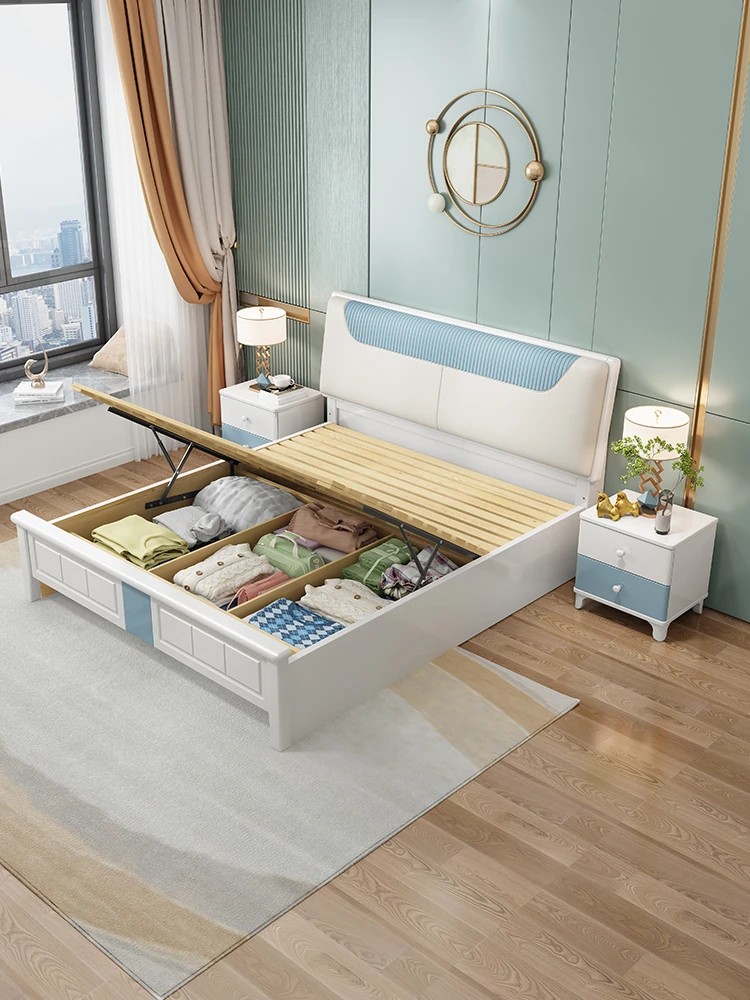 モダンでシンプルな高級感漂う1.8m実木ベッド - ダブルルーム用、1.5m北欧スタイル収納付き、ホワイトソフトパッケージ。快適な眠りと洗練されたデザインで、理想の主寝室を実現!
