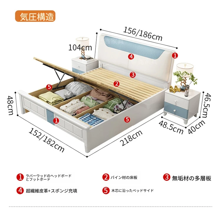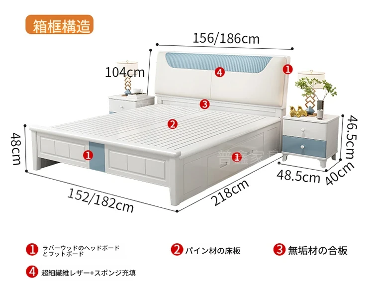 ベッド+21CMカシミヤラテックススプリングマットレス+キャビネット*1 注文時にベッドの色を記入