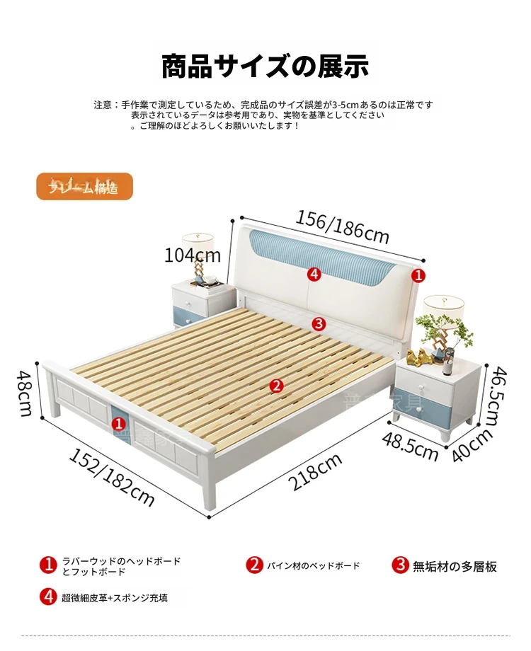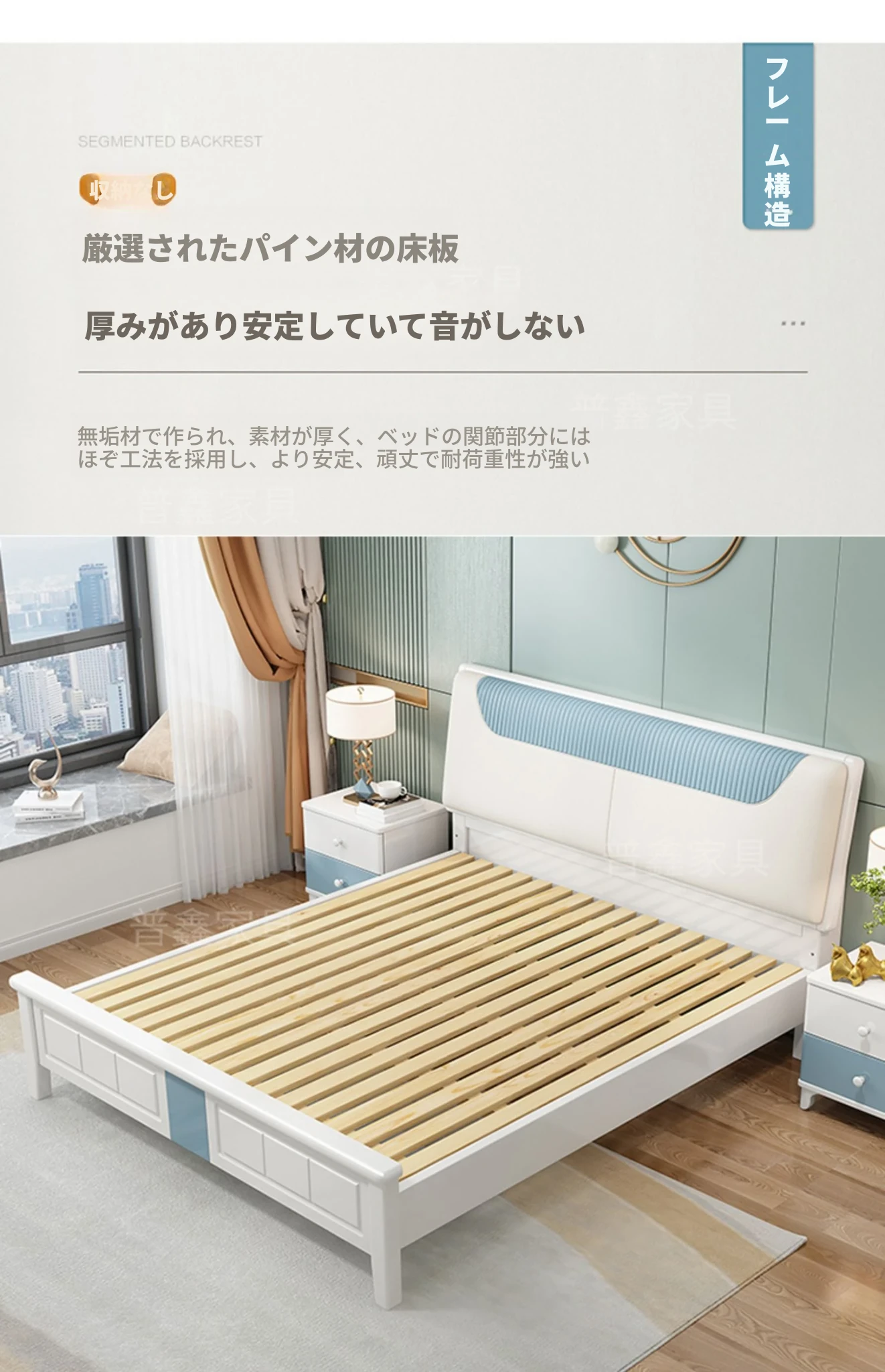 ベッド+21CMカシミヤラテックススプリングマットレス+キャビネット*2 注文時にベッドの色を記入