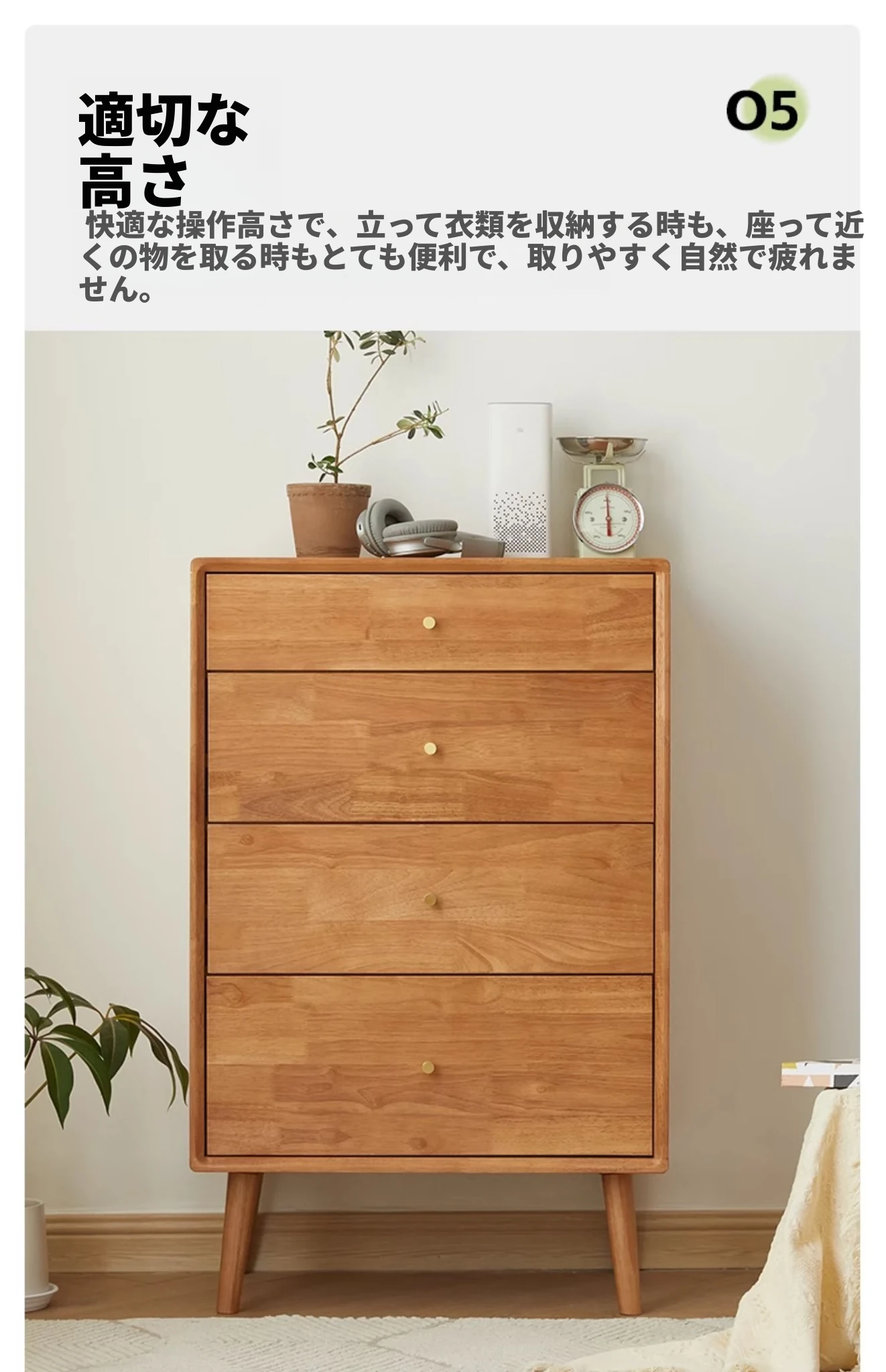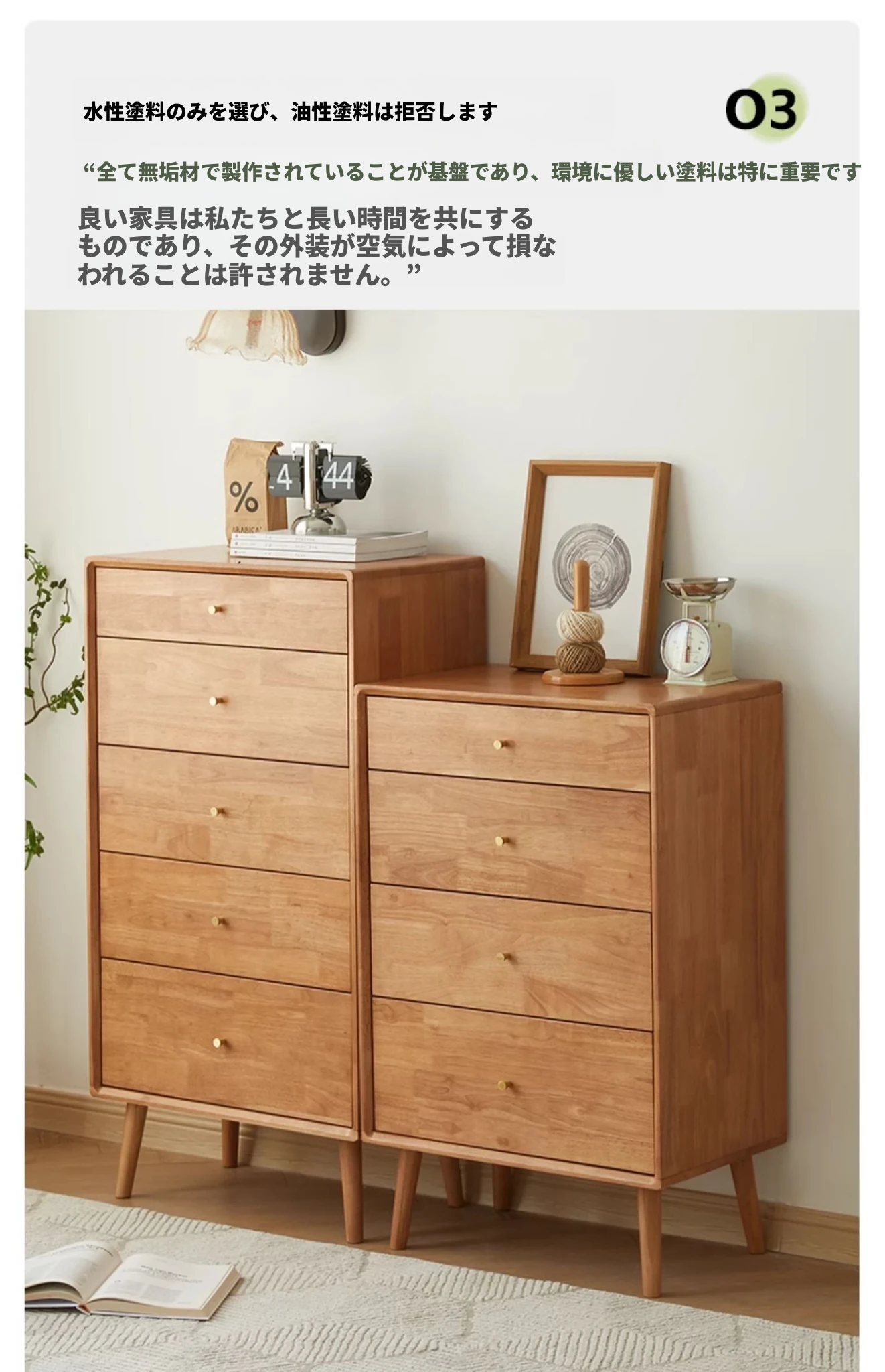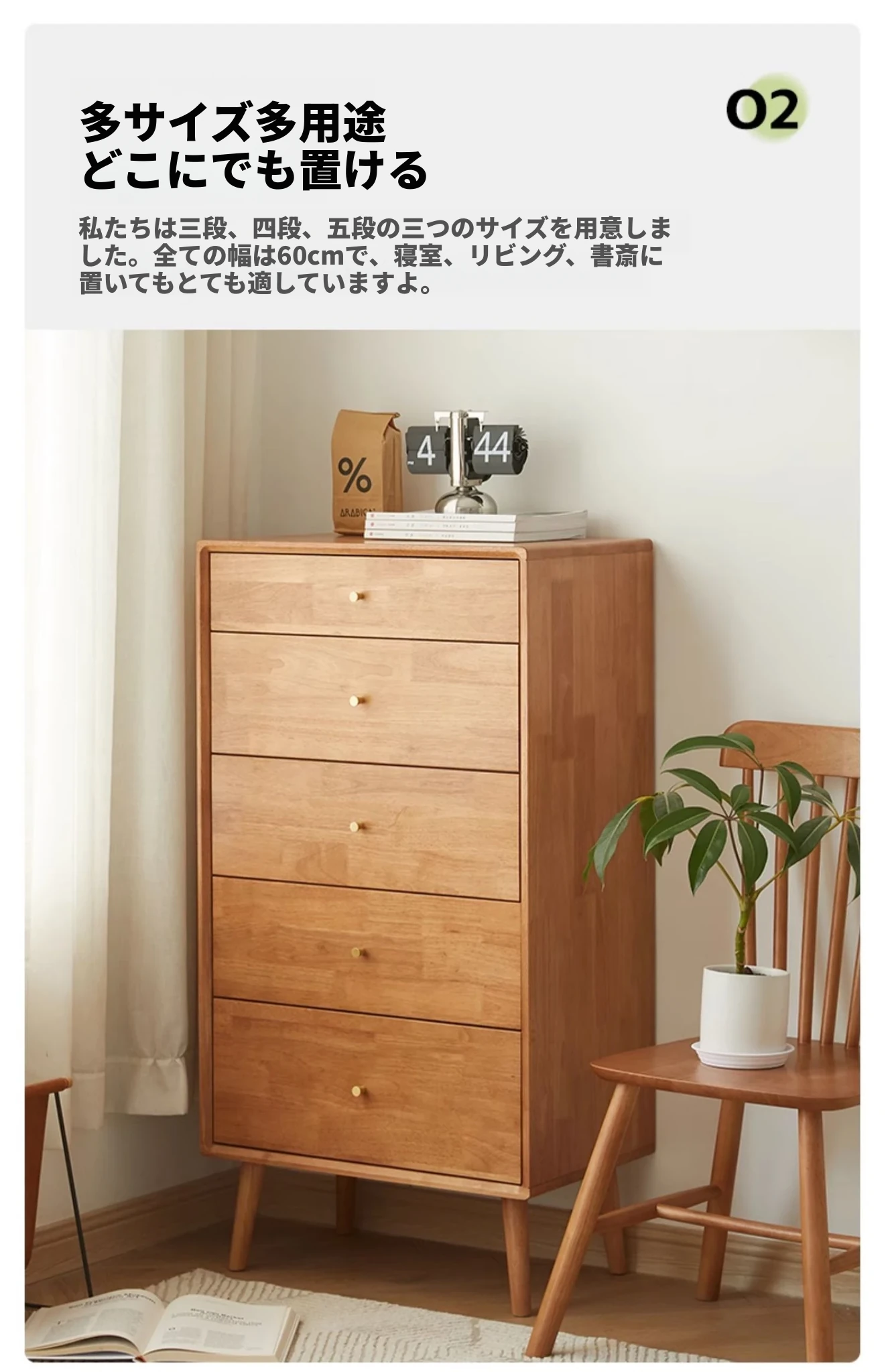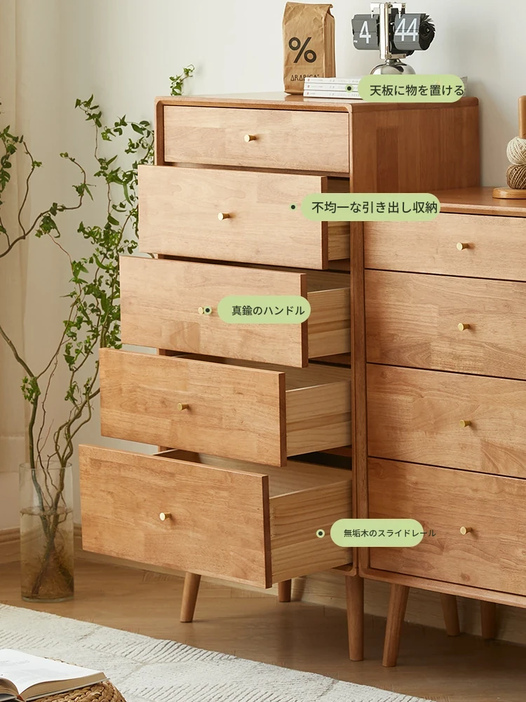 無垢材の五斗収納チェスト|シンプルでモダンなデザイン|ベッドサイドやリビングに最適|おしゃれな収納ソリューションでお部屋をスッキリ整理!