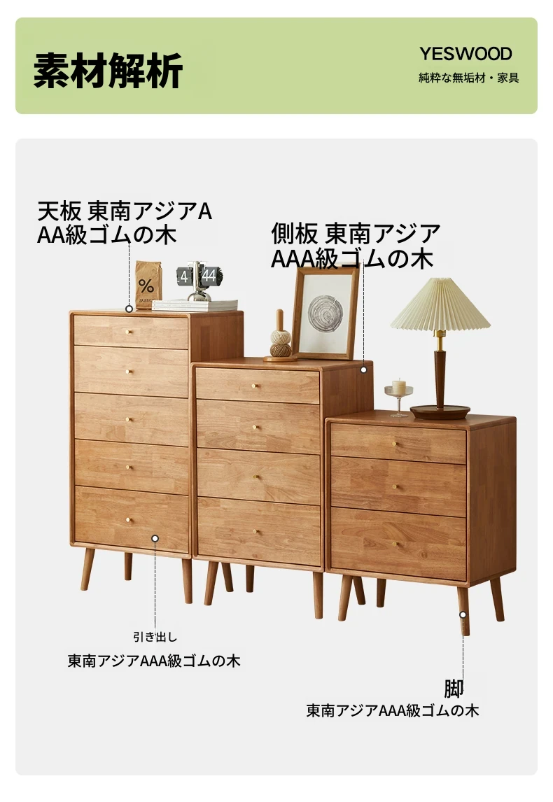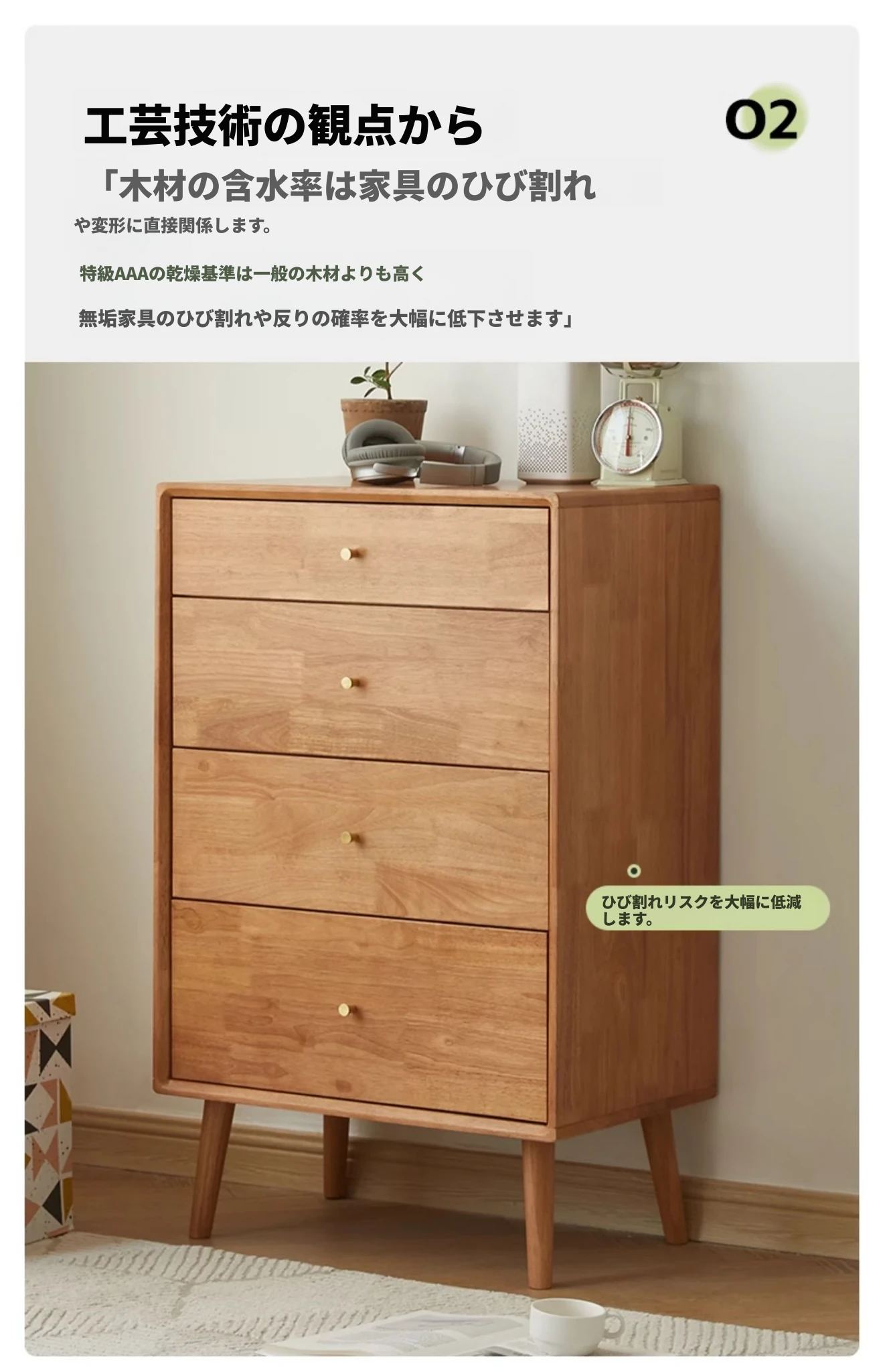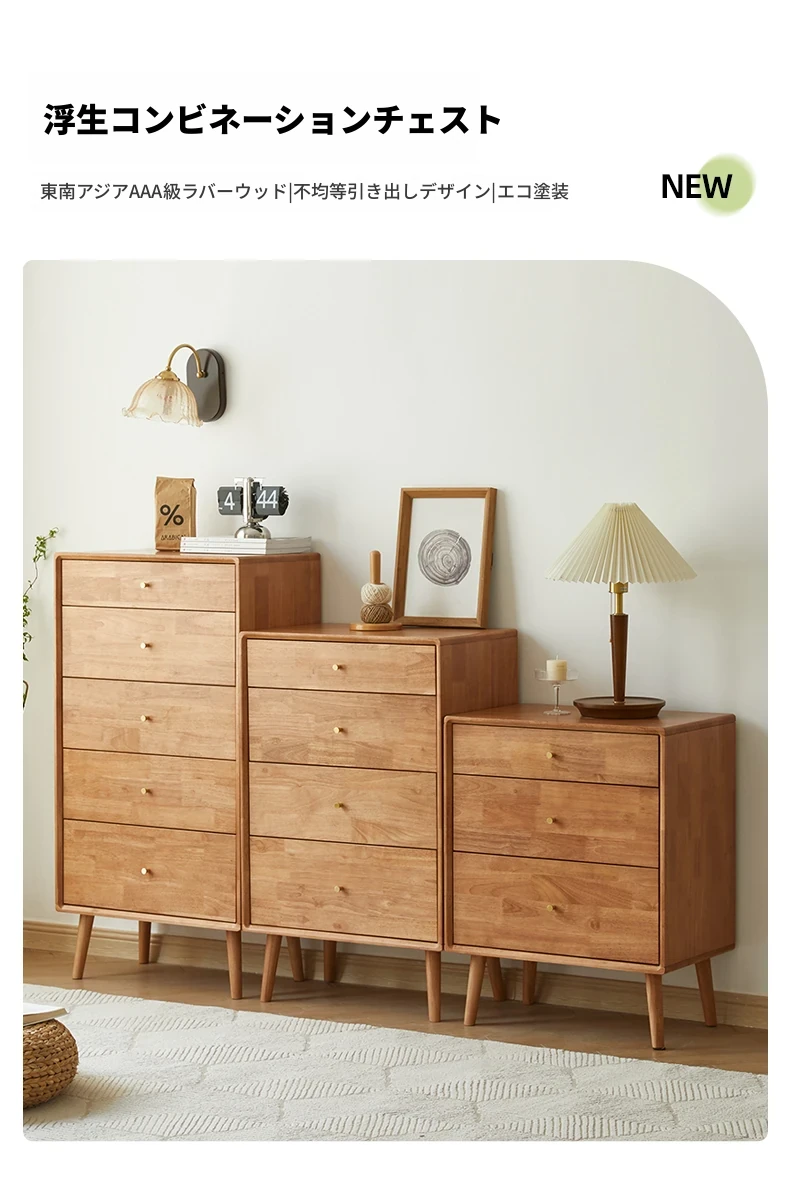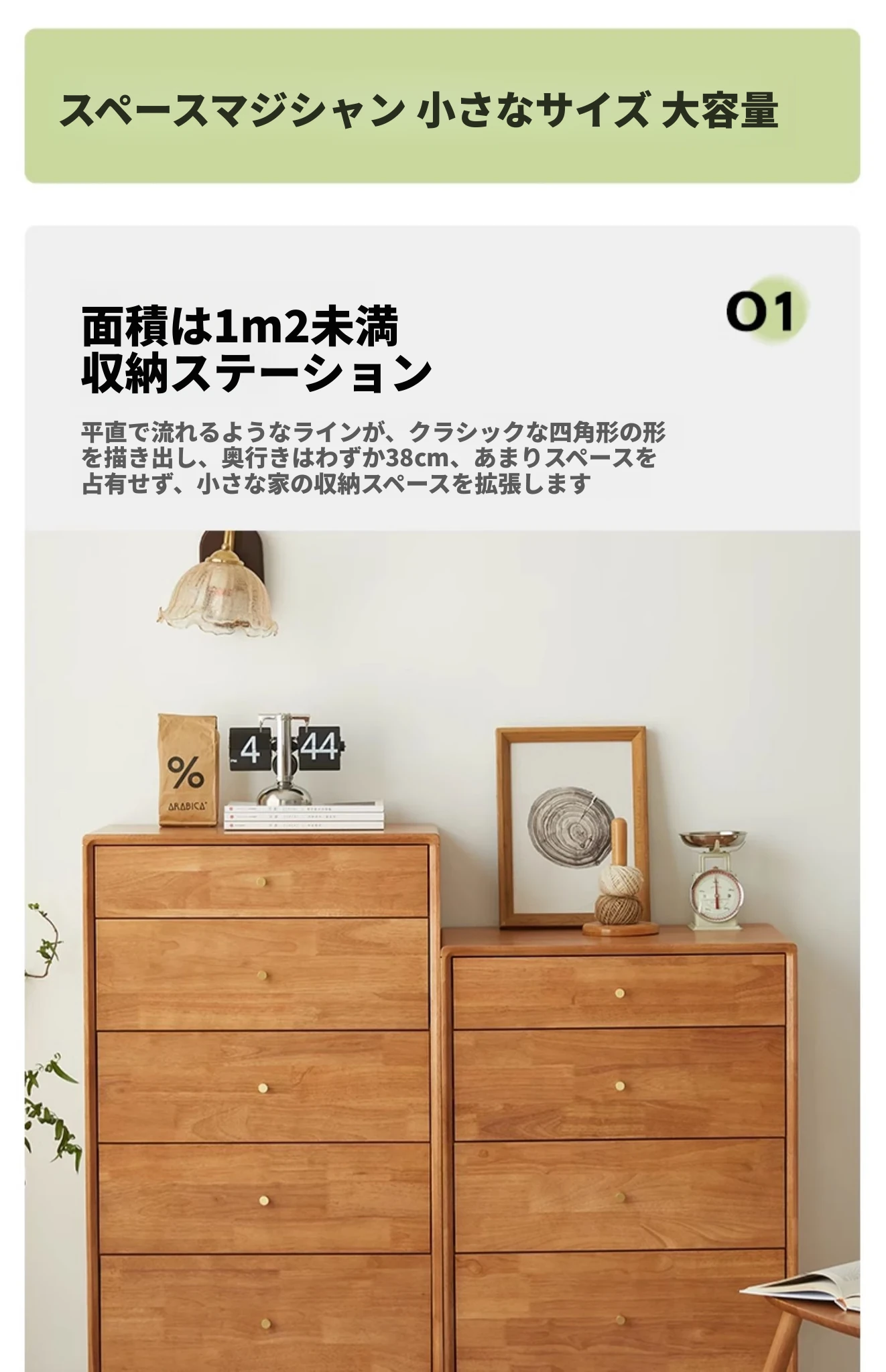 無垢材の五斗収納チェスト|シンプルでモダンなデザイン|ベッドサイドやリビングに最適|おしゃれな収納ソリューションでお部屋をスッキリ整理!