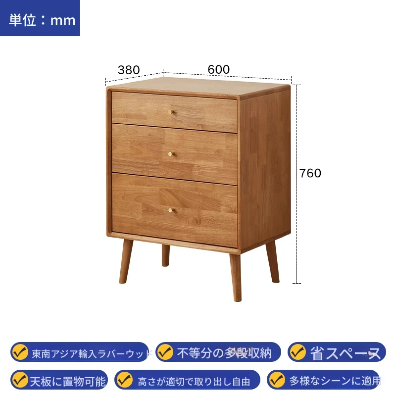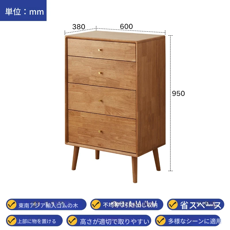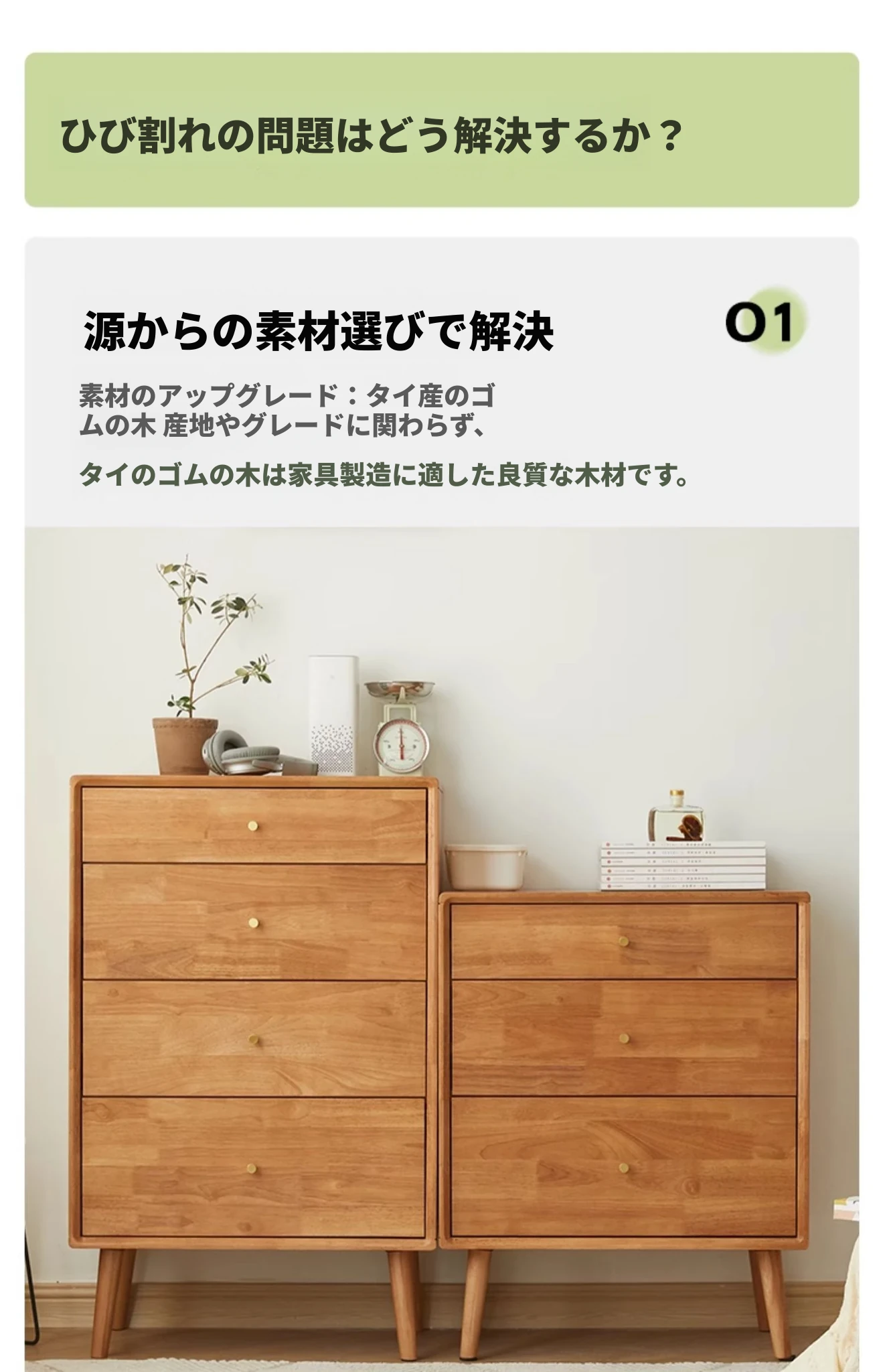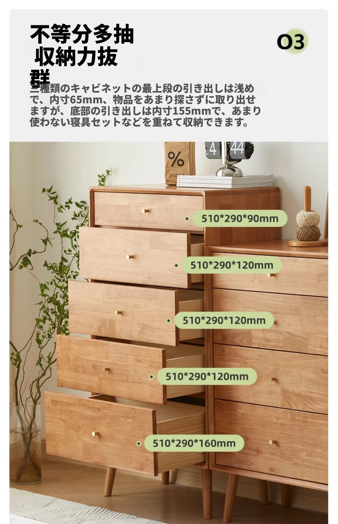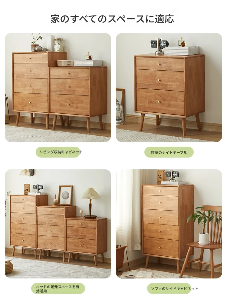 無垢材の五斗収納チェスト|シンプルでモダンなデザイン|ベッドサイドやリビングに最適|おしゃれな収納ソリューションでお部屋をスッキリ整理!