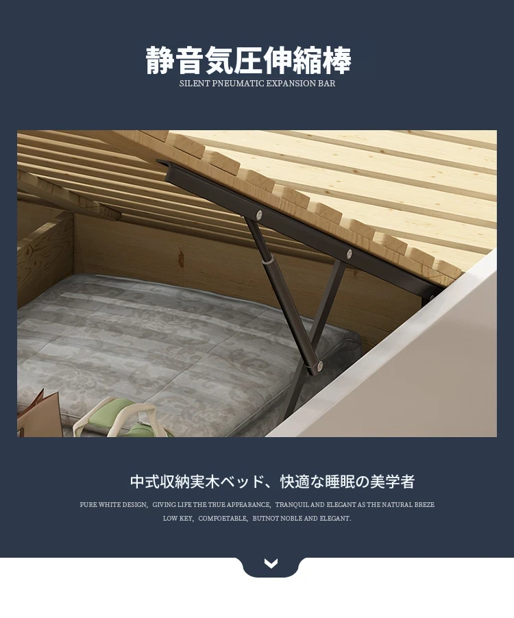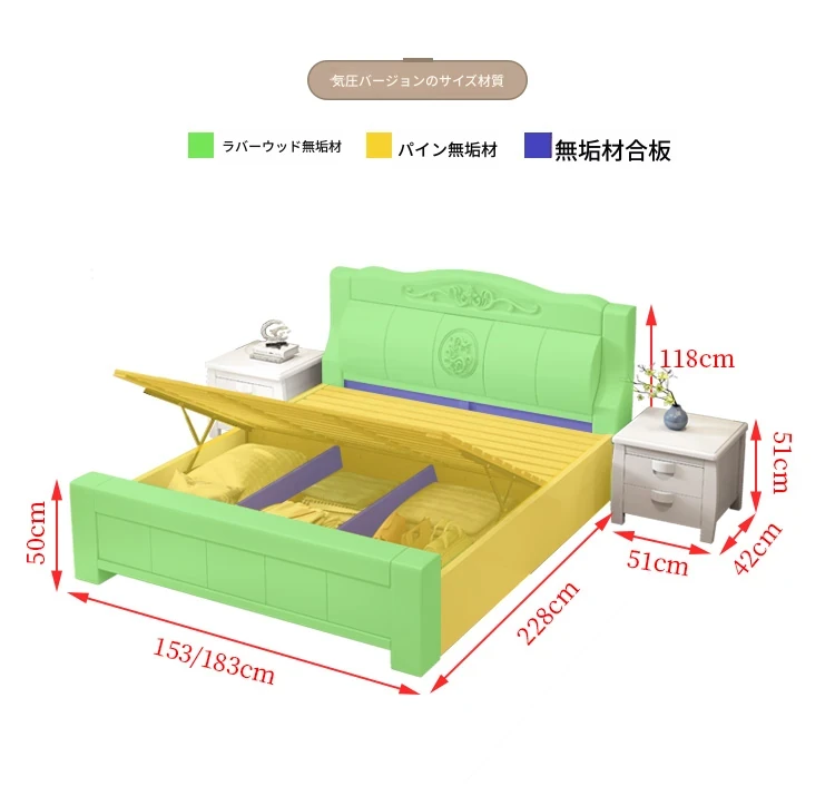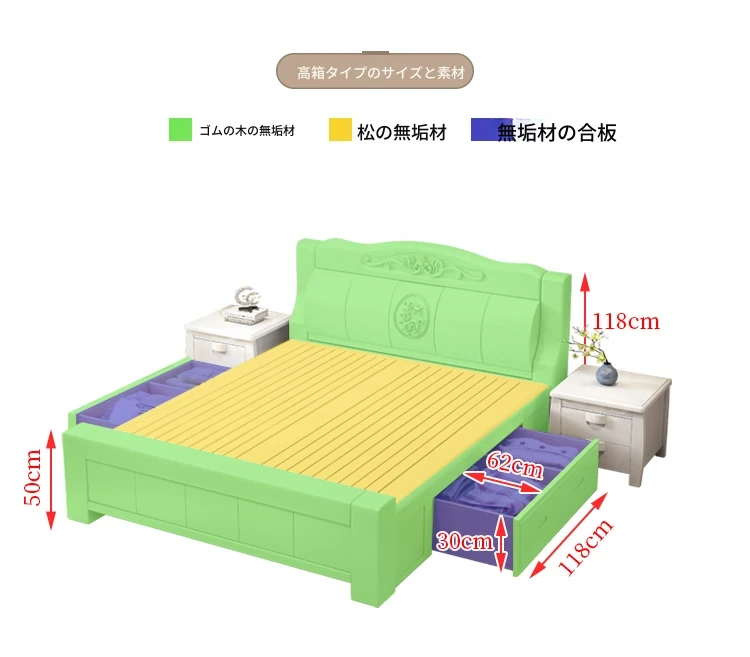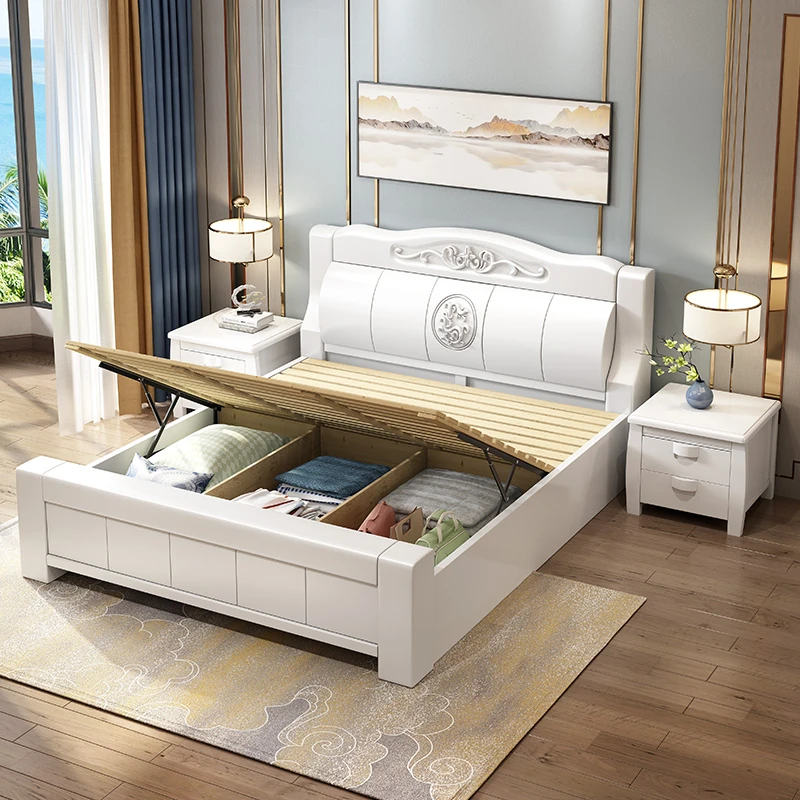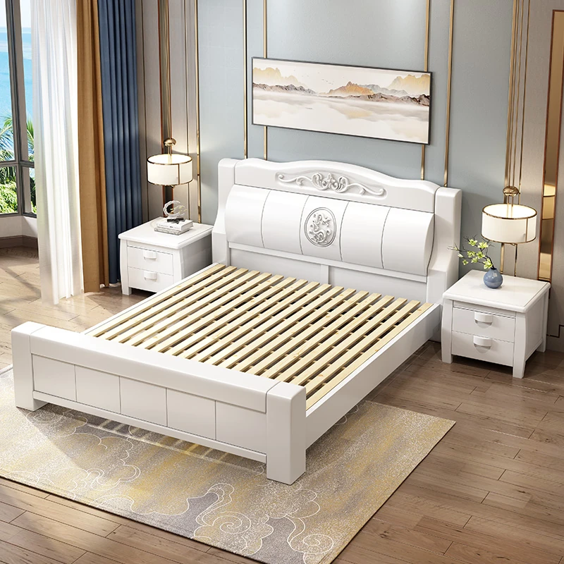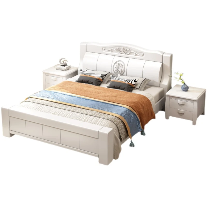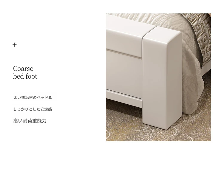 現代的シンプルなデザインの無垢材ベッド!白色のダブルベッド、1.8mと1.5mのサイズから選べる経済的なオプション。オーク材で作られた収納付きの婚礼ベッドは、主寝室にぴったりです。快適な眠りを手に入れましょう!