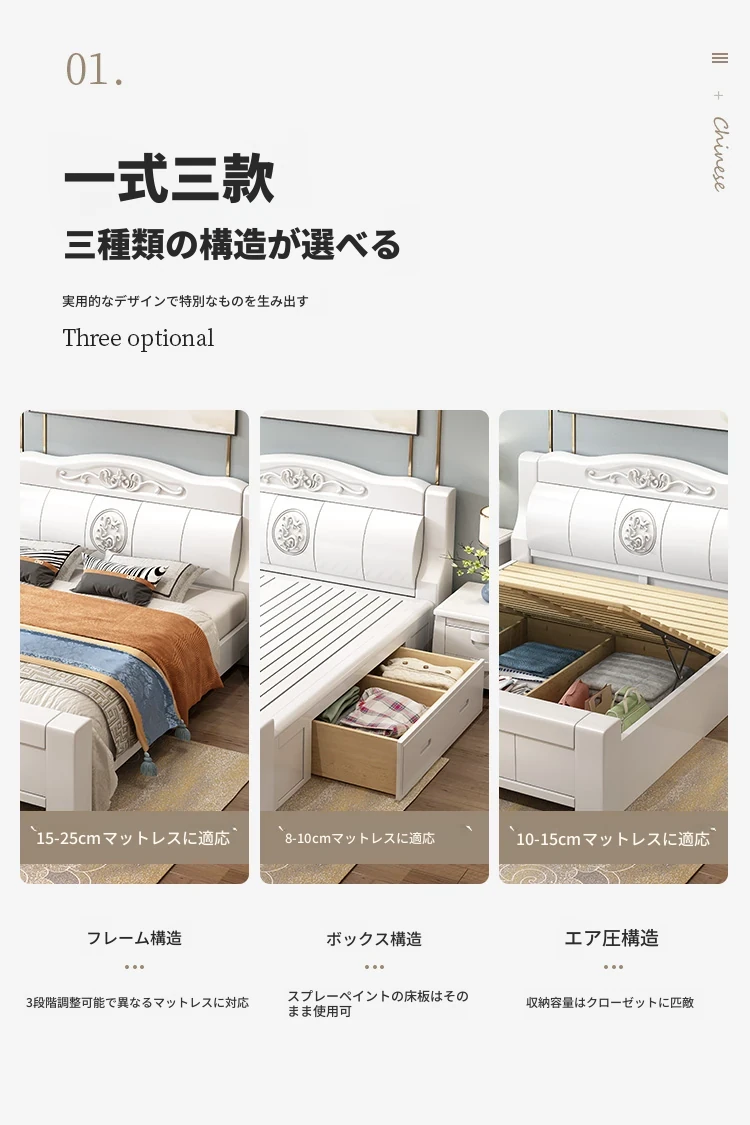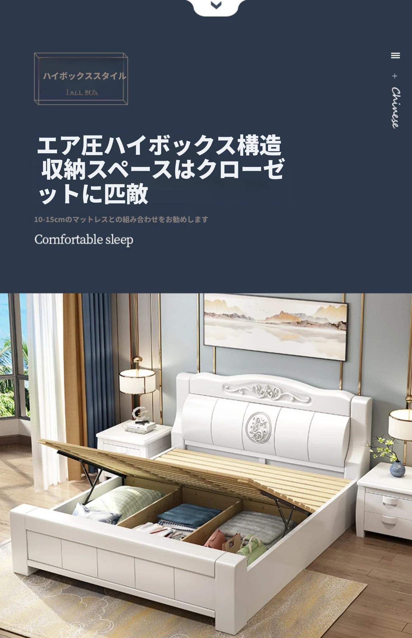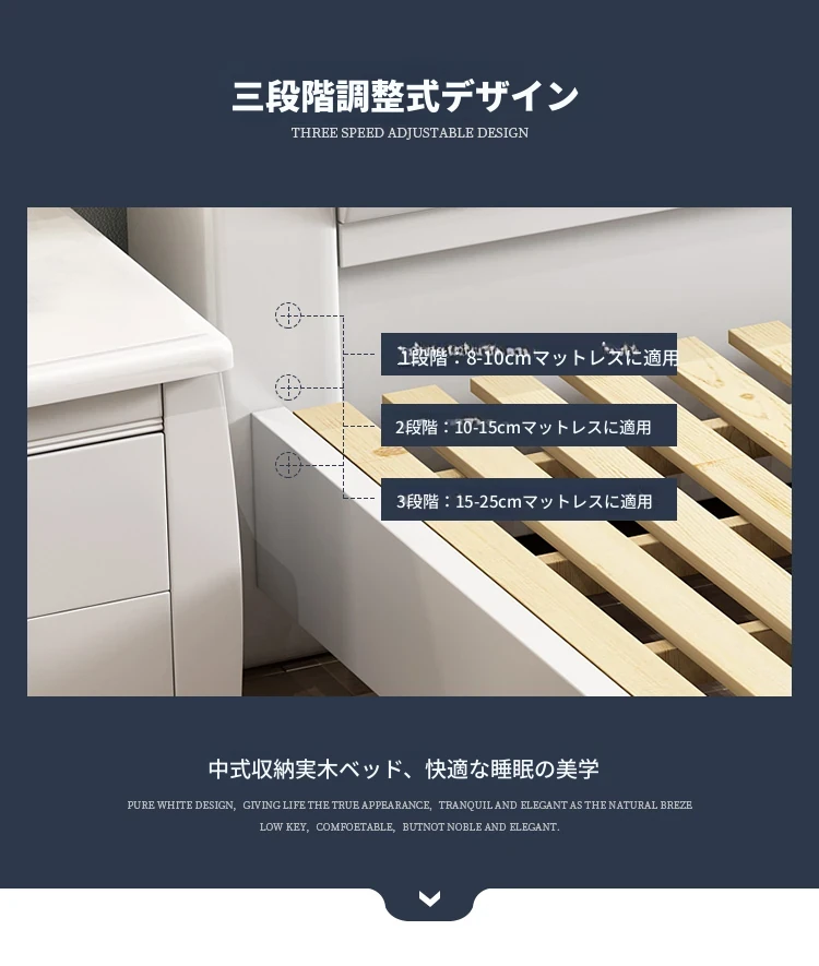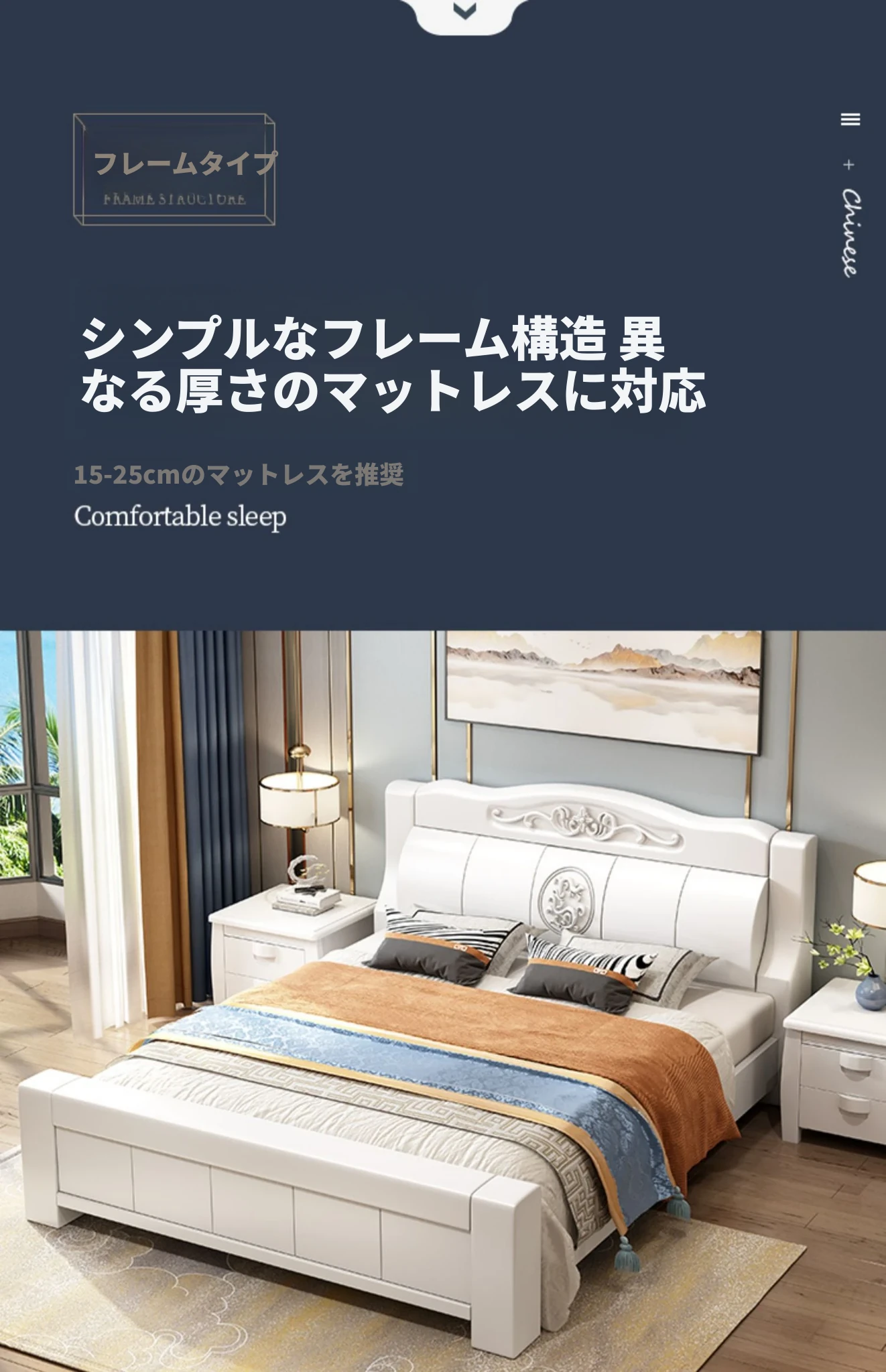 現代的シンプルなデザインの無垢材ベッド!白色のダブルベッド、1.8mと1.5mのサイズから選べる経済的なオプション。オーク材で作られた収納付きの婚礼ベッドは、主寝室にぴったりです。快適な眠りを手に入れましょう!