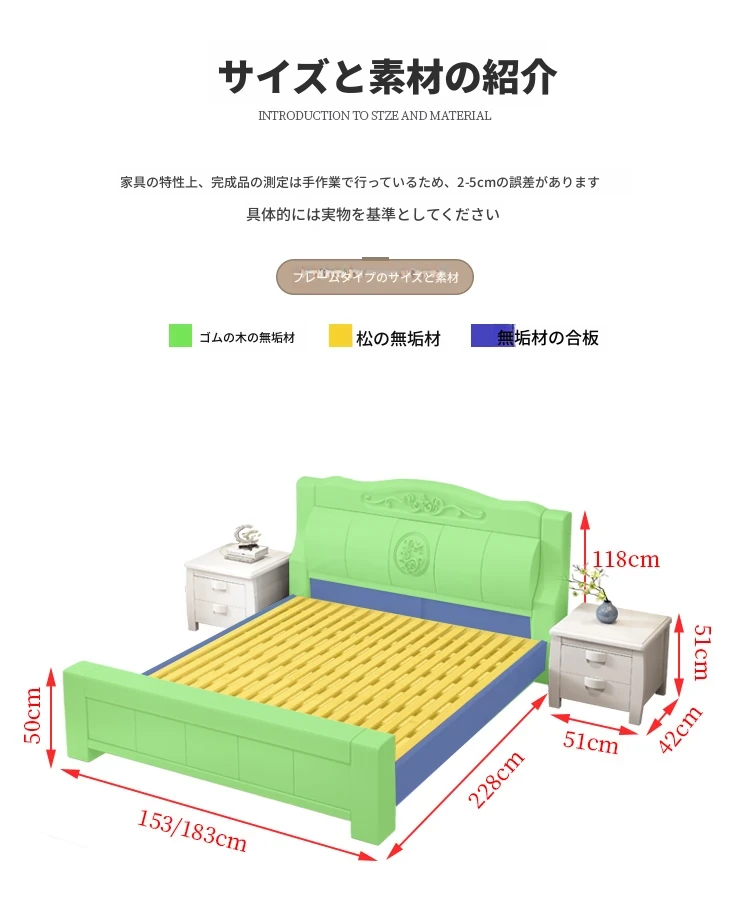 ベッド+2つのナイトテーブル+10CMラテックスココナッツマット