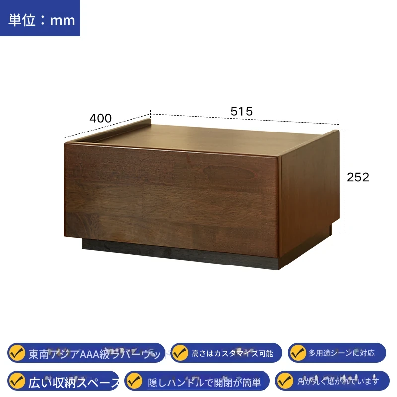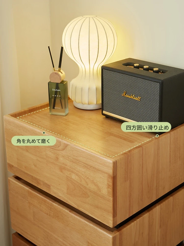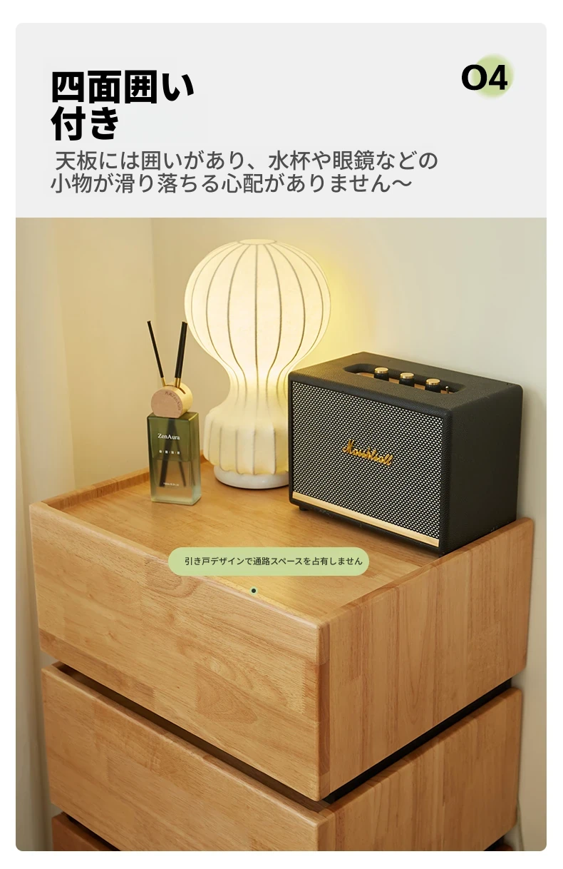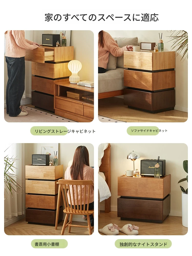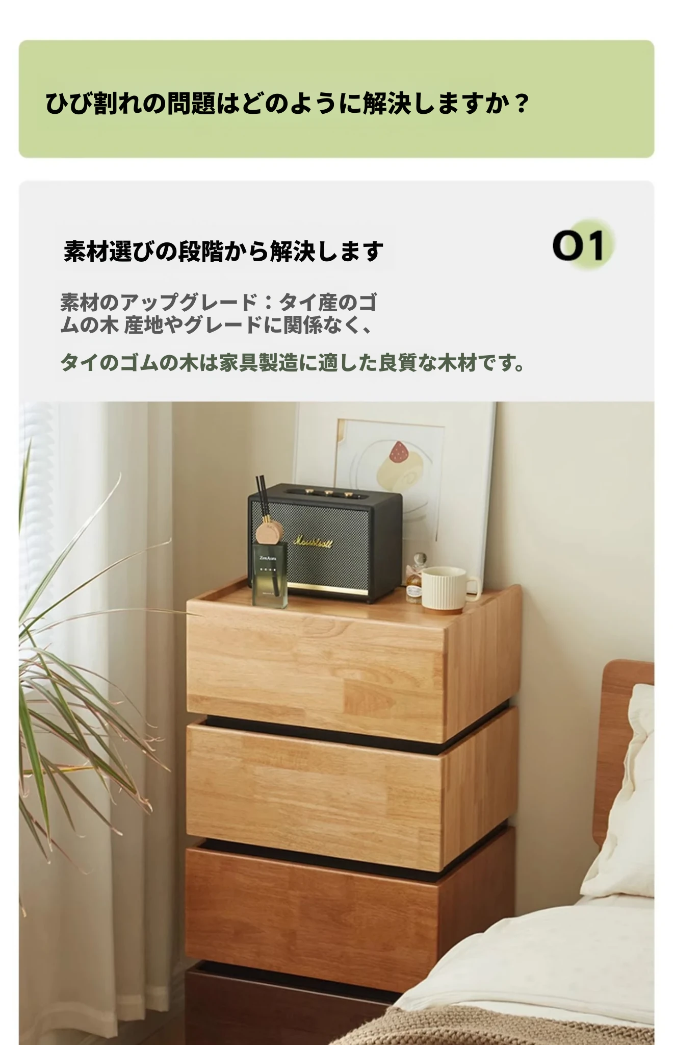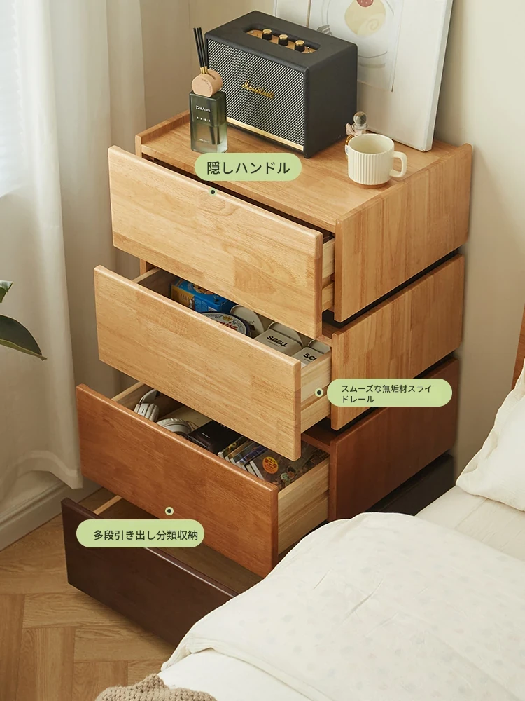 シンプルでモダンな実木製ベッドサイドテーブル - 寝室やリビングに最適な収納力抜群の引き出し付きキャビネット!壁に寄せて使えるデザインで、空間を有効活用しながらスタイリッシュに。