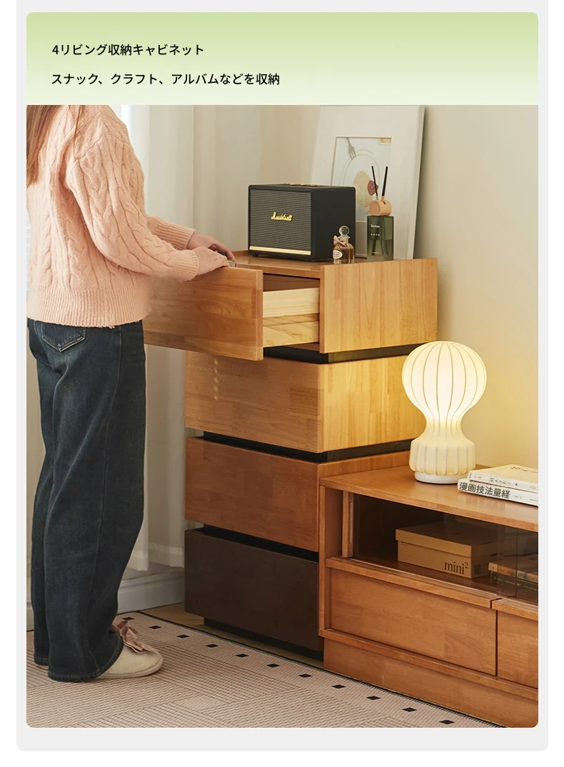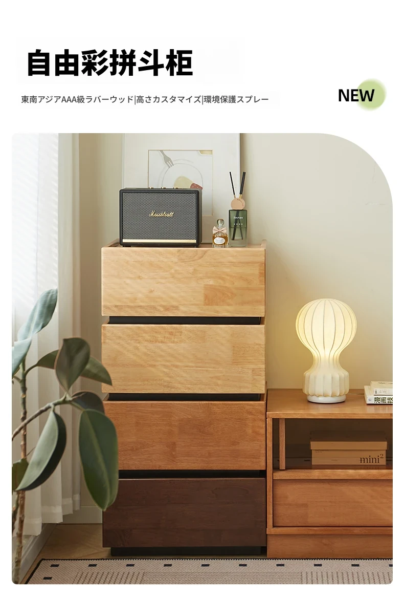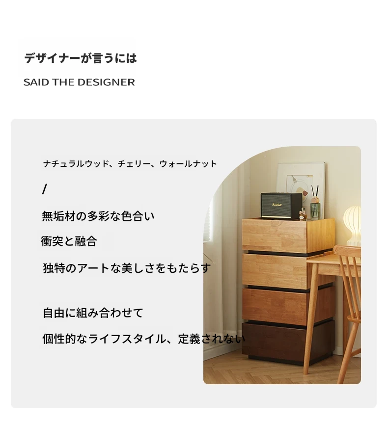 【フルセット配送】シングルドロワーキャビネットナチュラルウッド色【3色自由組み合わせ】