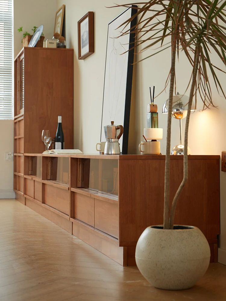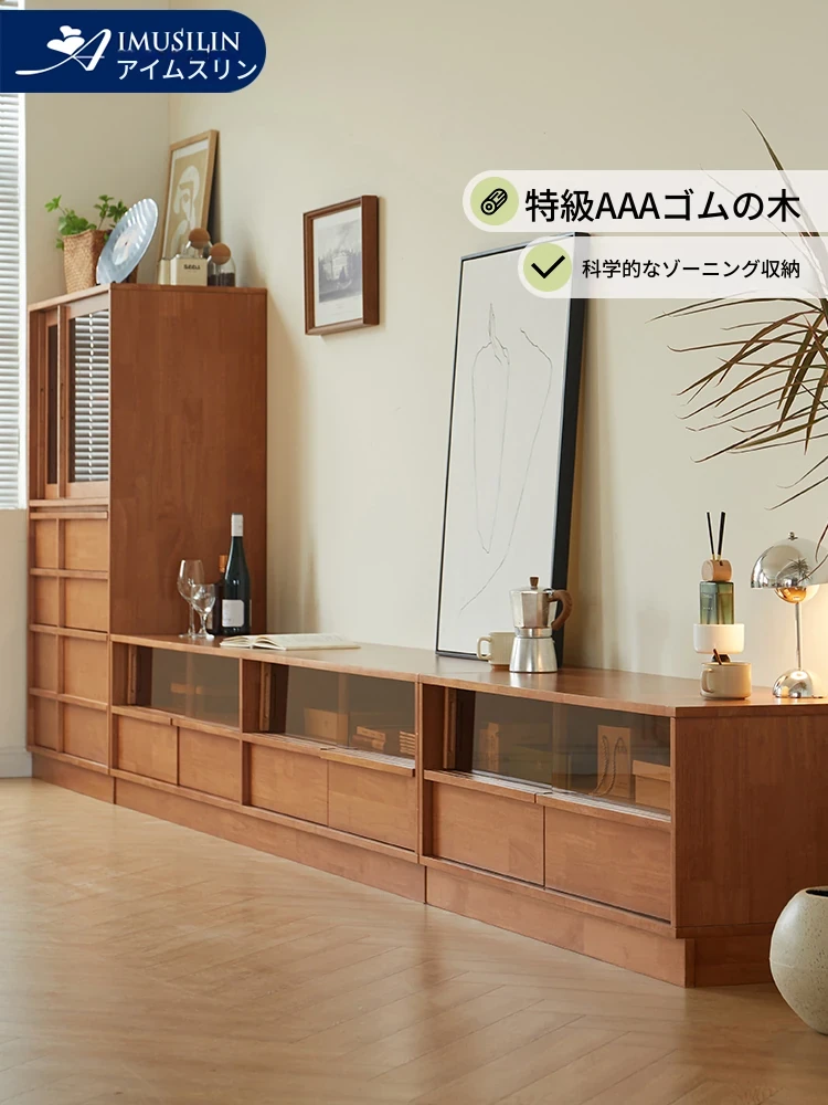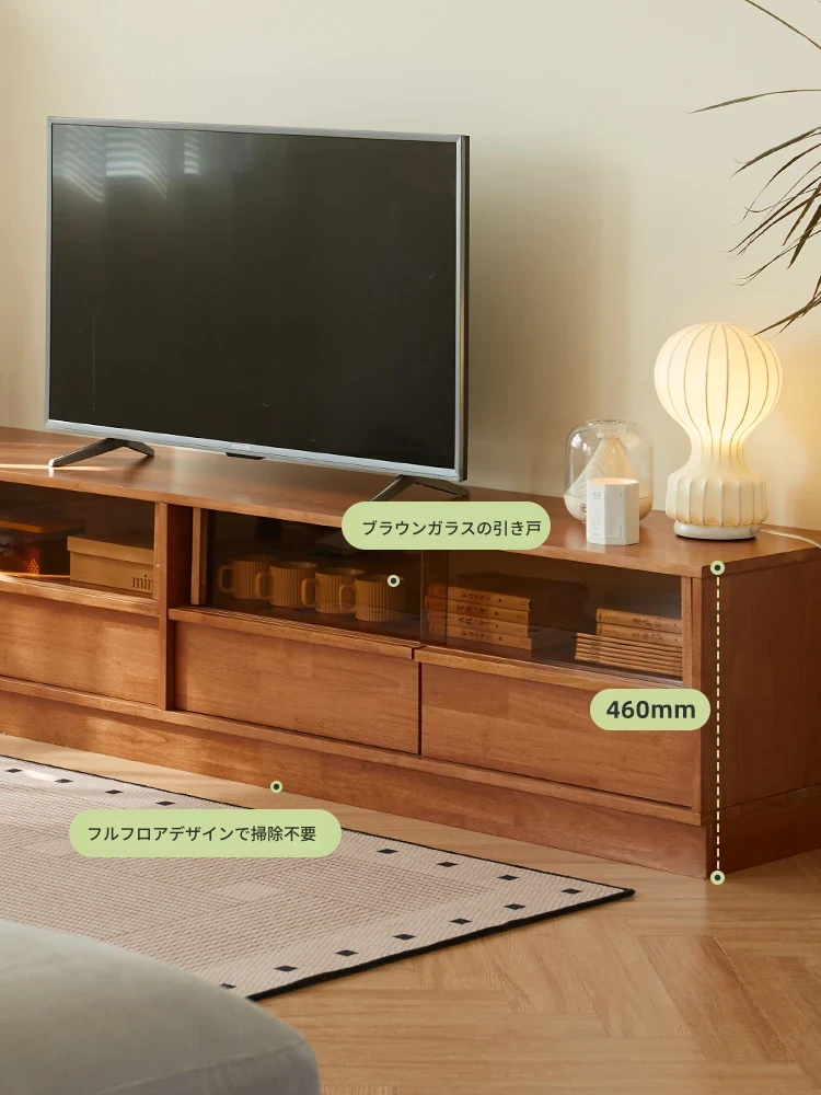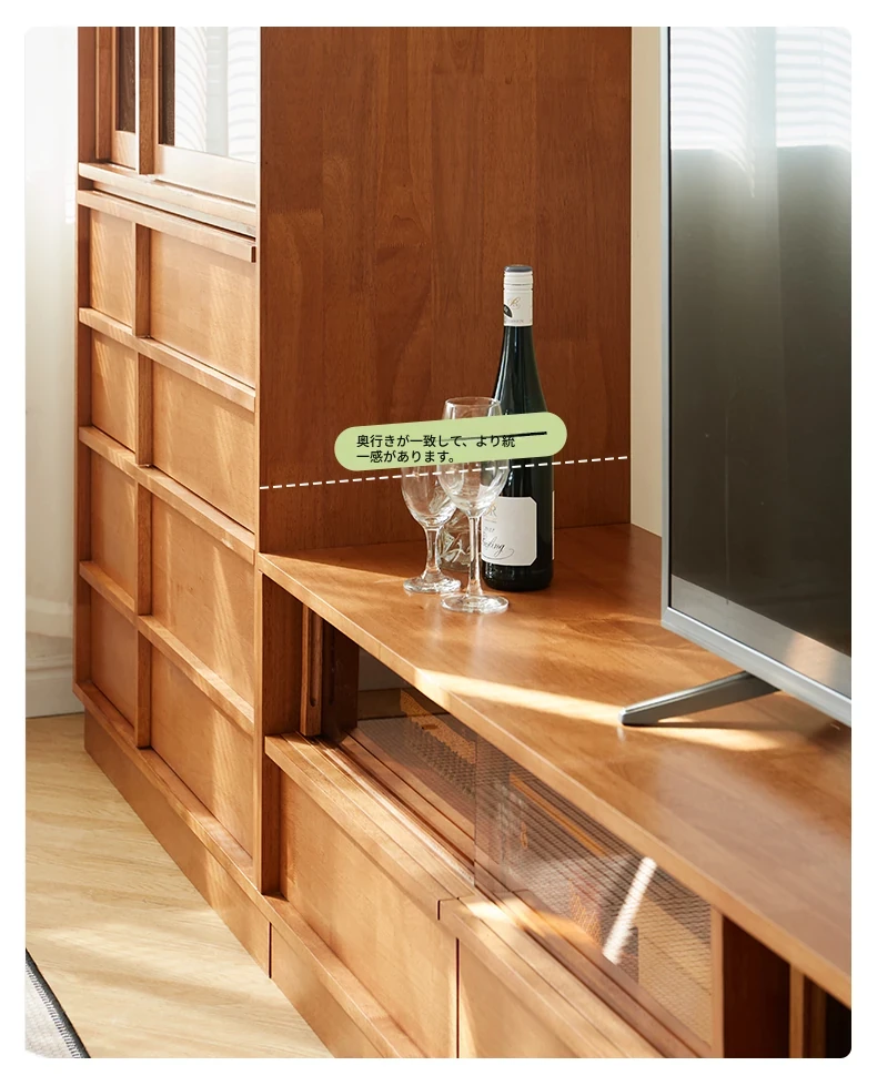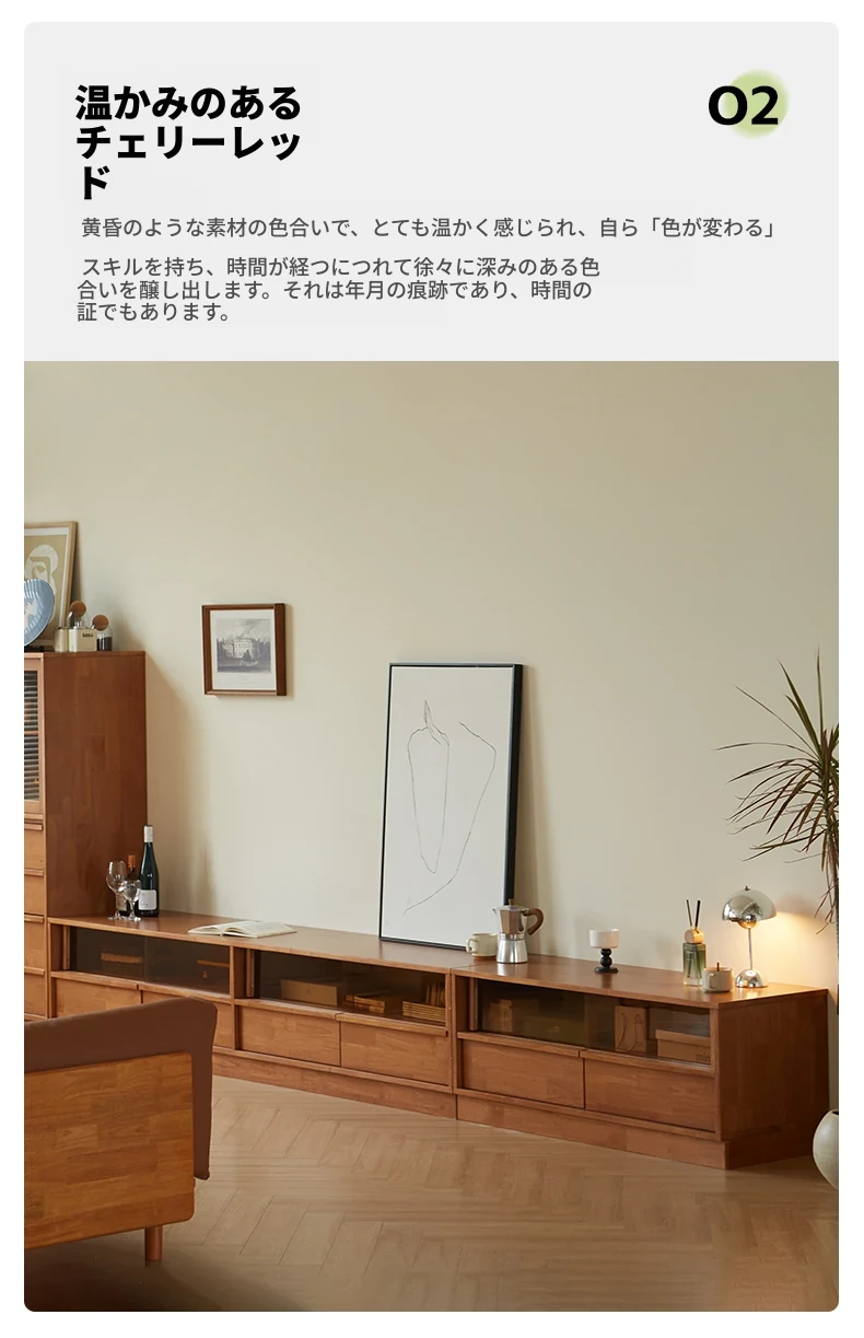 【即納】2.2メートル中古テレビキャビネットチェリーウッドカラー