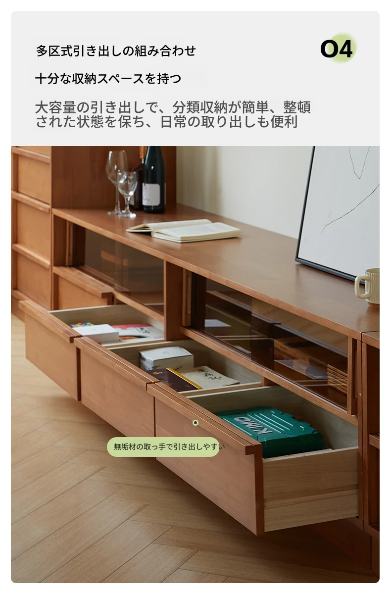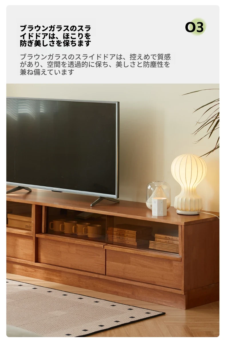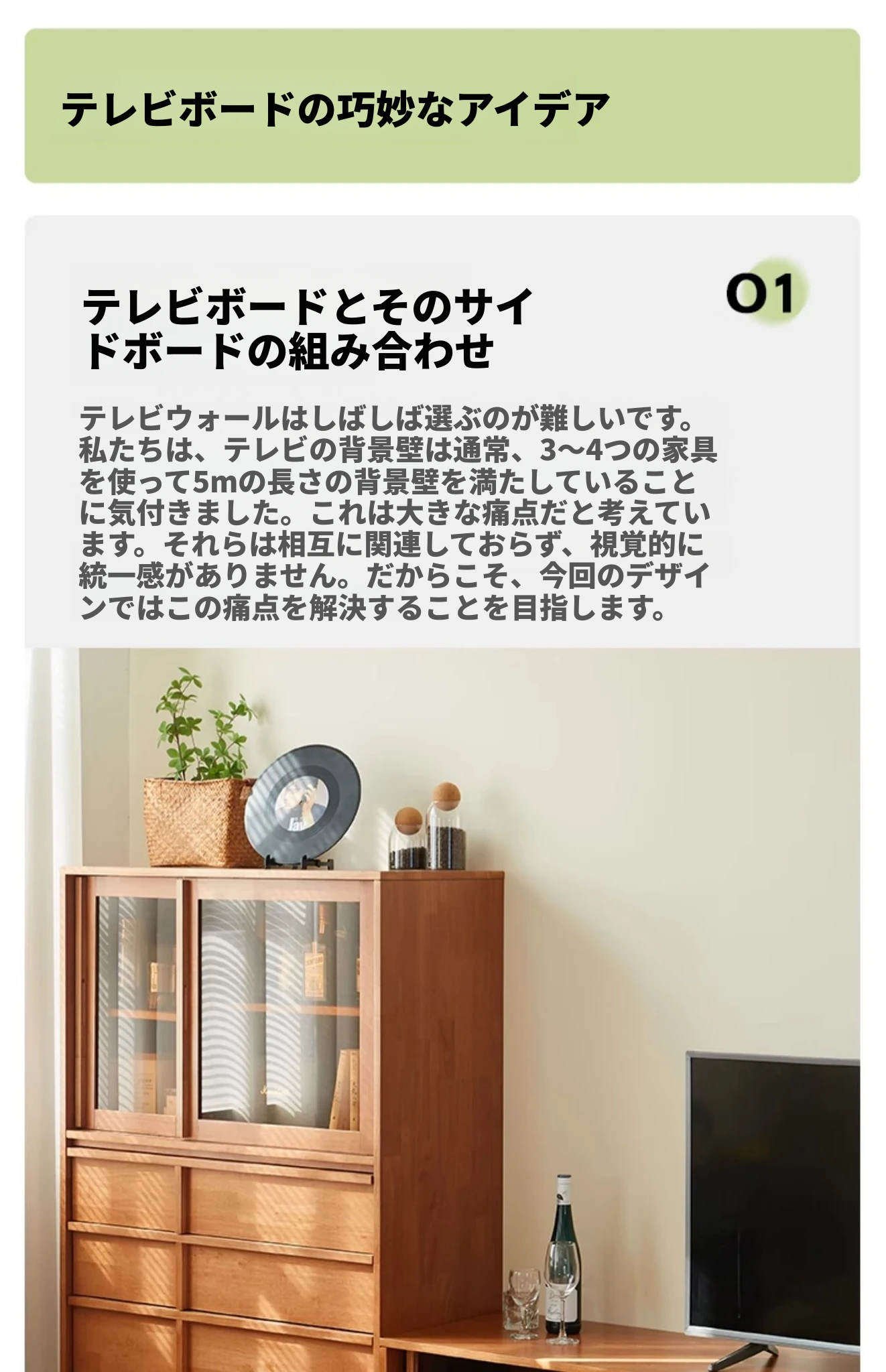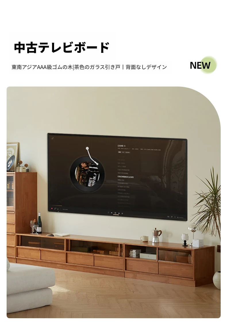 モダンでシンプルな実木製テレビキャビネット - リビングにぴったりの収納力抜群!小型住宅にも最適な一体型デザインで、映画やドラマを楽しむための中古風スタイル。おしゃれで機能的な空間を演出します!