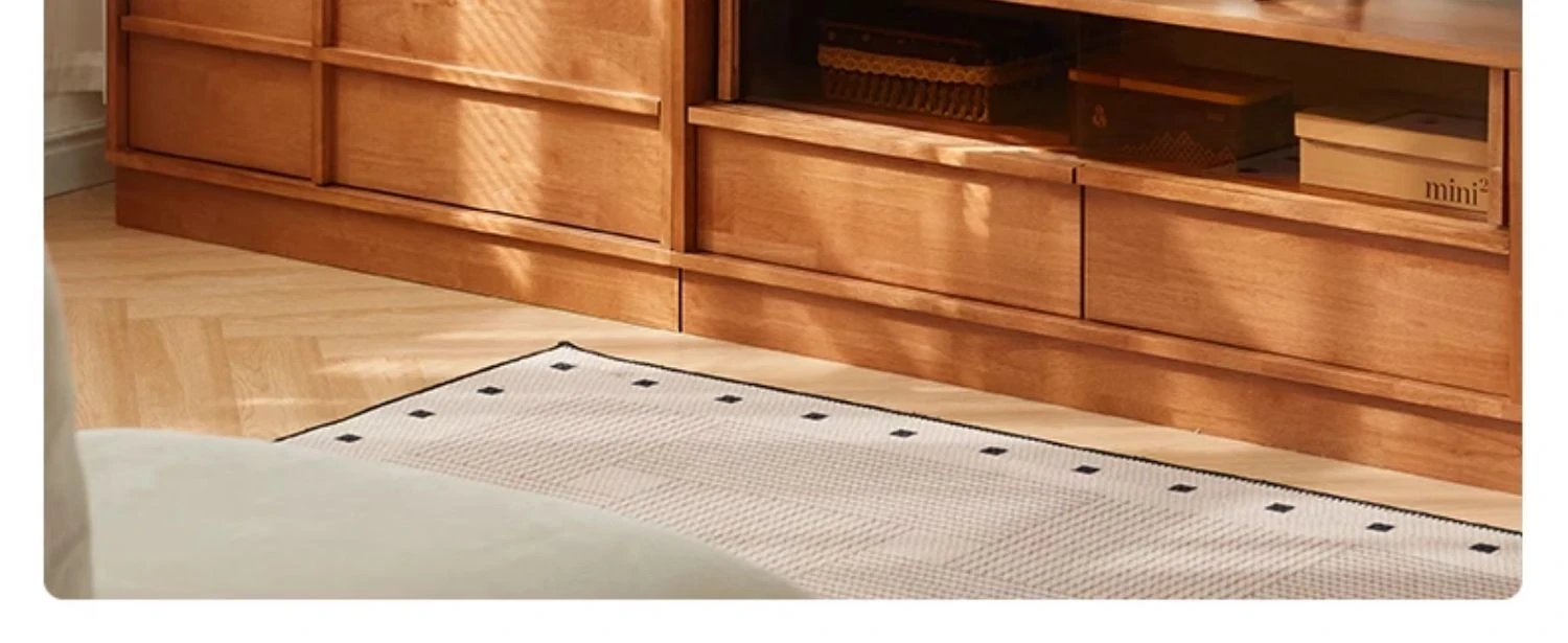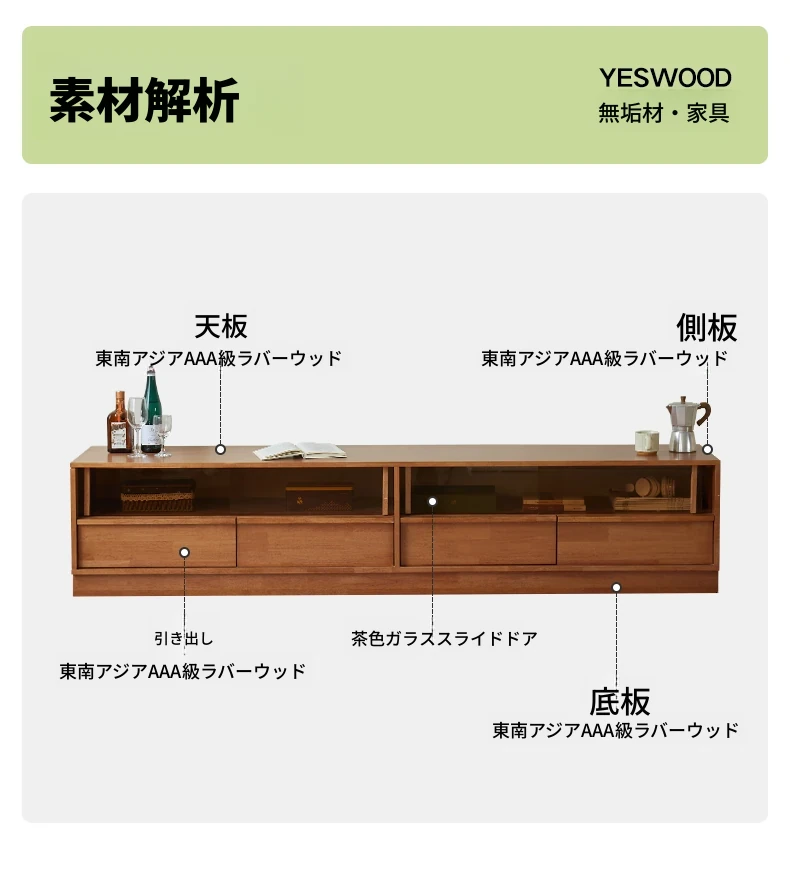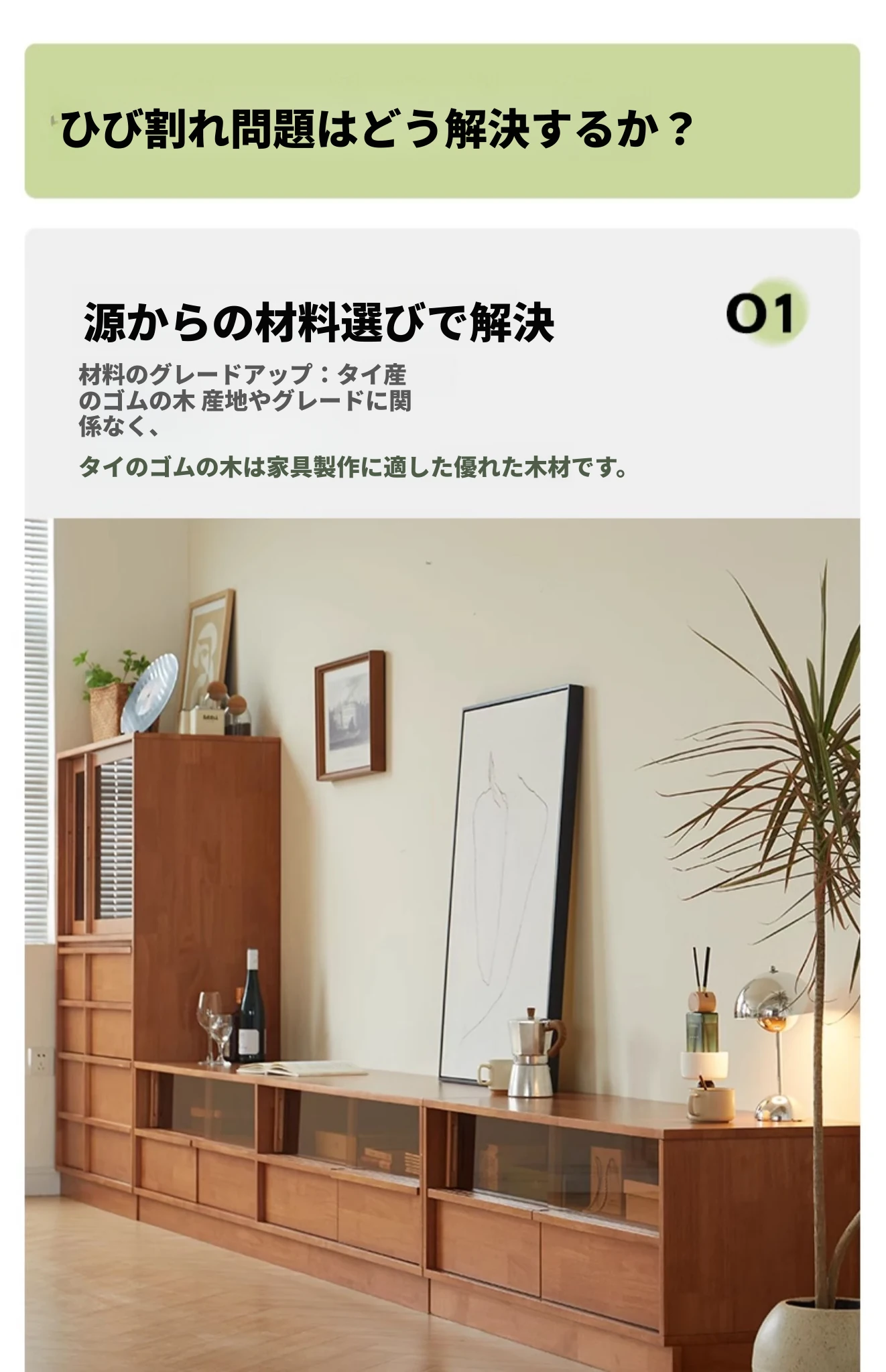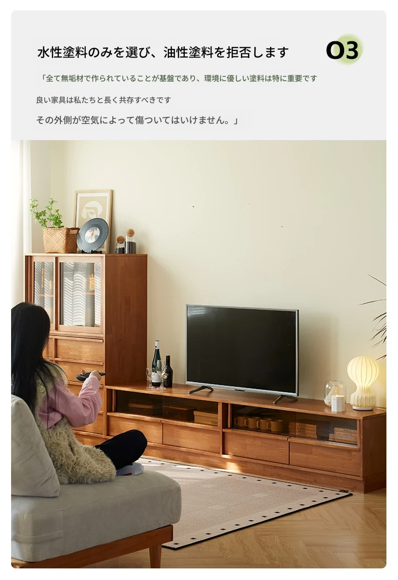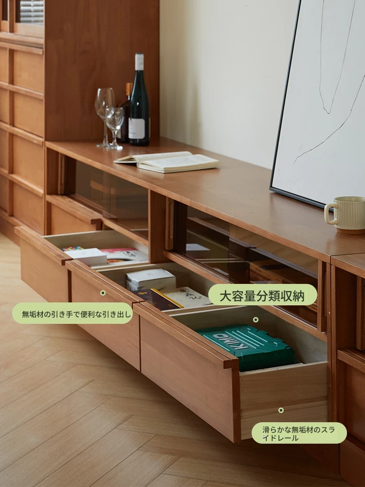 モダンでシンプルな実木製テレビキャビネット - リビングにぴったりの収納力抜群!小型住宅にも最適な一体型デザインで、映画やドラマを楽しむための中古風スタイル。おしゃれで機能的な空間を演出します!