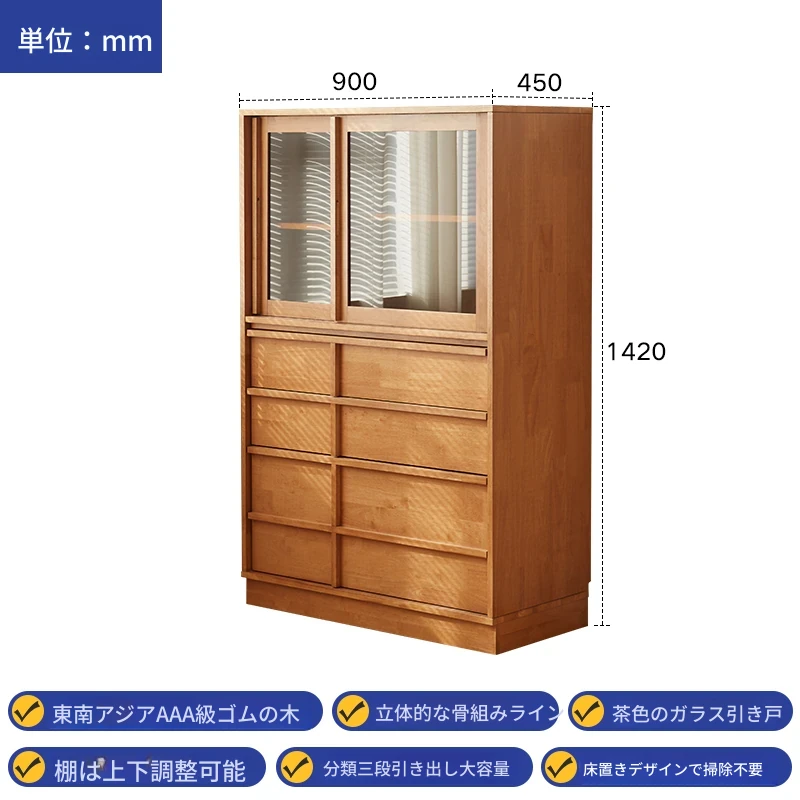 【即納】0.9メートル中古ハイサイドキャビネットチェリーウッドカラー