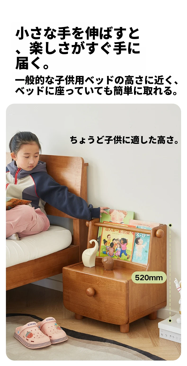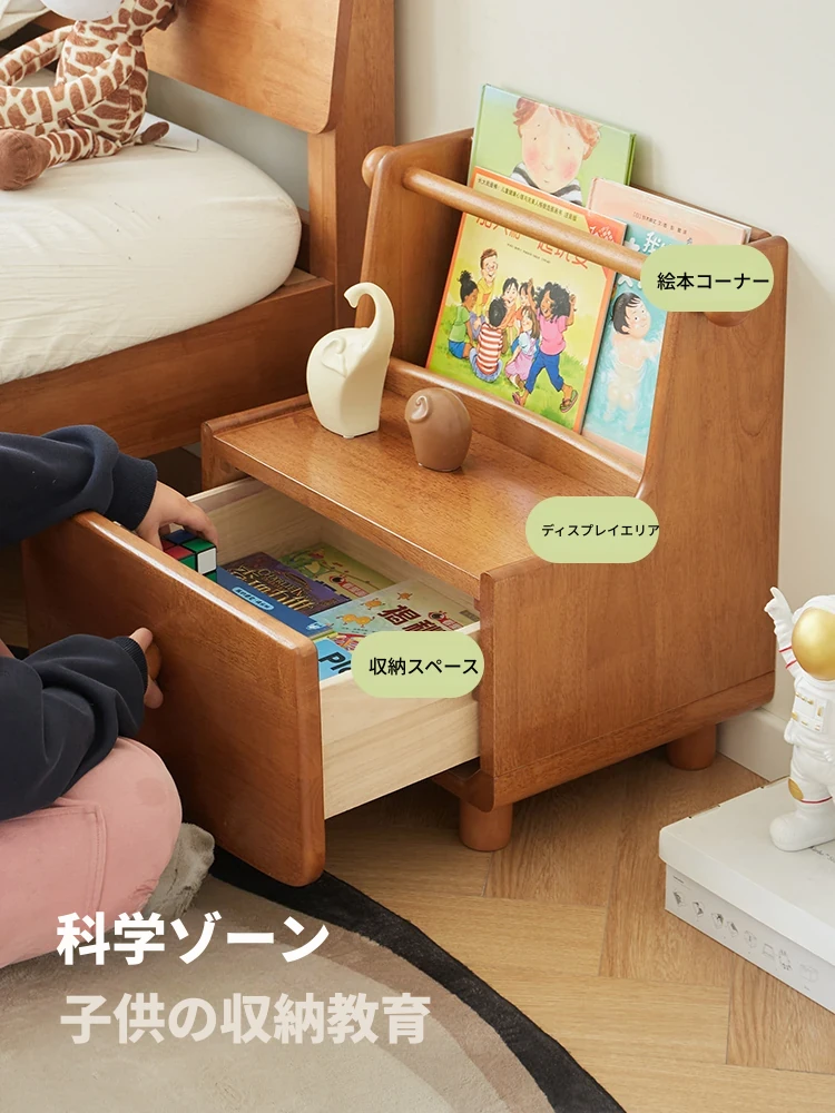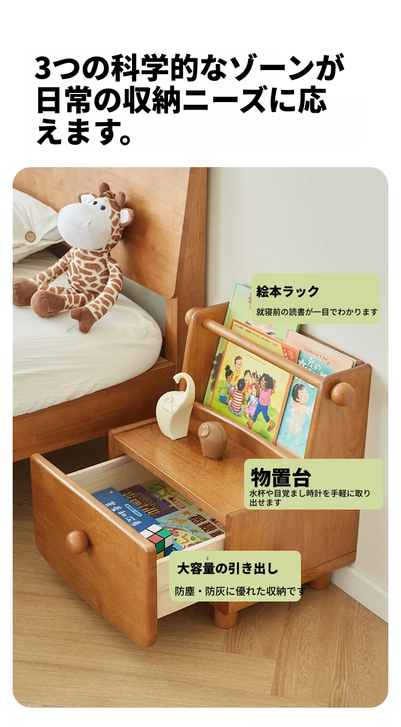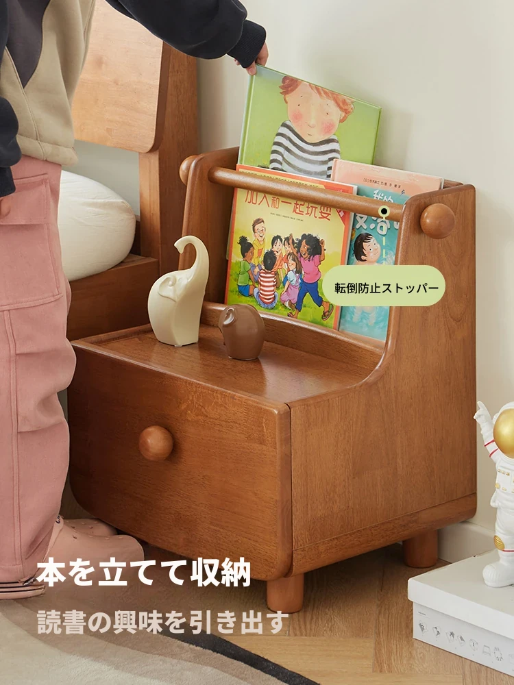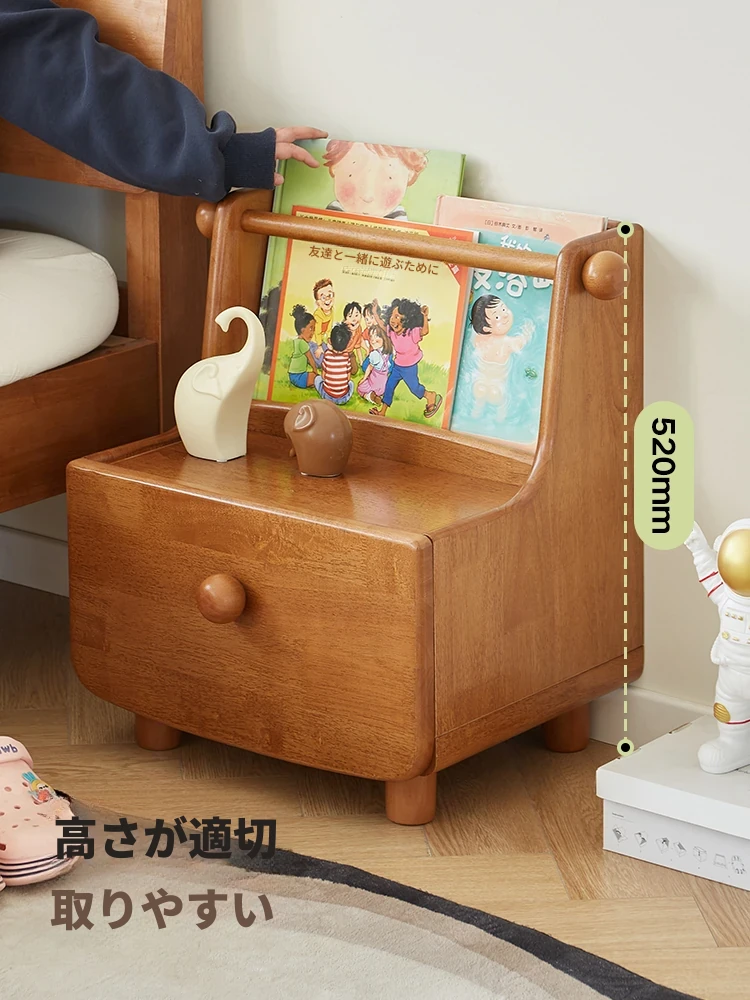 北欧風シンプルデザインの実木ベッドサイド収納棚 - 小型家用ナイトスタンド、子供の絵本ラックにも最適!お部屋をスッキリ整理するモダンな収納家具。