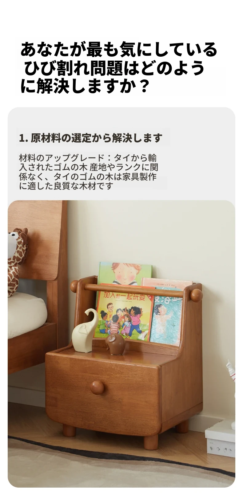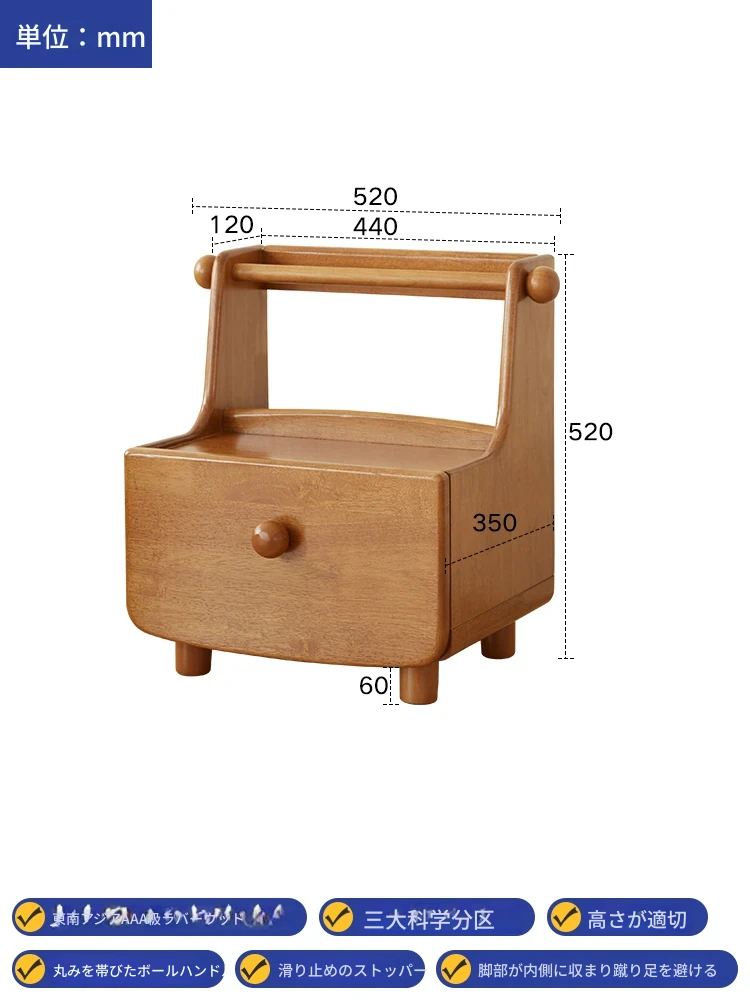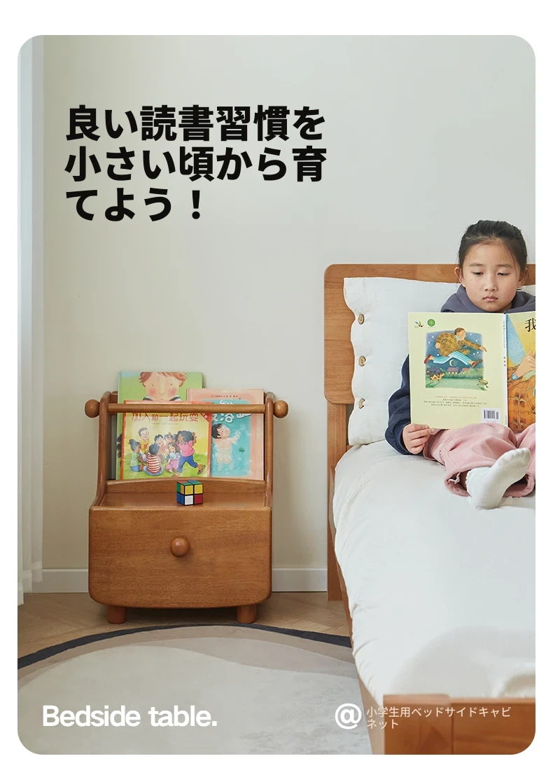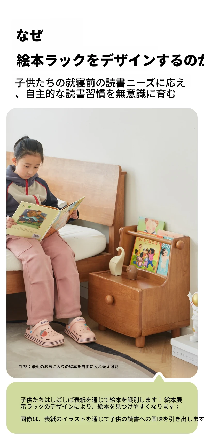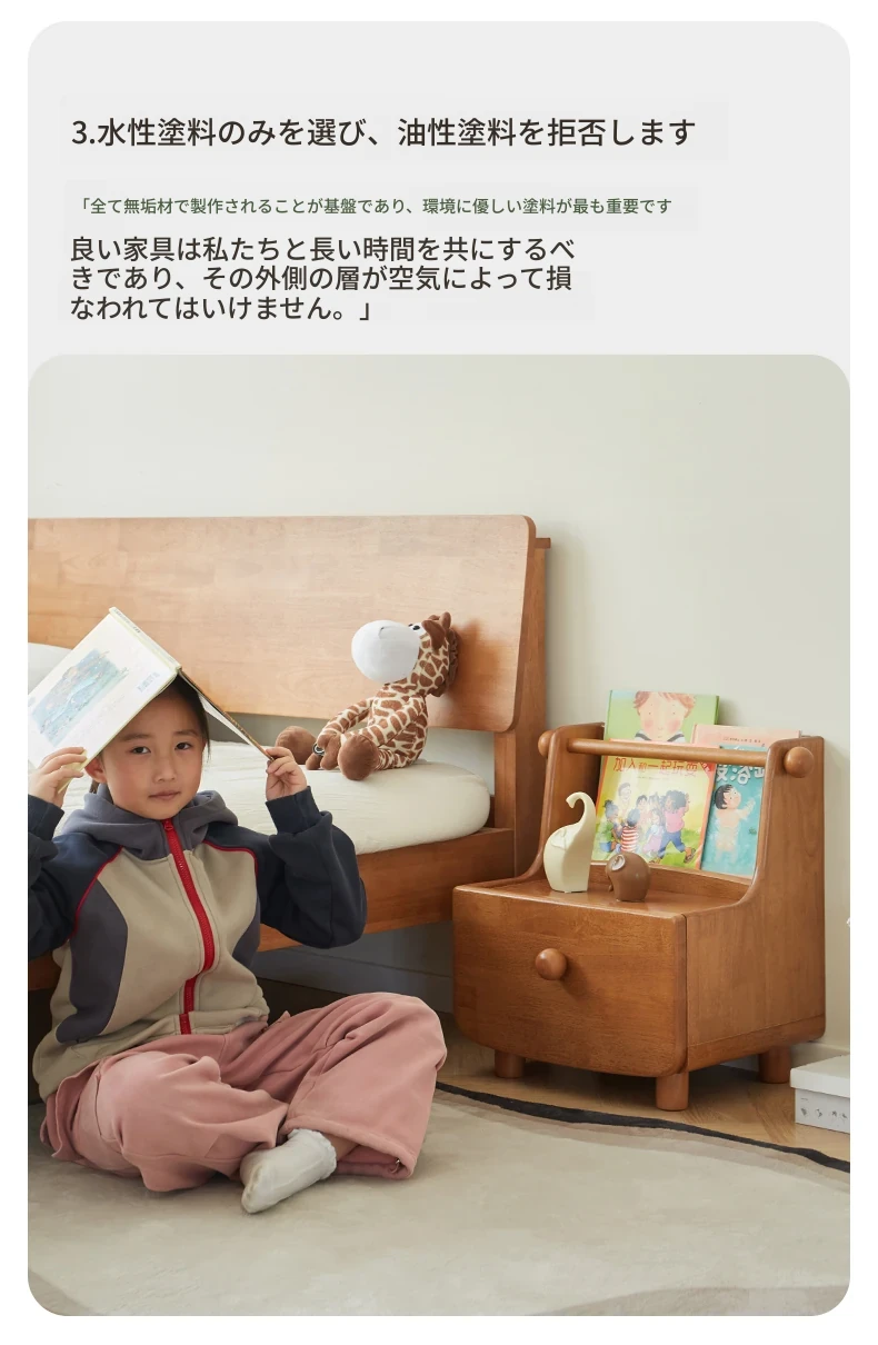 北欧風シンプルデザインの実木ベッドサイド収納棚 - 小型家用ナイトスタンド、子供の絵本ラックにも最適!お部屋をスッキリ整理するモダンな収納家具。