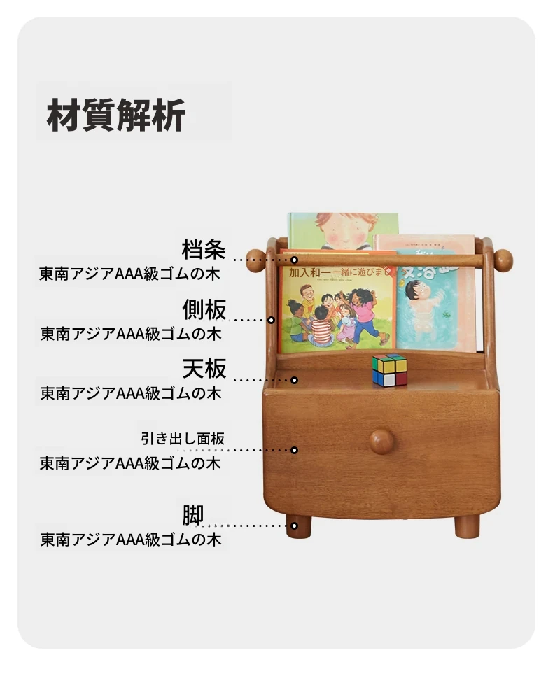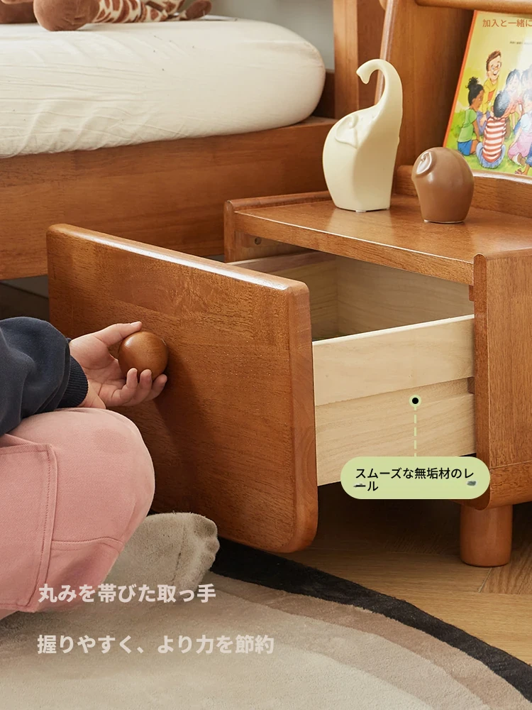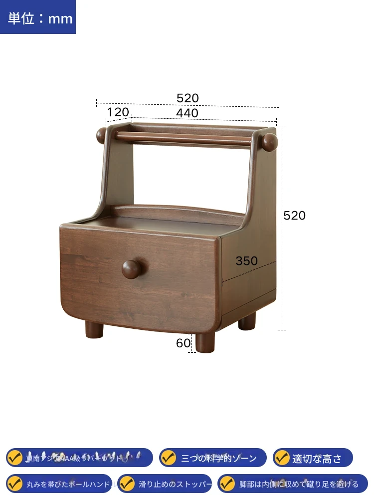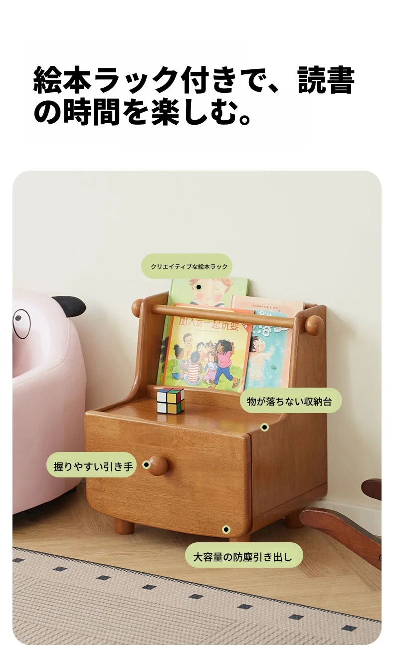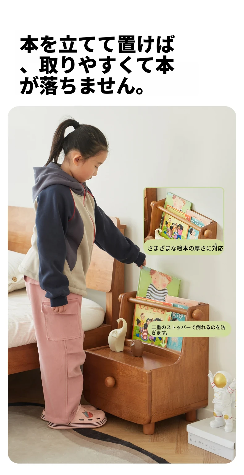 北欧風シンプルデザインの実木ベッドサイド収納棚 - 小型家用ナイトスタンド、子供の絵本ラックにも最適!お部屋をスッキリ整理するモダンな収納家具。