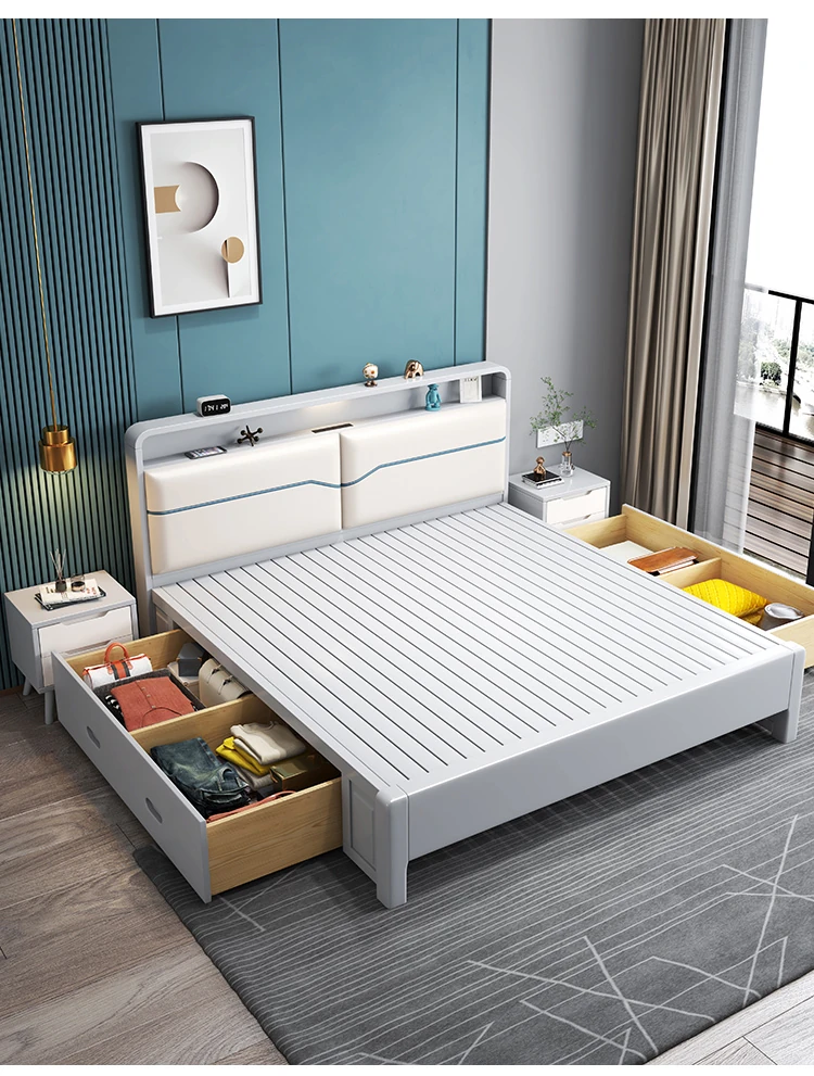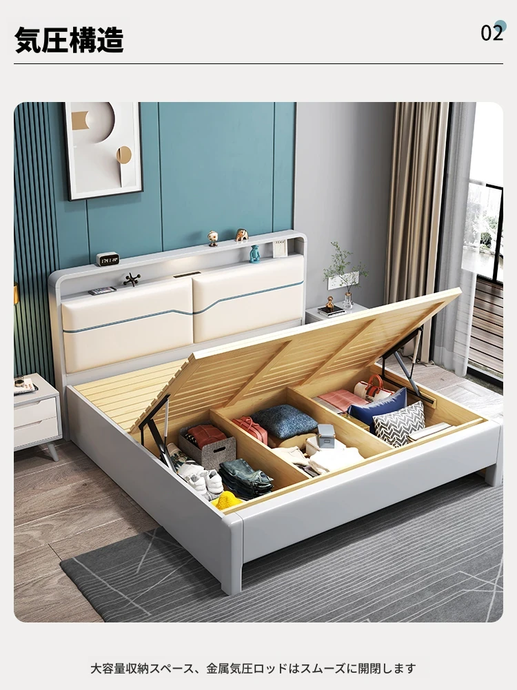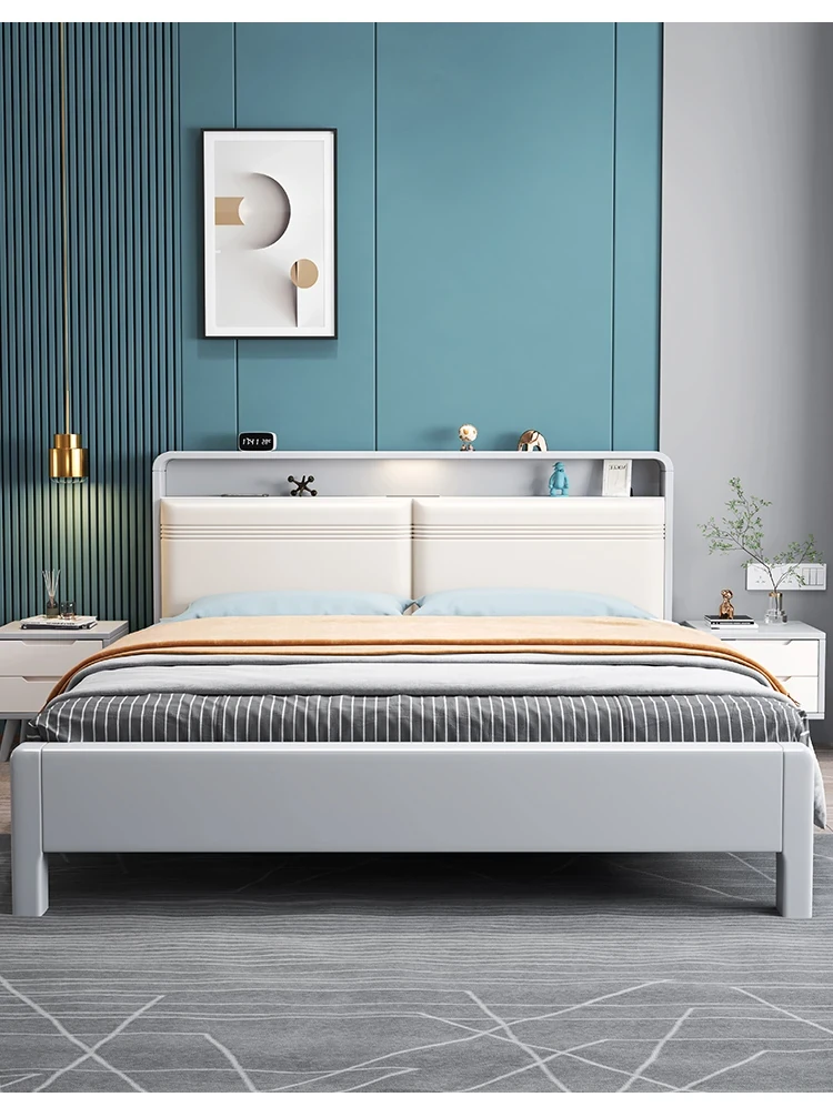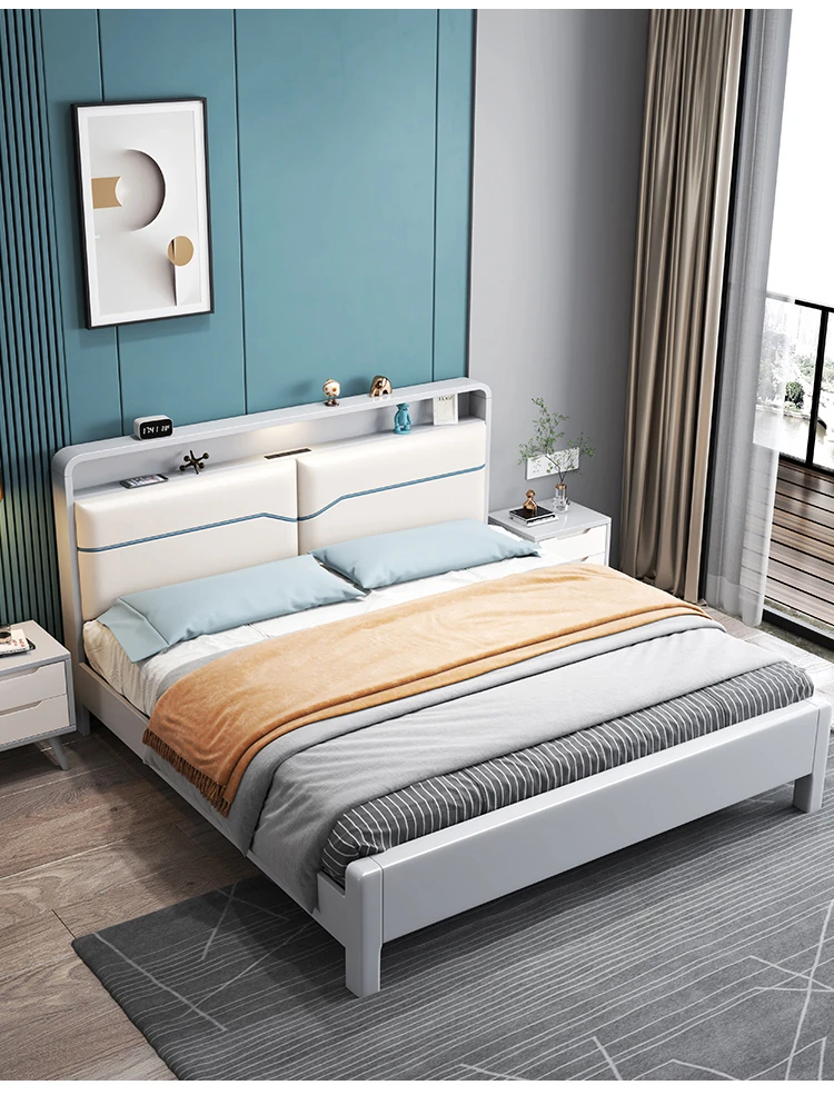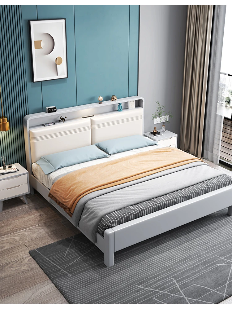 北欧スタイルの1.8m実木ソフトパックベッド!シンプルでモダンなデザイン、ホワイトのダブルベッド。収納付きで狭い部屋にもぴったり!経済的な婚礼用ベッドで、快適な睡眠空間を実現します。