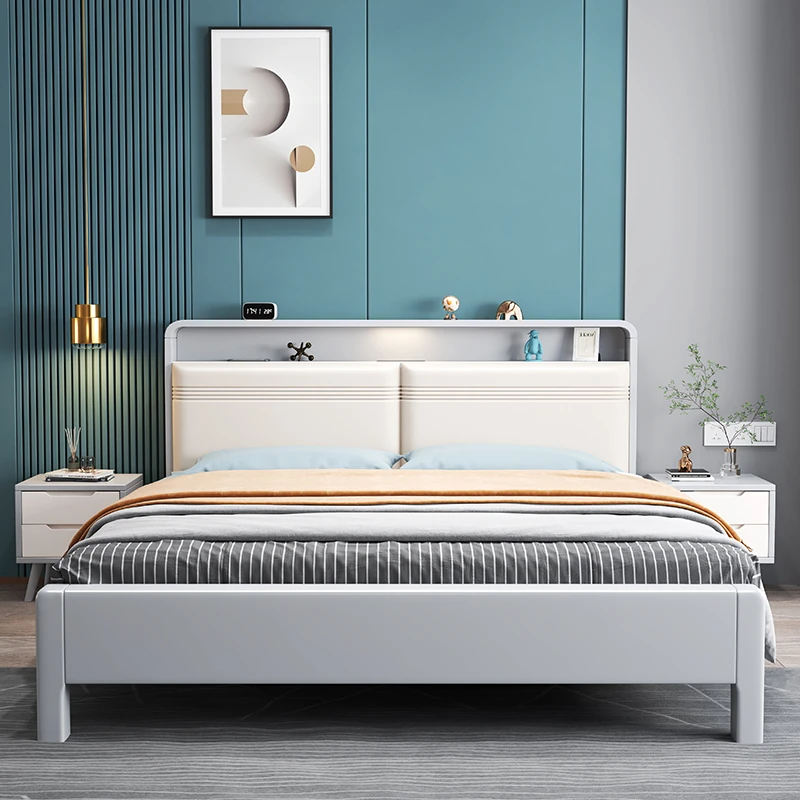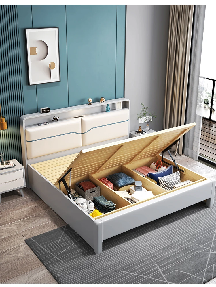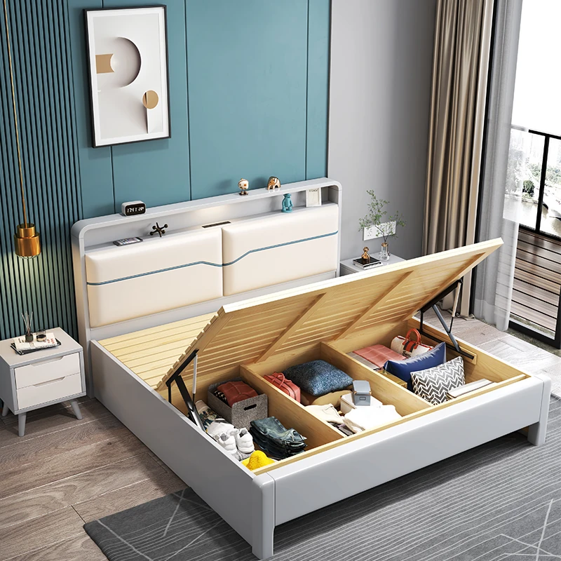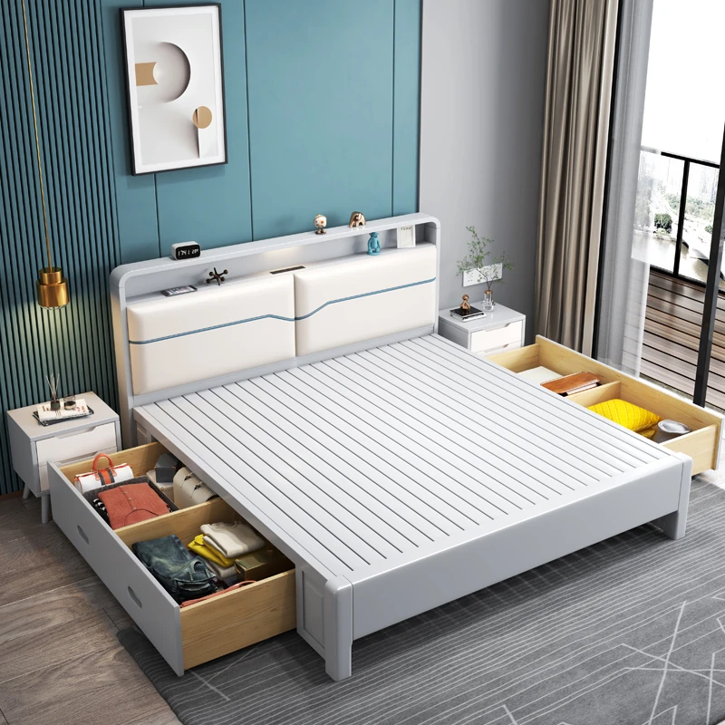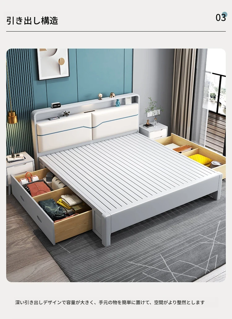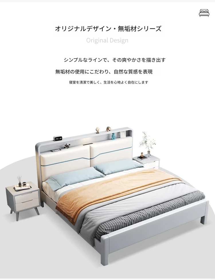 北欧スタイルの1.8m実木ソフトパックベッド!シンプルでモダンなデザイン、ホワイトのダブルベッド。収納付きで狭い部屋にもぴったり!経済的な婚礼用ベッドで、快適な睡眠空間を実現します。