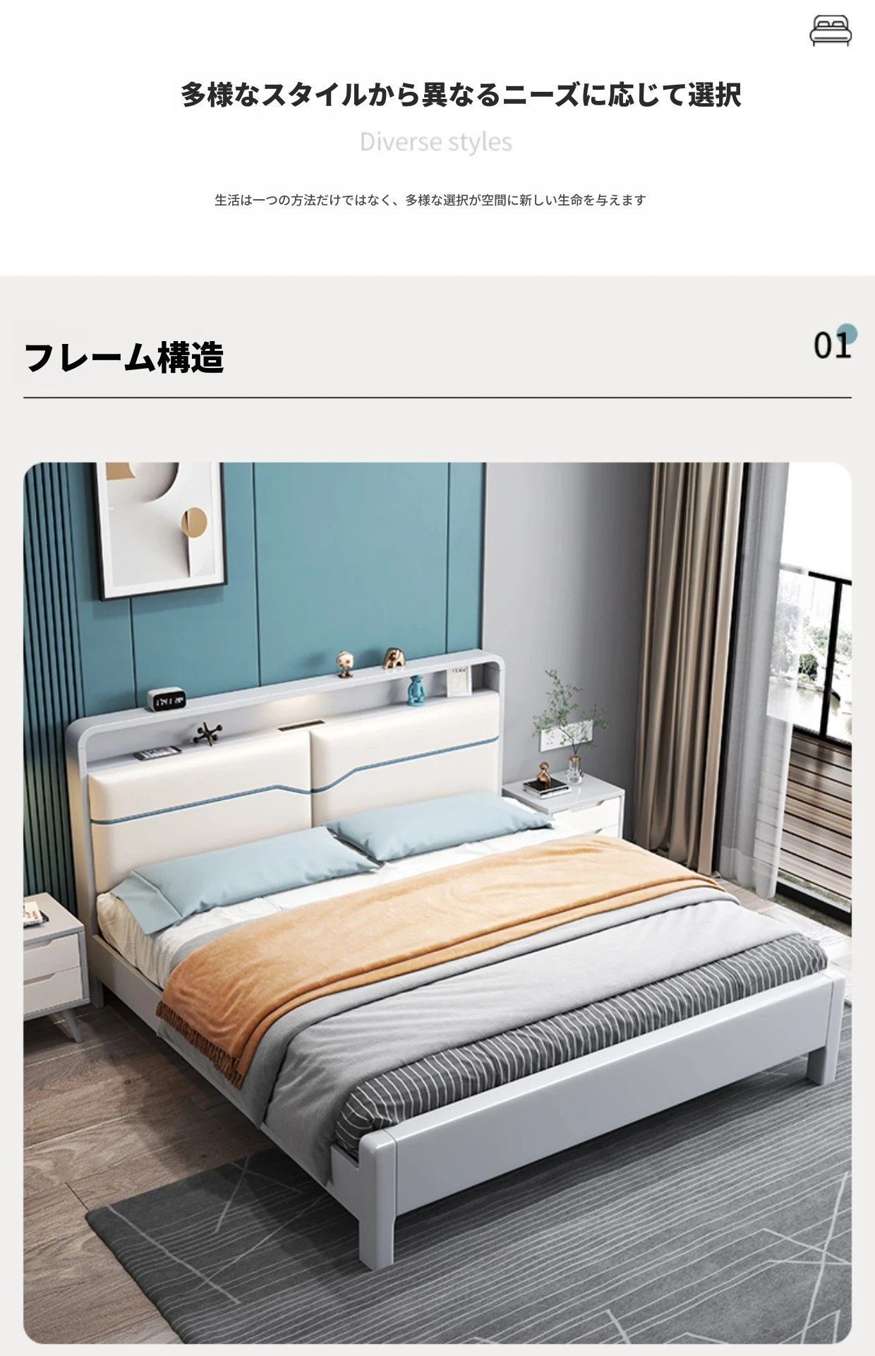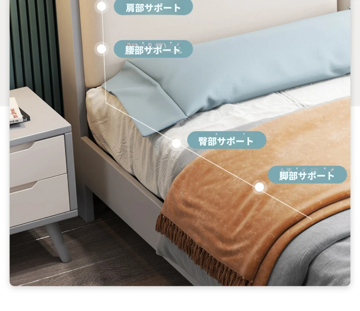 ベッド+2つのナイトスタンド