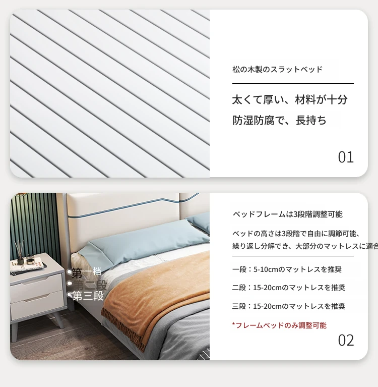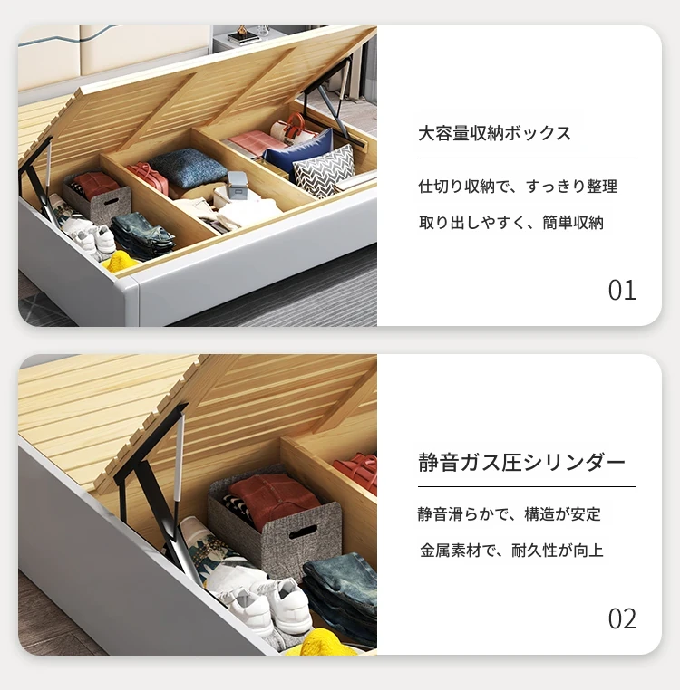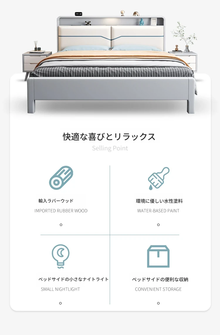 ベッド+(21cm)アイスシルクラテックススプリングマットレス+1キャビネット