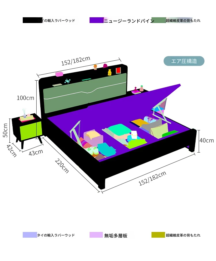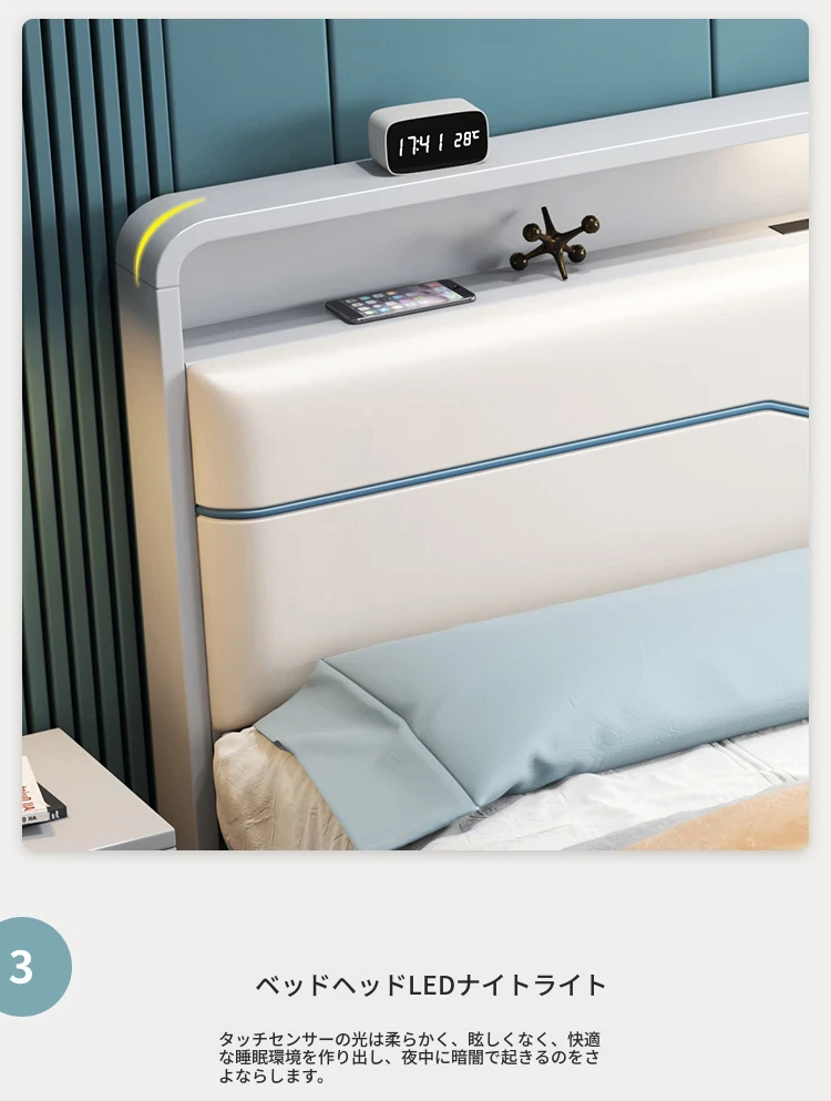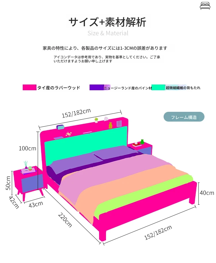 ベッド+(21cm)アイスシルクラテックススプリングマットレス+2キャビネット