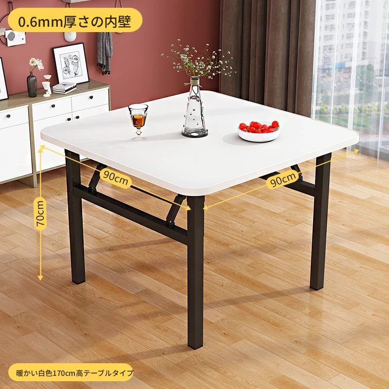 折りたたみ鋼製テーブル【幅90x高さ70】暖かい白 0.6mm厚内壁