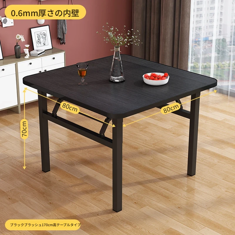 折りたたみ鋼製テーブル【幅80x高さ70】黒木目 0.6mm厚内壁