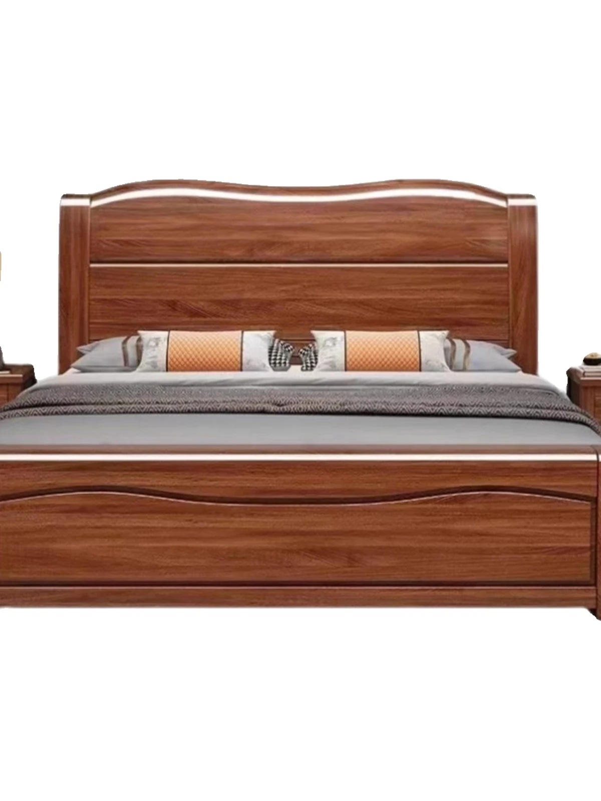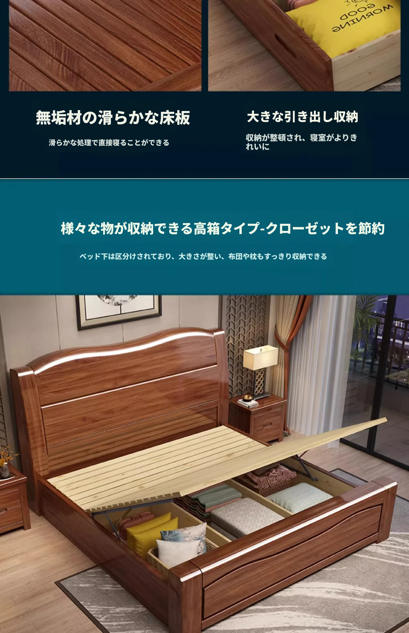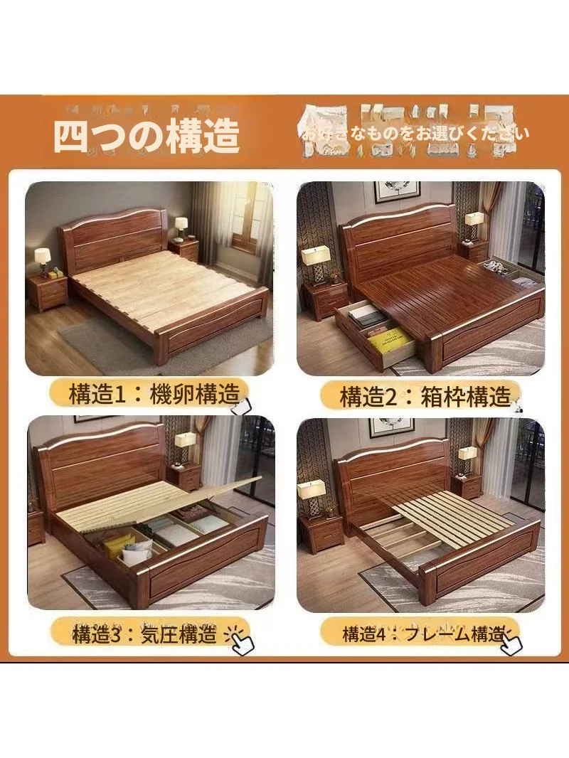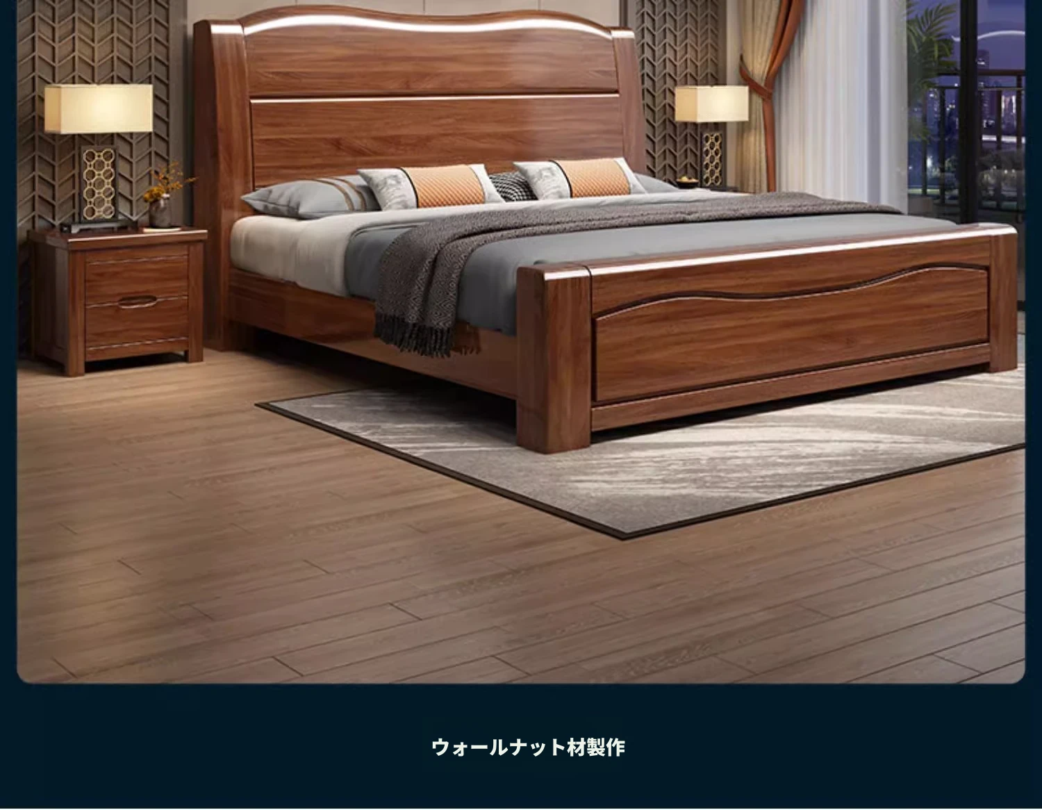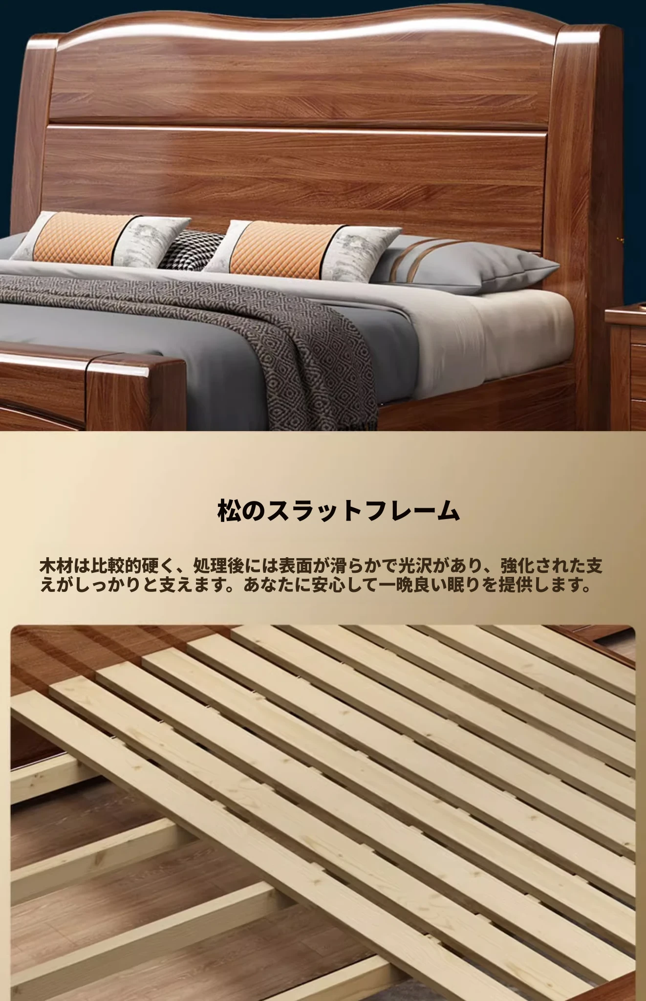 金色のクルミの無垢材を使用した北欧スタイルのラグジュアリー新中式デザイン、真皮ソフトパッキング付きの高箱収納主寝室用大婚ベッド。贅沢な空間を演出し、機能性も兼ね備えた理想のベッドです!