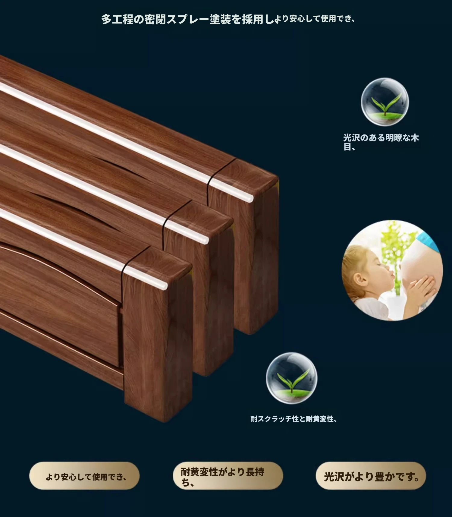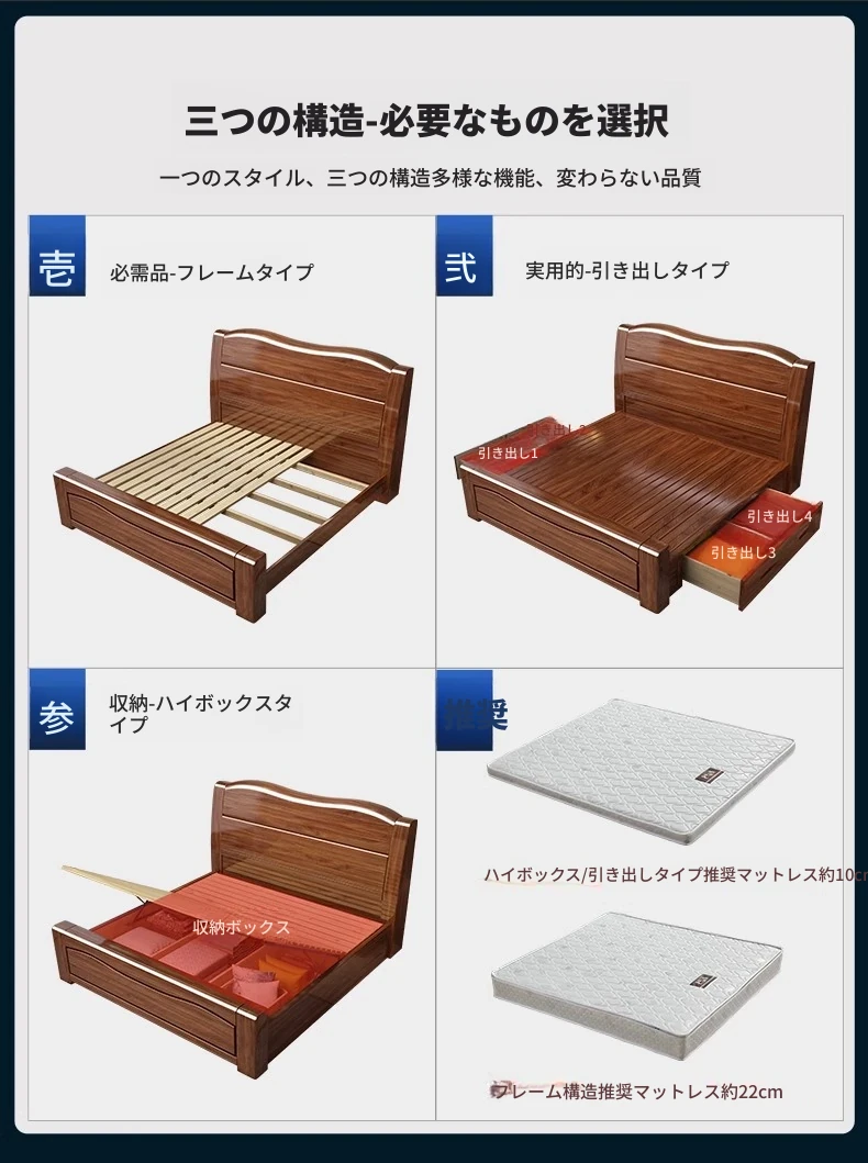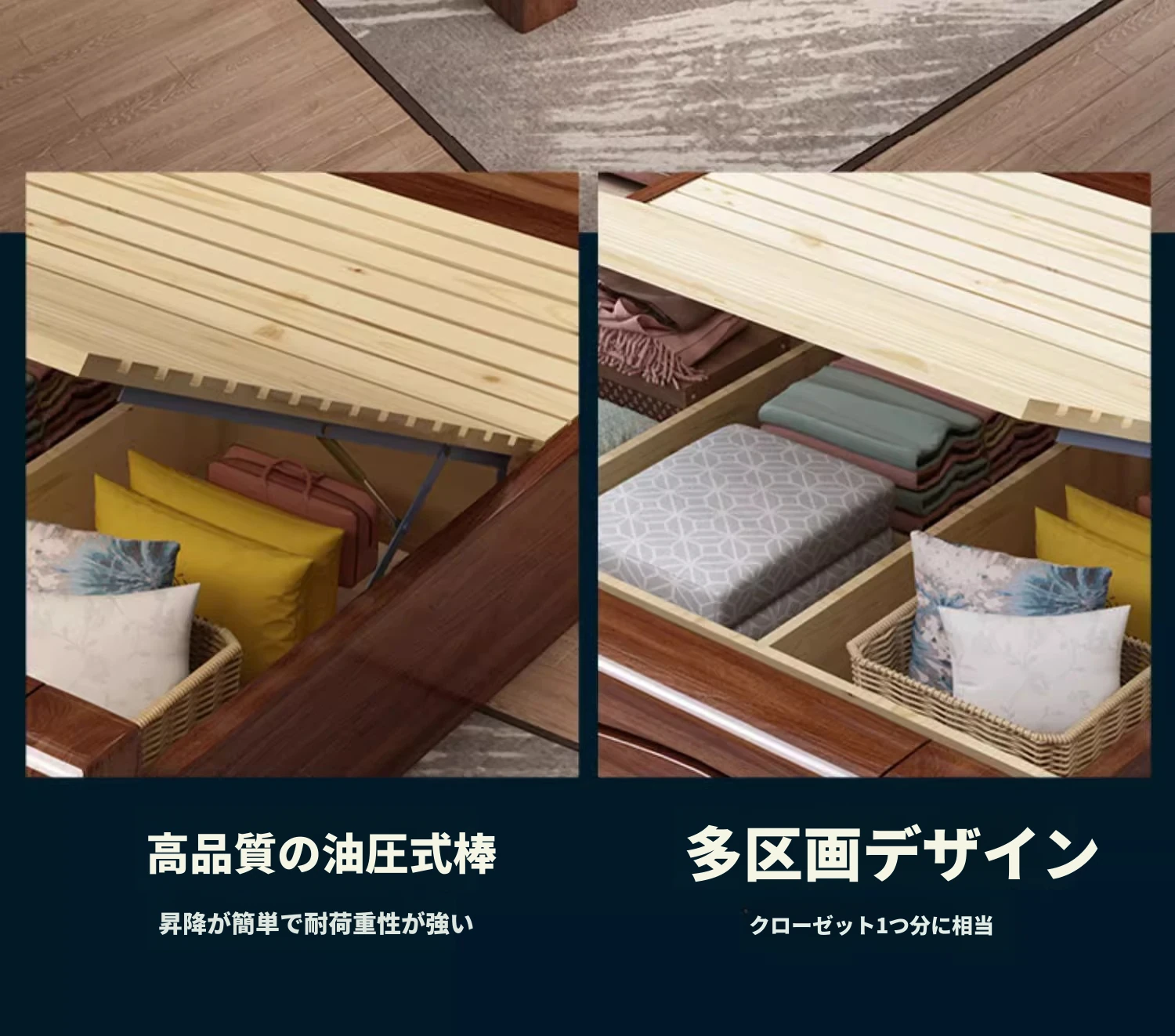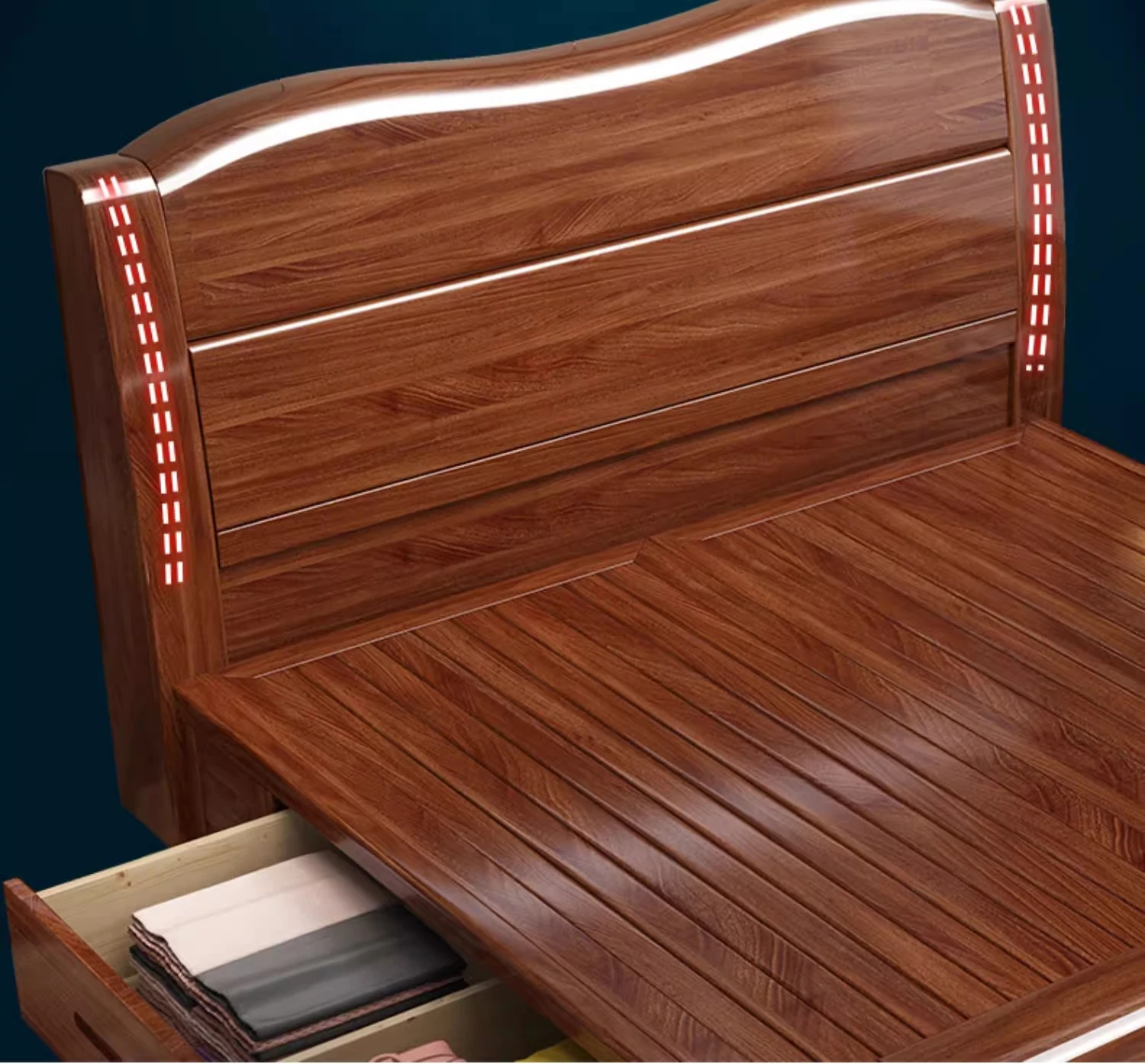金色のクルミの無垢材を使用した北欧スタイルのラグジュアリー新中式デザイン、真皮ソフトパッキング付きの高箱収納主寝室用大婚ベッド。贅沢な空間を演出し、機能性も兼ね備えた理想のベッドです!