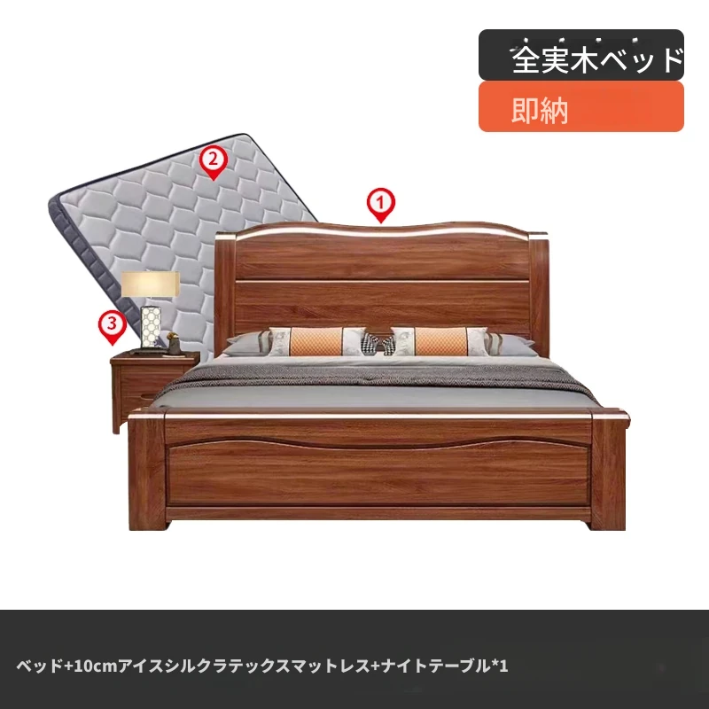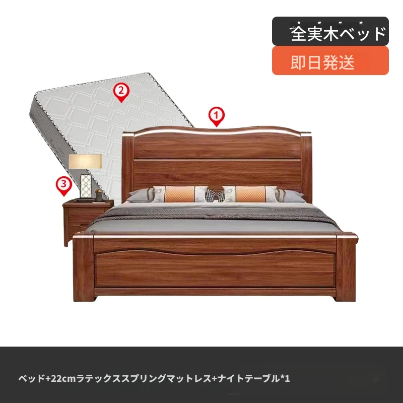 ベッド+1つのナイトテーブル+22CMラテックススプリングマット