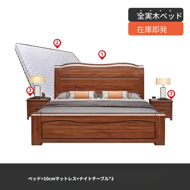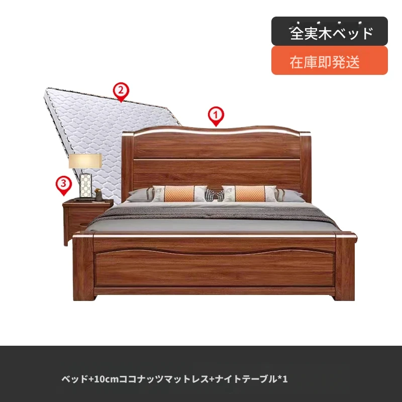 ベッド+2つのナイトテーブル+10CMココナッツマット