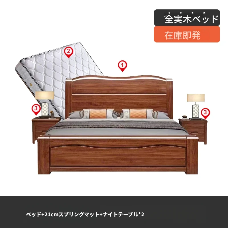 ベッド+2つのナイトテーブル+21CMスプリングマット
