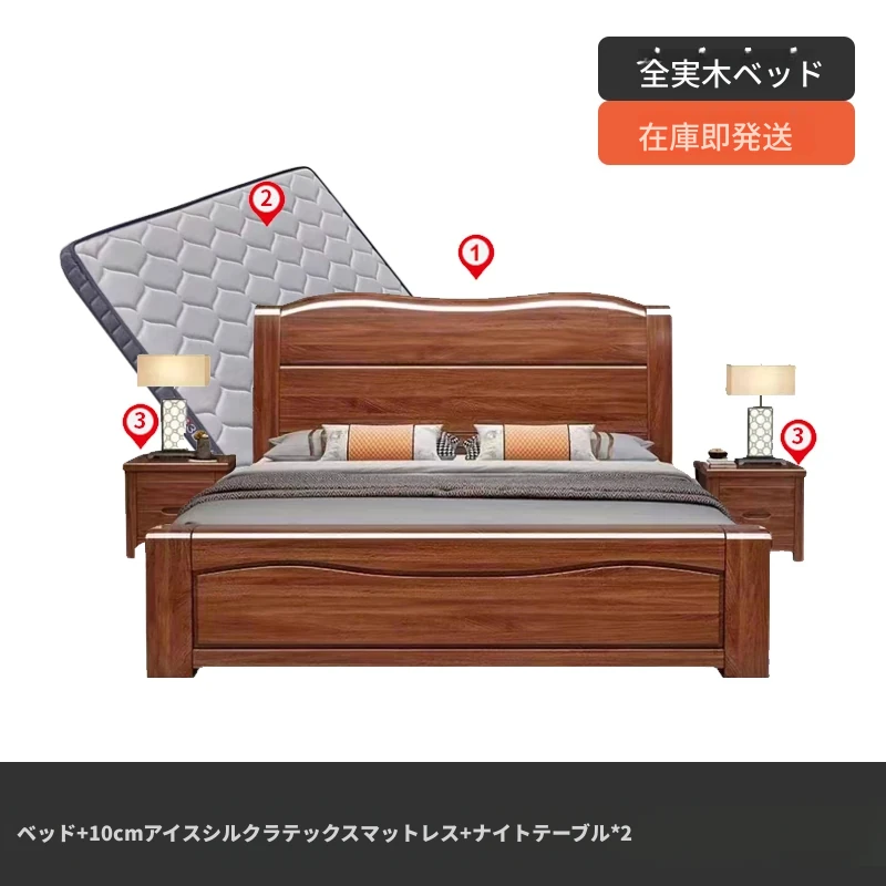ベッド+2つのナイトテーブル+10CMアイスシルクラテックスマット