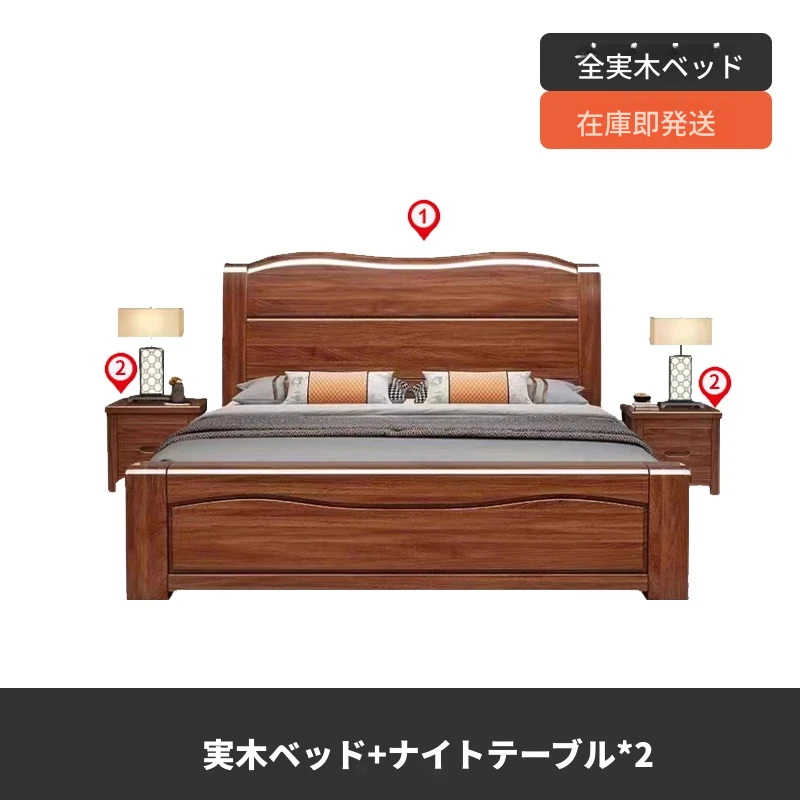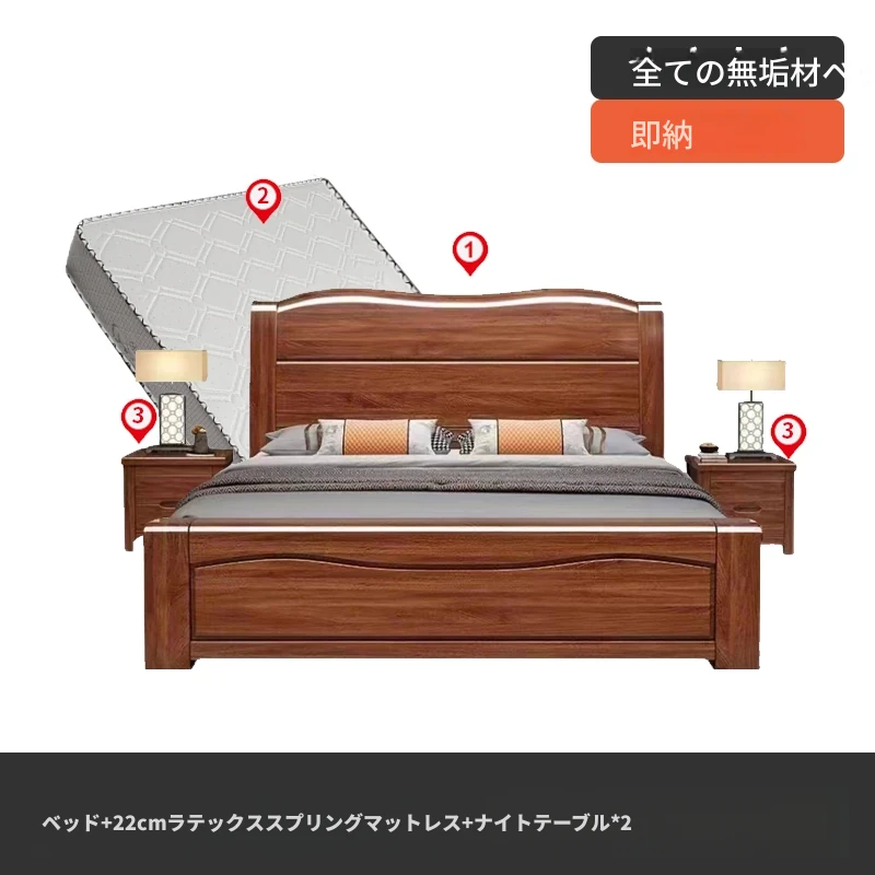 ベッド+2つのナイトテーブル+22CMラテックススプリングマット
