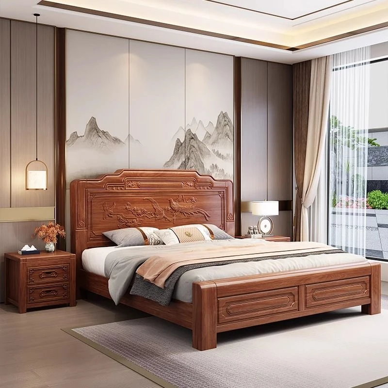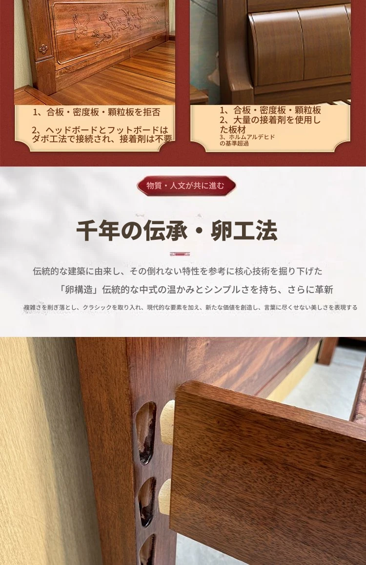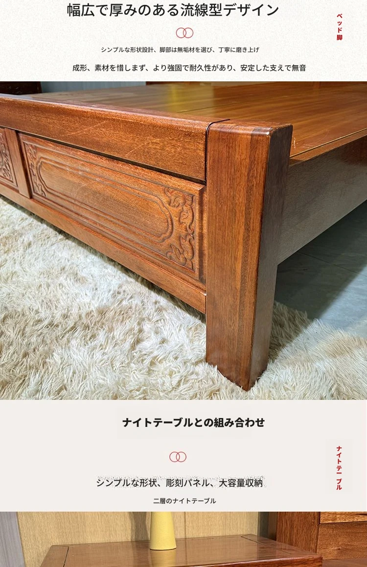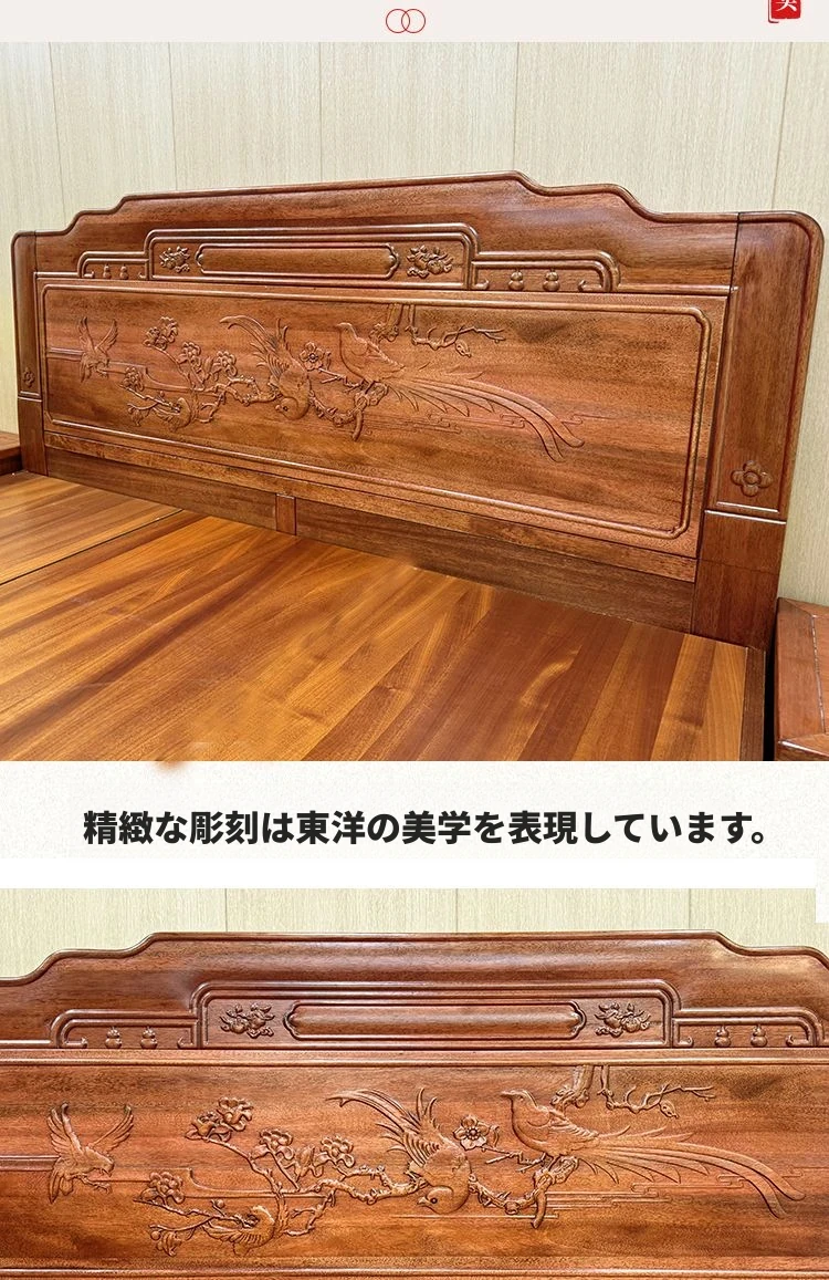 高級金花梨木製全実木榫卯構造!1.5m・1.8mサイズの中華古典彫刻ダブルベッド。主寝室に華やかさと温もりをプラスする一品!上質な眠りをお約束します。