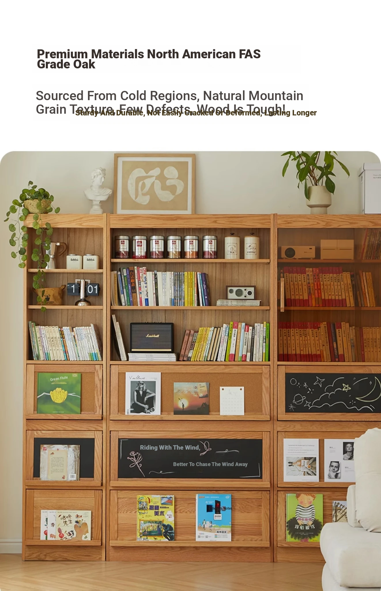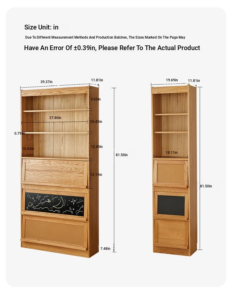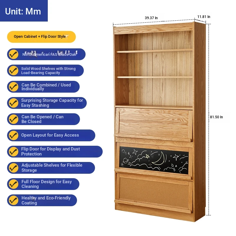 [Full Pack and Send to Import Oak] Wave Bookcase Wide No Door (Log 39.37in*11.81in*81.50in)