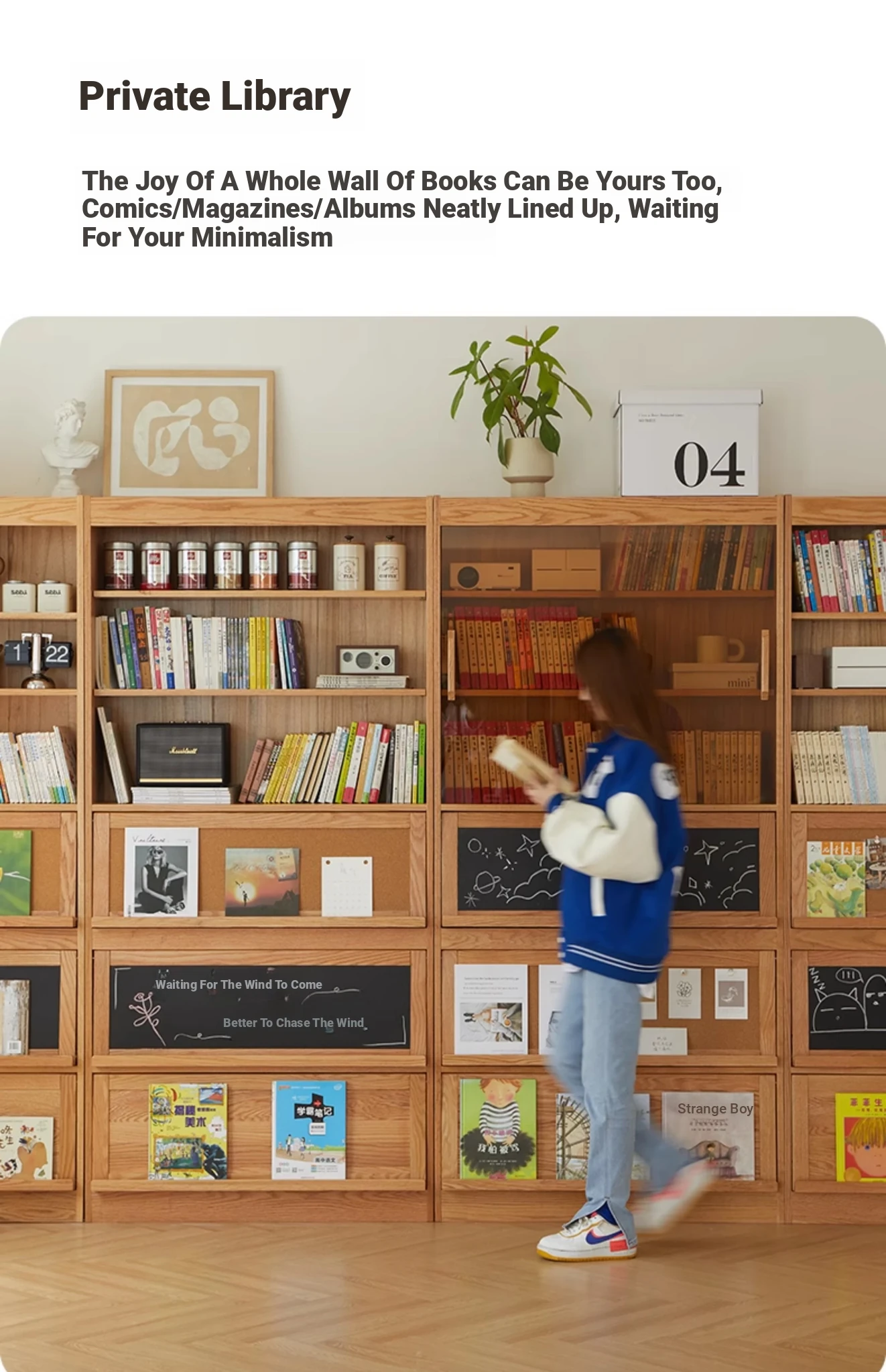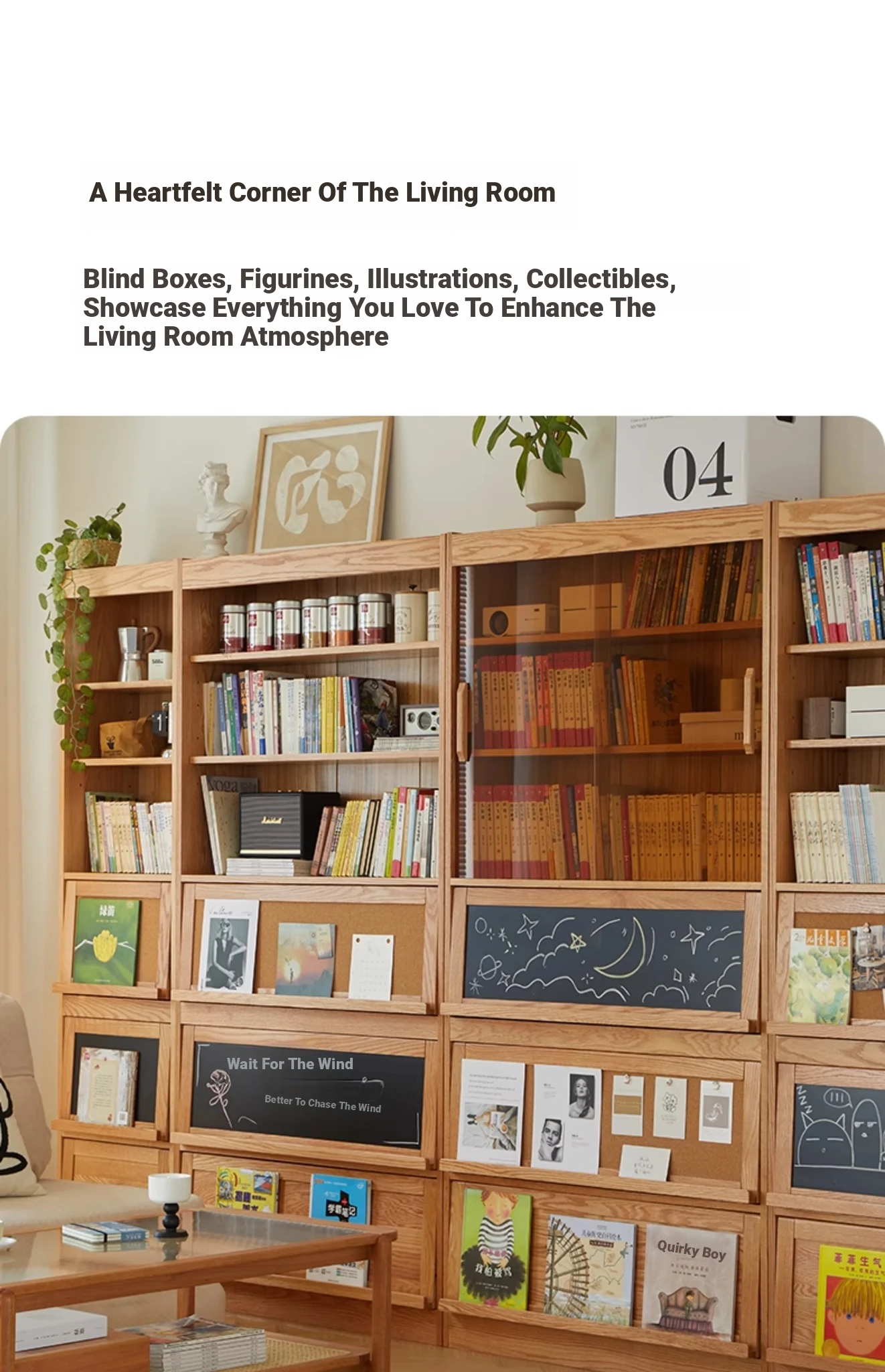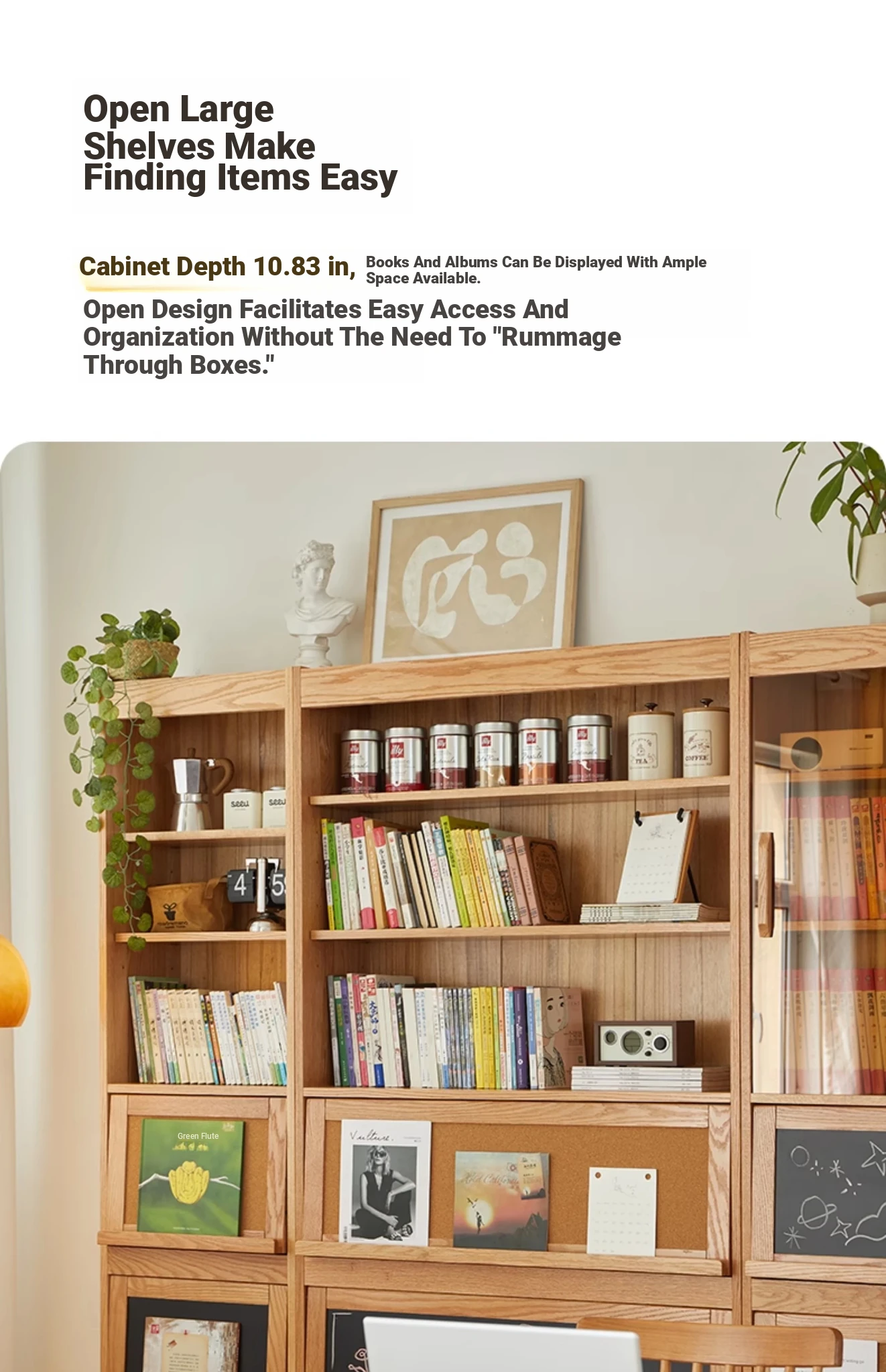 [Full Pack and Send to Import Oak] Wave Bookcase Wide No Door (Log 39.37in*11.81in*81.50in)