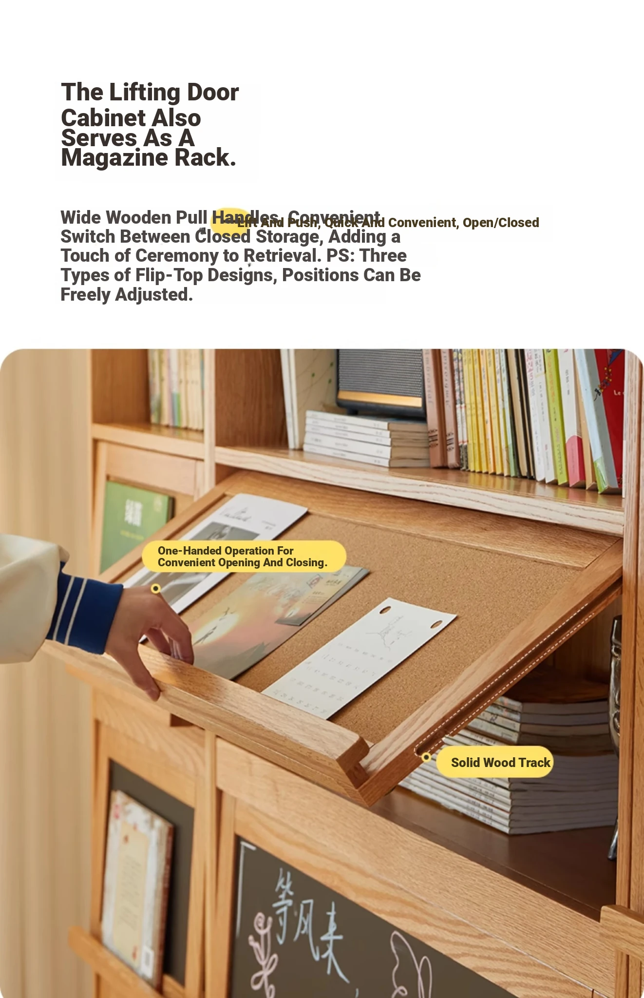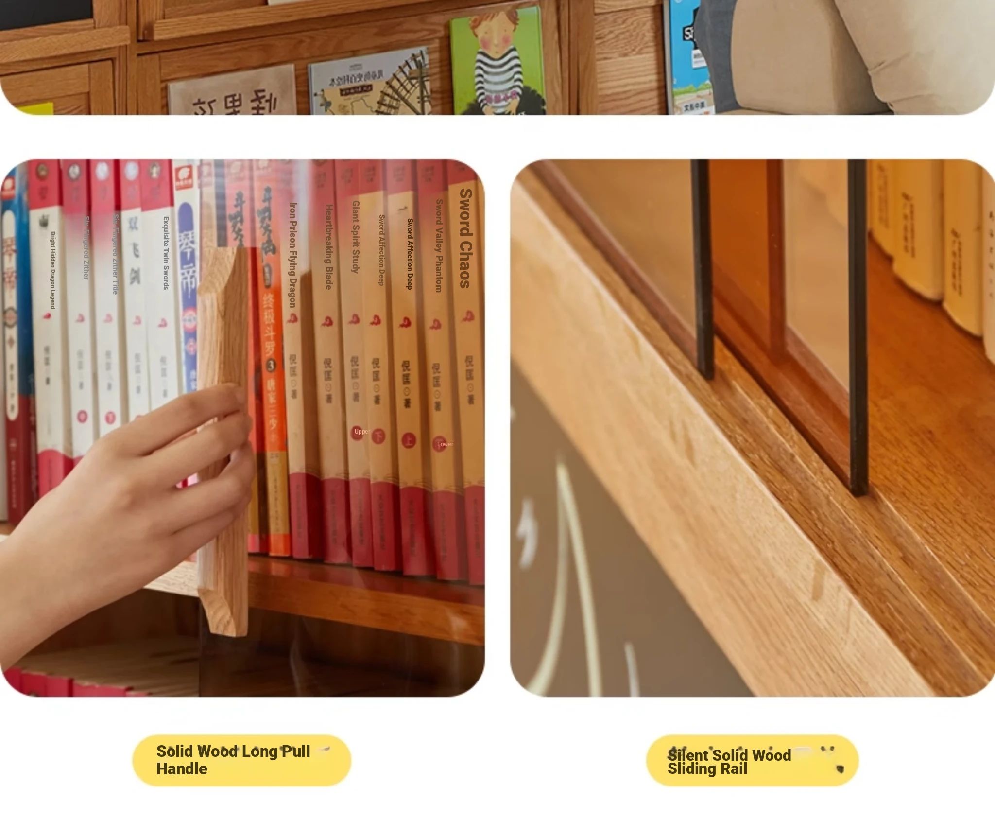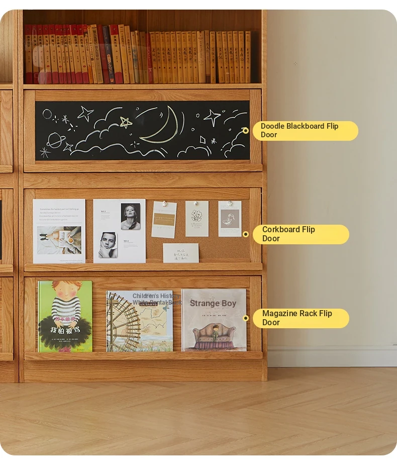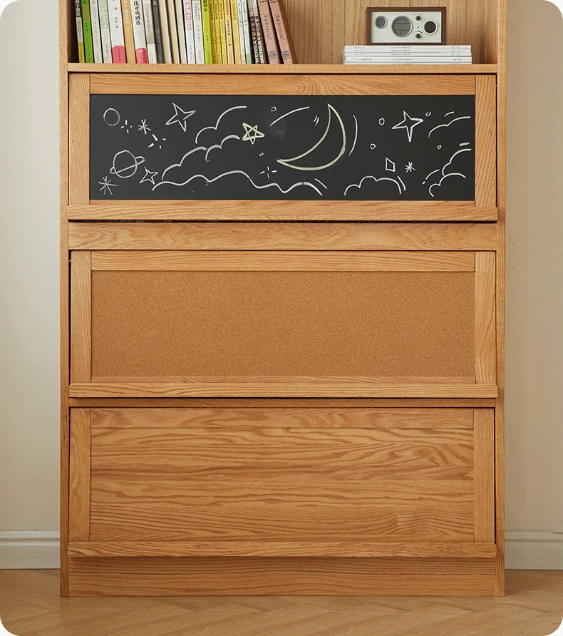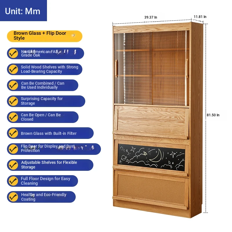 [Import oak] wave bookcase wide with glass sliding door (log 39.37in*11.81in*81.50in)
