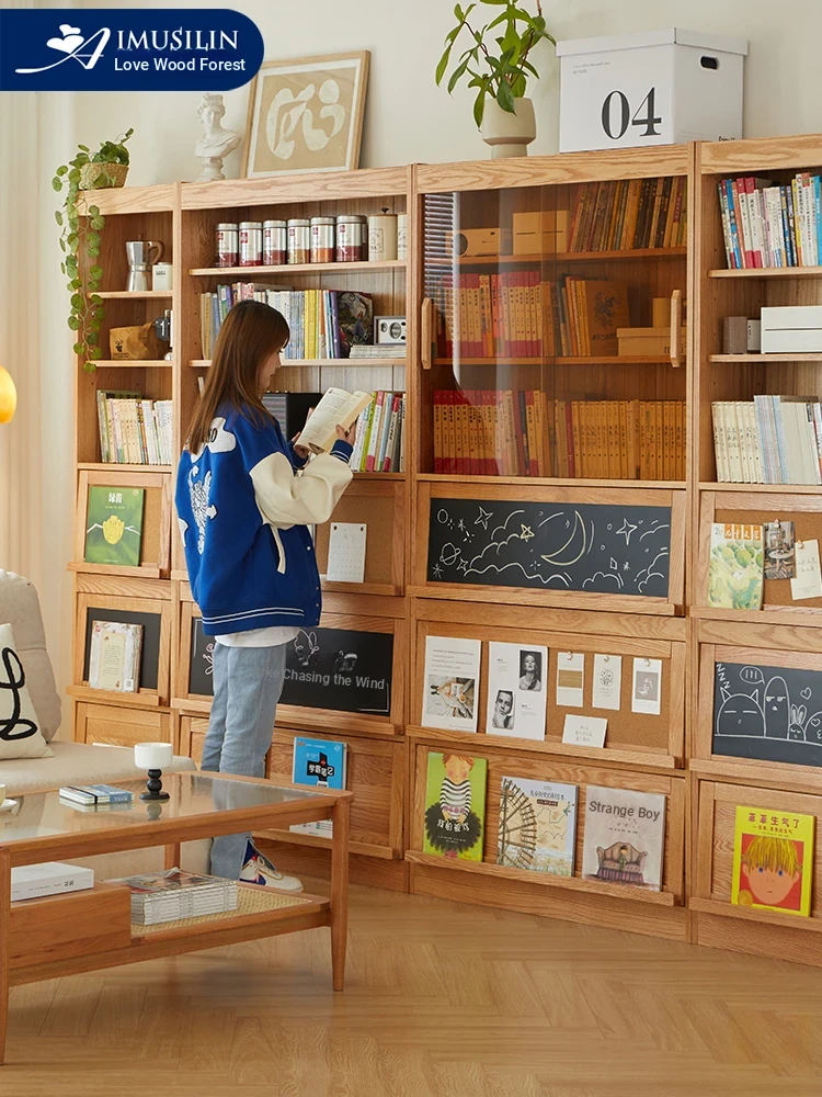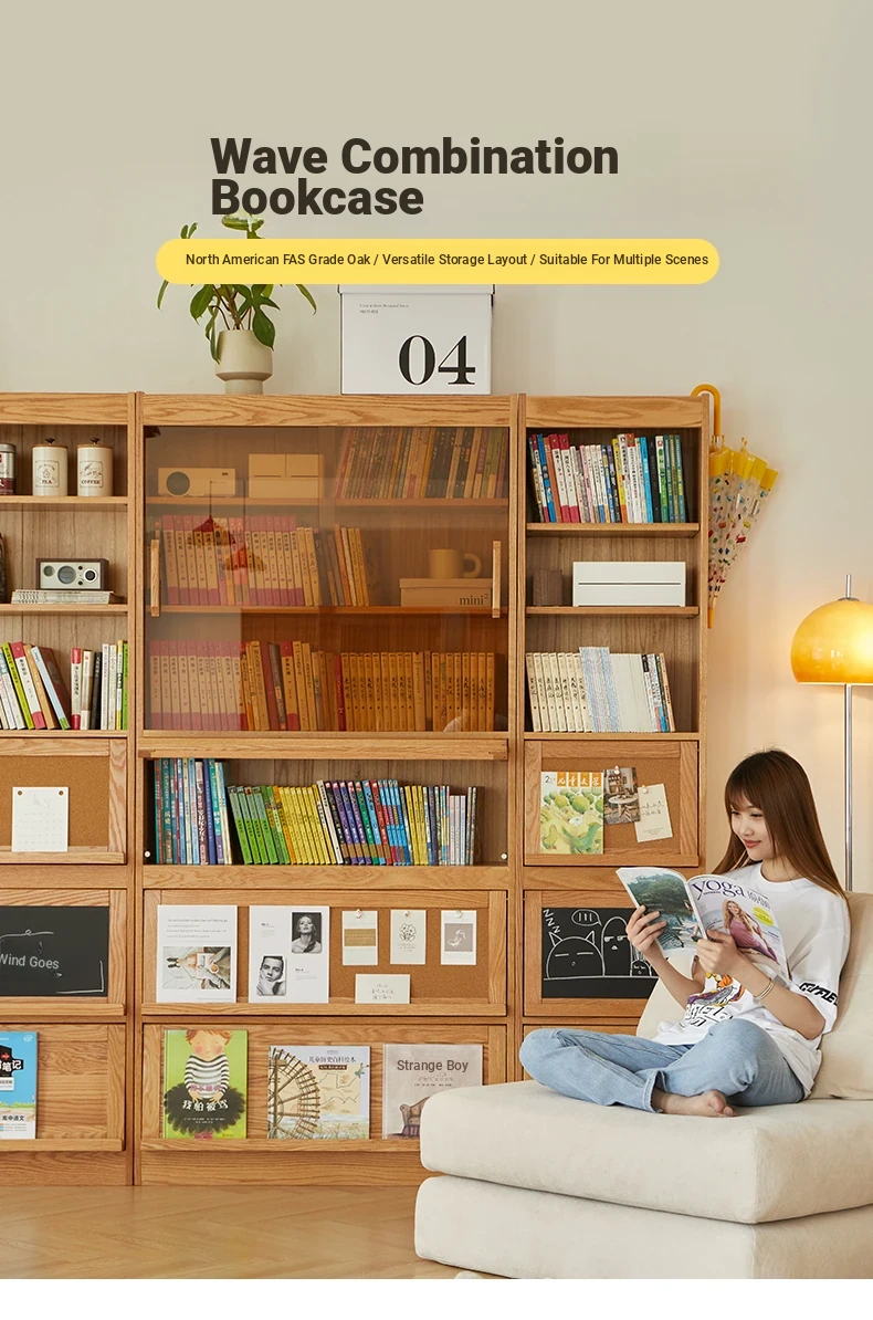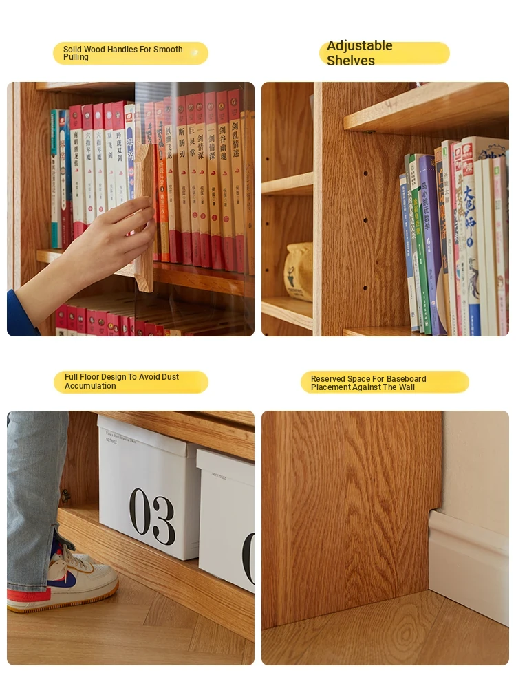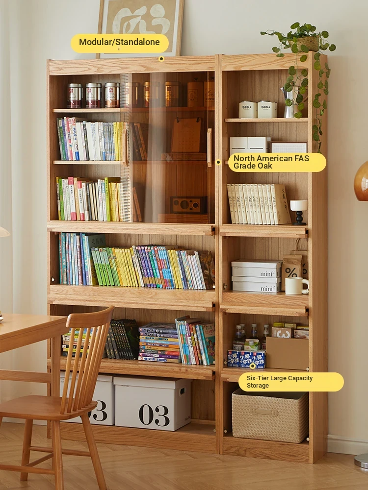 Solid Wood Bookshelf with Glass Doors - Floor-to-Ceiling Nordic and Japanese Style Oak Display Cabinet, Perfect for Living Room Storage and Decoration – Maximizes Space with Elegant Design