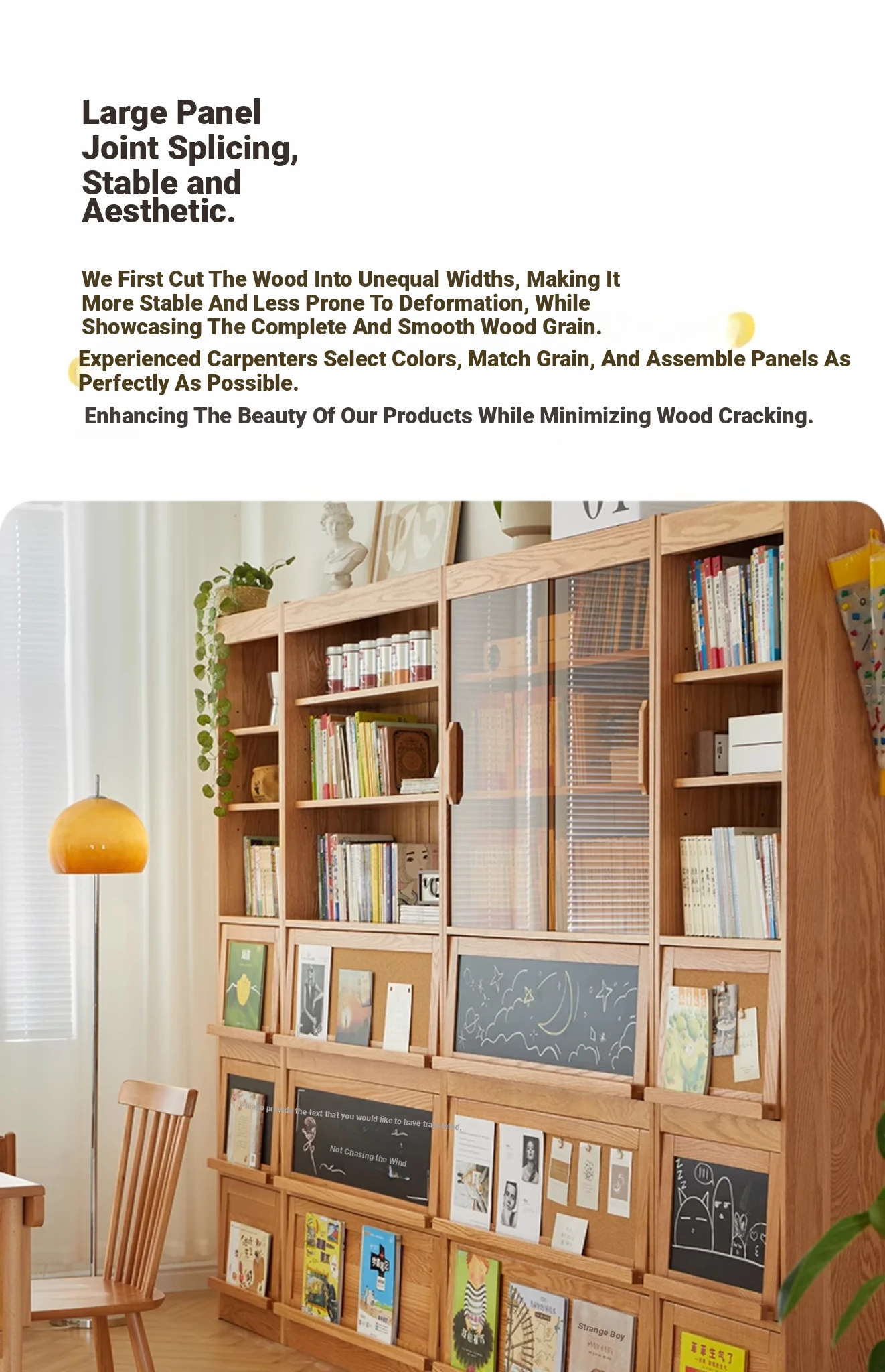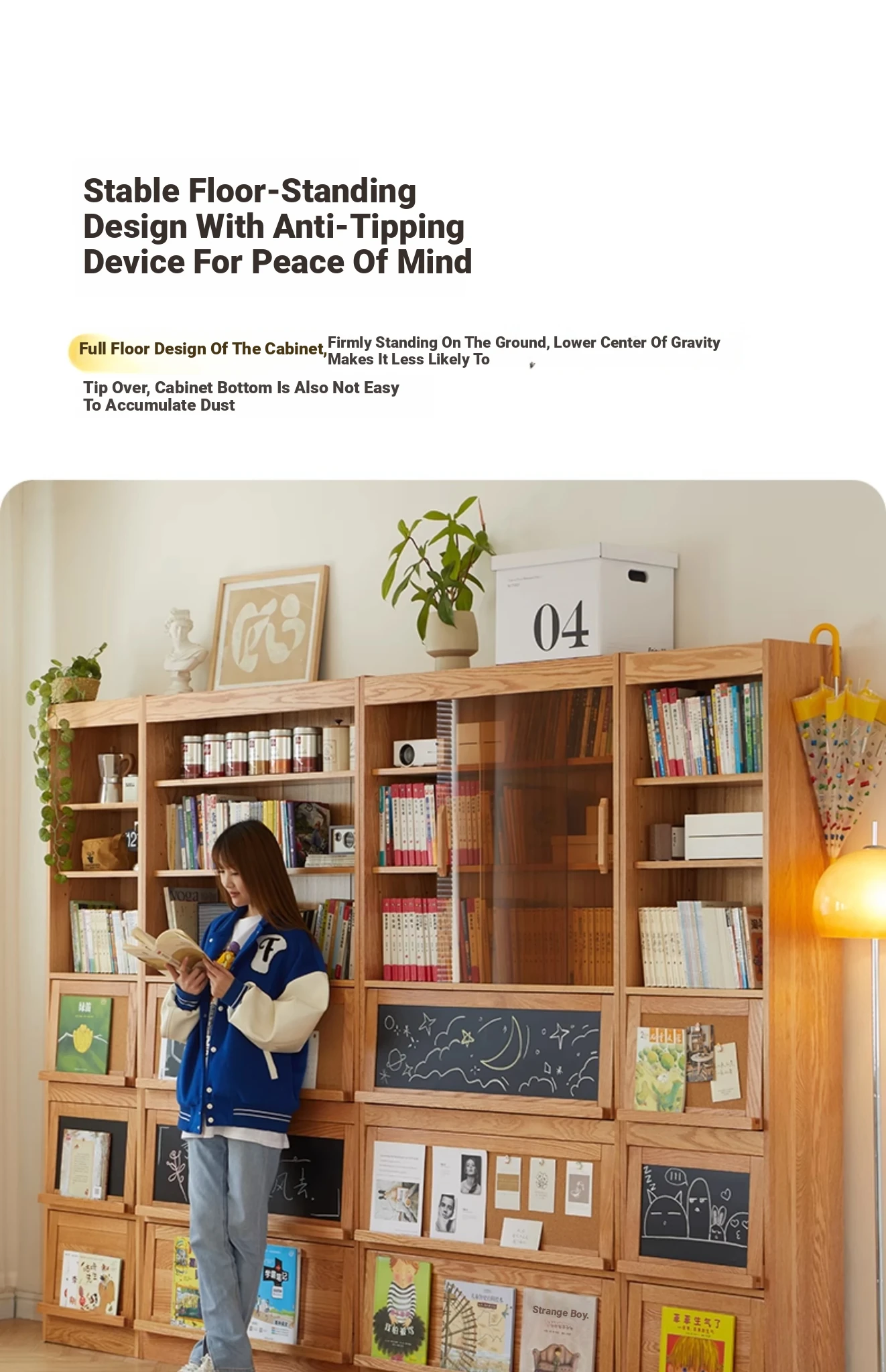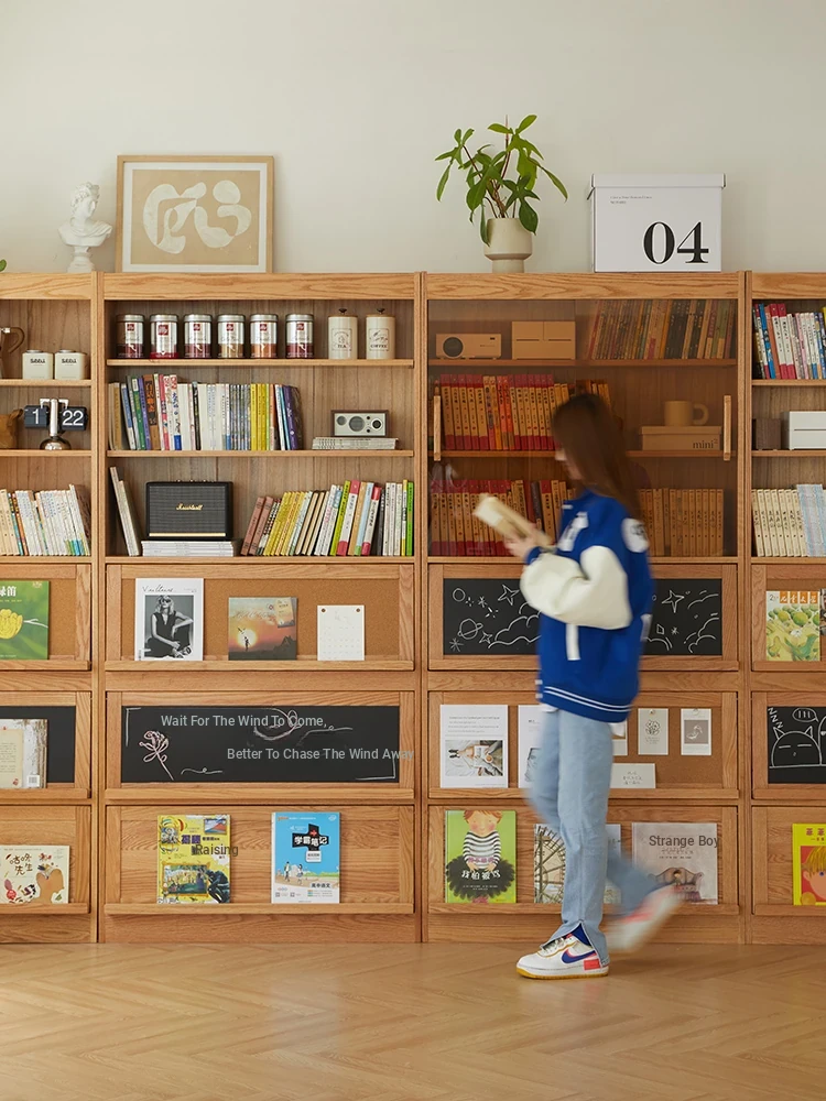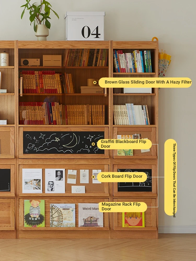 Solid Wood Bookshelf with Glass Doors - Floor-to-Ceiling Nordic and Japanese Style Oak Display Cabinet, Perfect for Living Room Storage and Decoration – Maximizes Space with Elegant Design