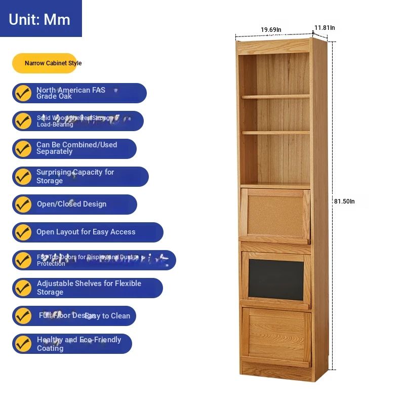 [Import oak] wave bookcase narrow (log 19.69in*11.81in*81.50in) without glass door