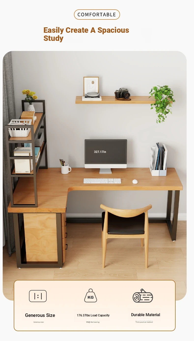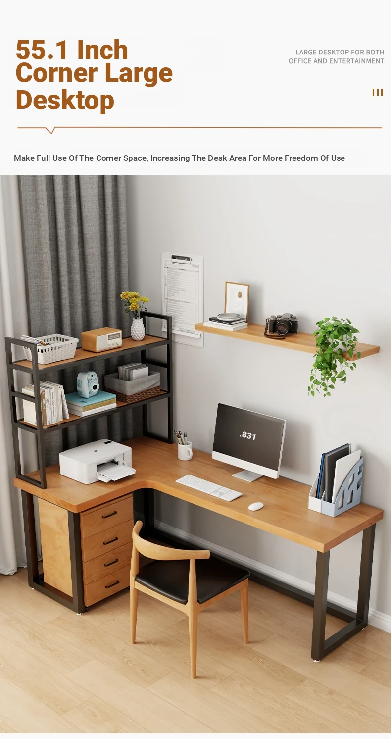 Solid Wood Corner Bookshelf - Desktop Bookcase & Computer Desk, Ideal Home Storage Rack for Organizing Books and Office Supplies, Perfect for Your Workspace!